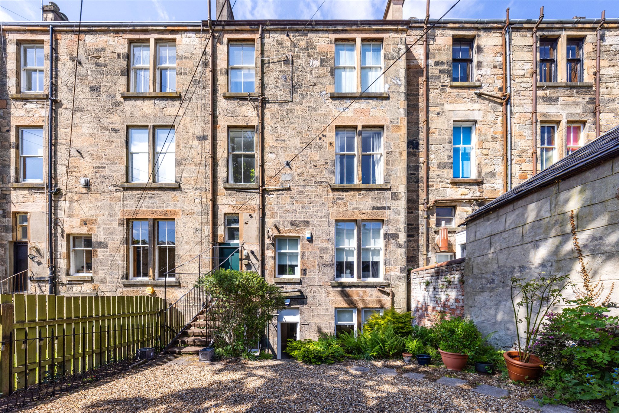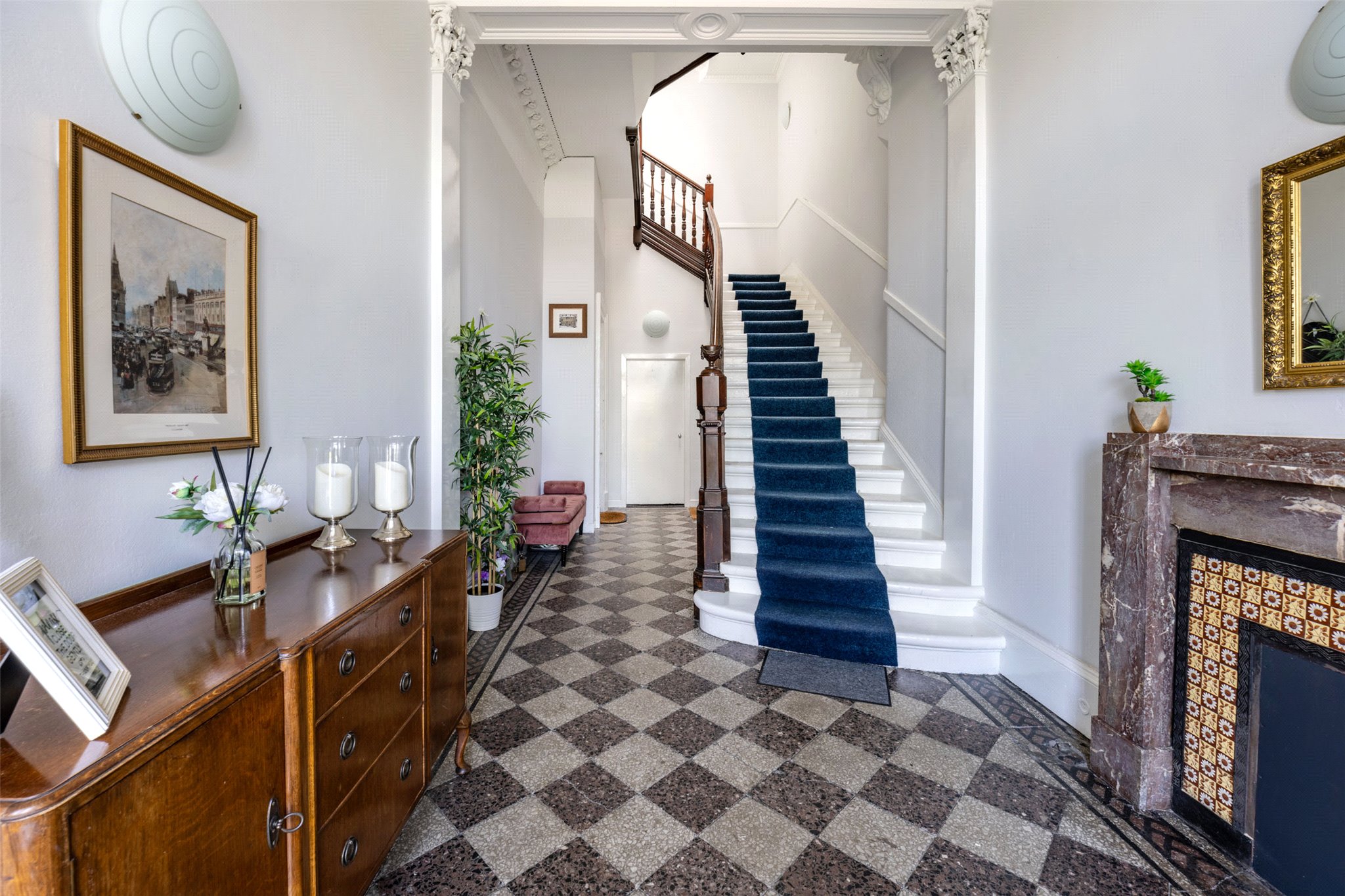 Having the distinct feature of a private door from the communal hall leading to a private staircase this exceptional apartment has a bright south facing frontage. The back door from bedroom two is a further feature and leads out to the communal garden, linking the flat with the outside world.