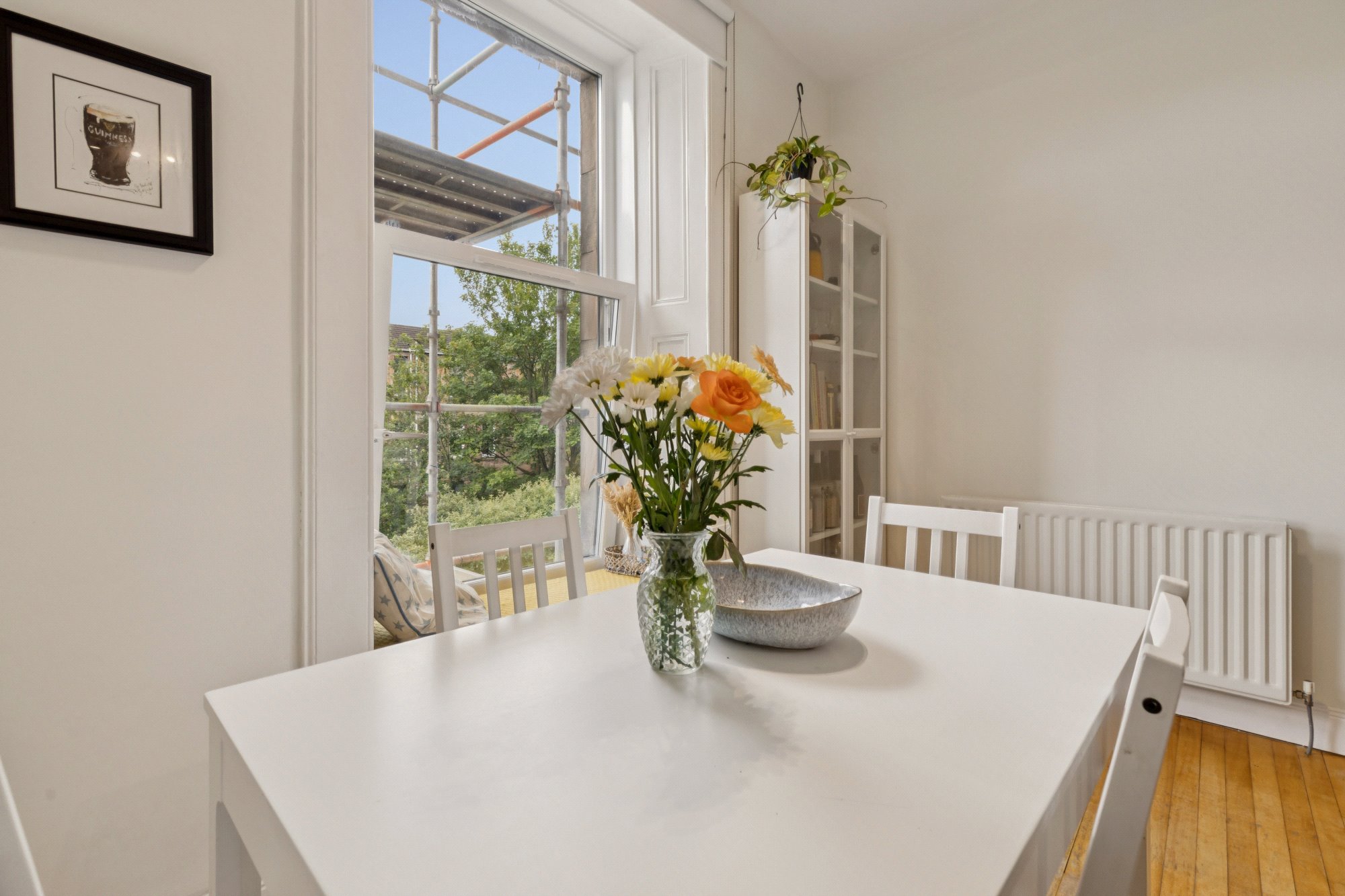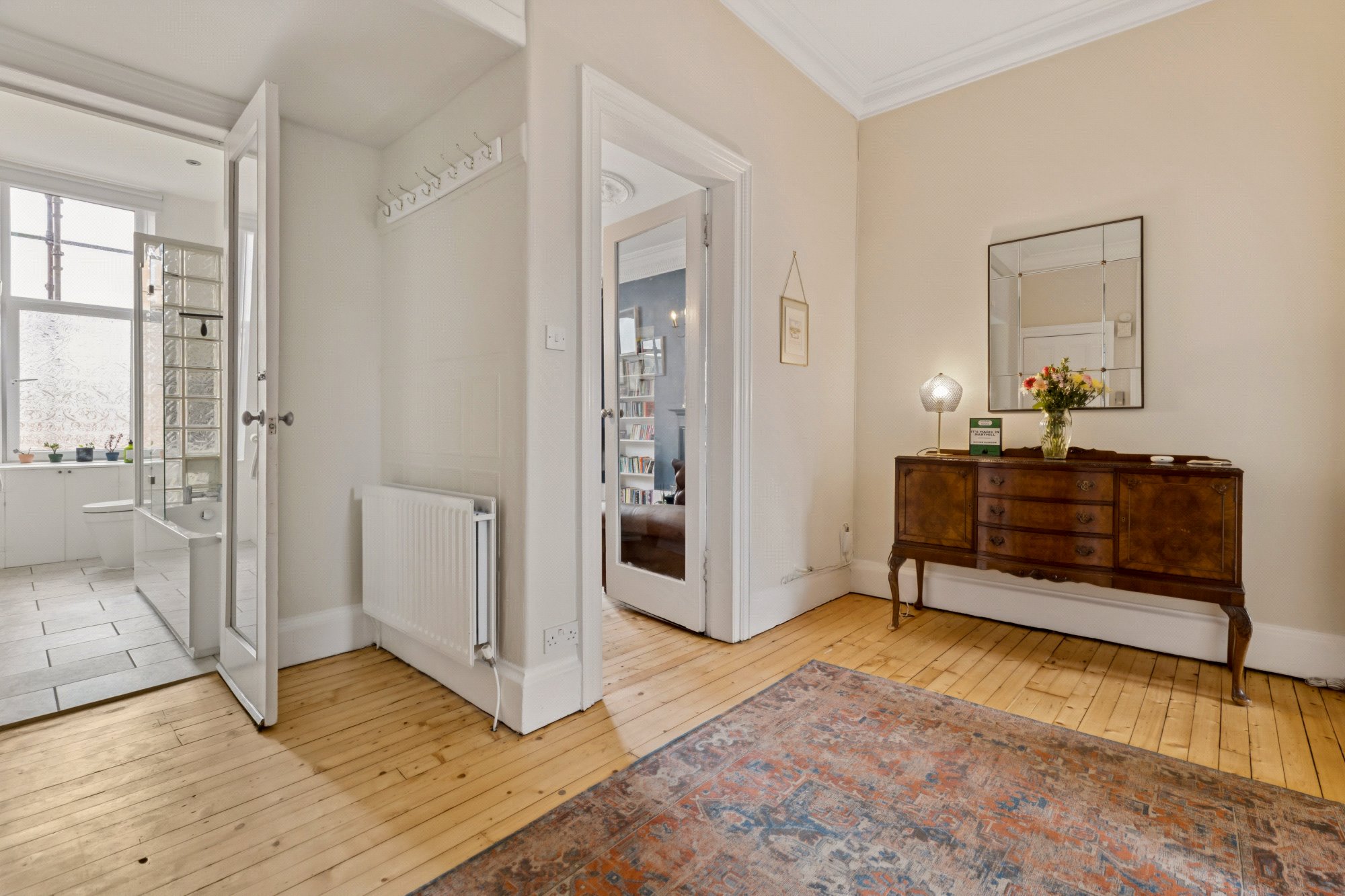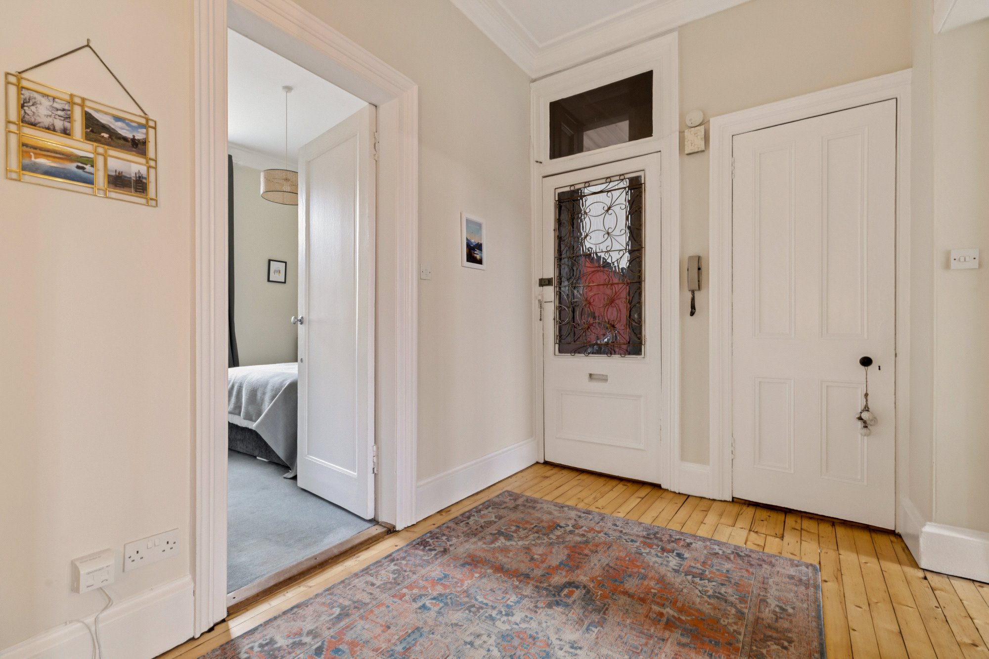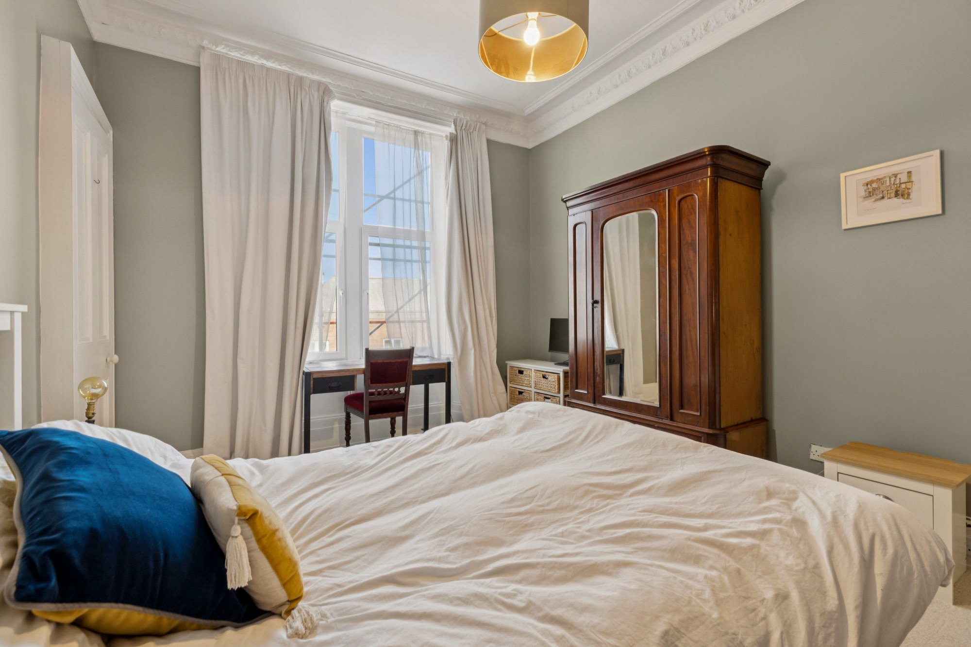 Internally this is an extremely bright, feature-filled two bedroom apartment that has been carefully maintained and lovingly improved by the current owners to an extremely high standard. As such the accommodation is ready to be moved into and enjoyed immediately. The attached photographs, floorplan and HD video will give you some idea of the size, style and specification of the property but viewers are encouraged to visit the apartment in person to fully appreciate each of it’s attractive attributes. In brief the accommodation extends to; broad reception hall, beautiful bay window living room with fireplace, two roomy double bedrooms that also offer plenty of space for traditional free-standing furniture, dining kitchen with stepped dining area and beautiful window seat and a main bathroom with white suite, shower over bath. As you will note, the property has a gas-fired central heating system and double glazed windows.