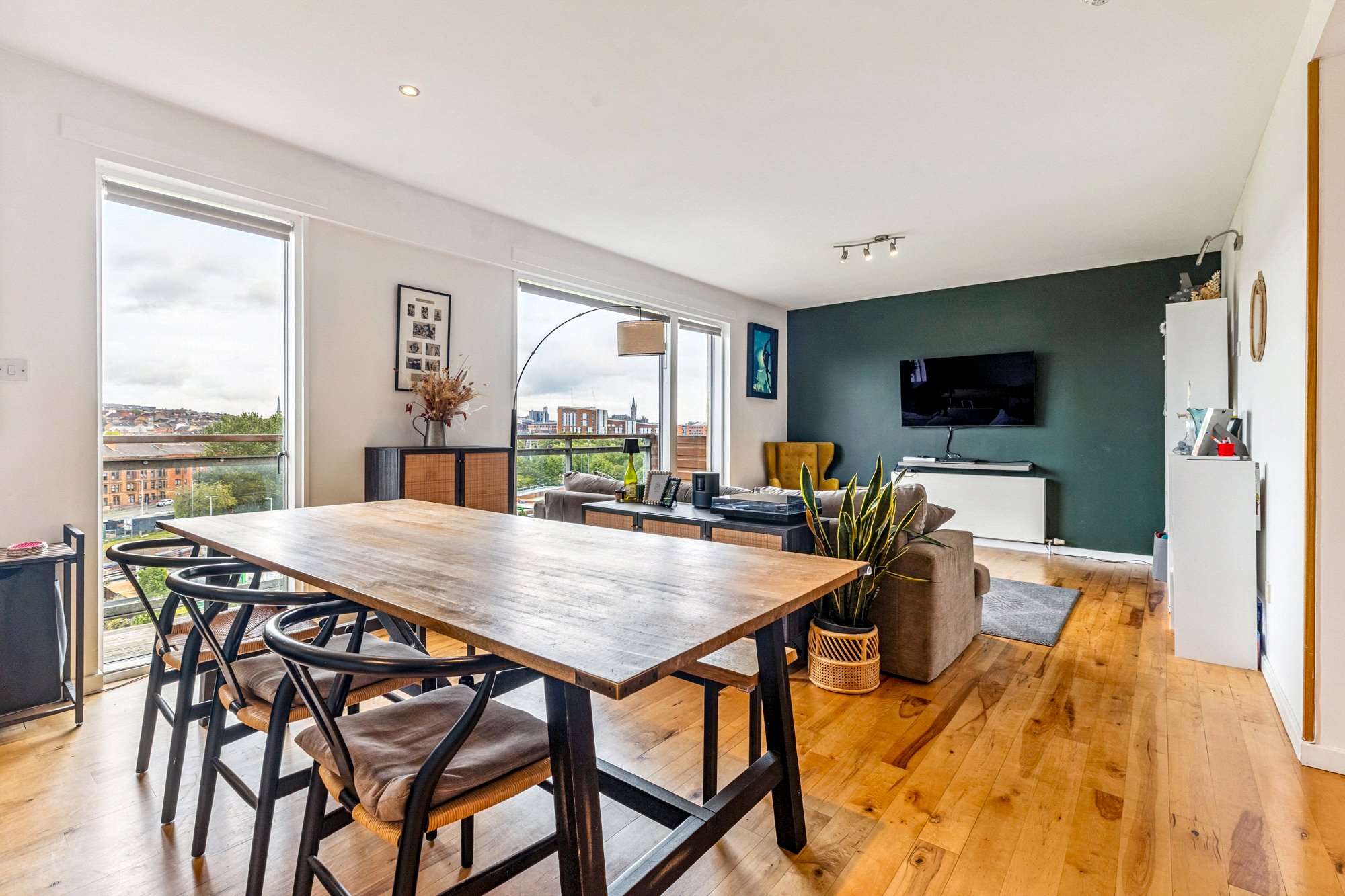 This particularly stylish and generously proportioned seventh floor flat occupies a prominent position within the landmark Glasgow Harbour development. This particular building was completed by Park Lane in 2006 and is the flagship building of the entire Harbour development. The property benefits from excellent natural light and enjoys exceptional views of The River Clyde and over towards The Transport Museum, The Tall Ship, SSEC, Glasgow’s West End and Glasgow City Centre.