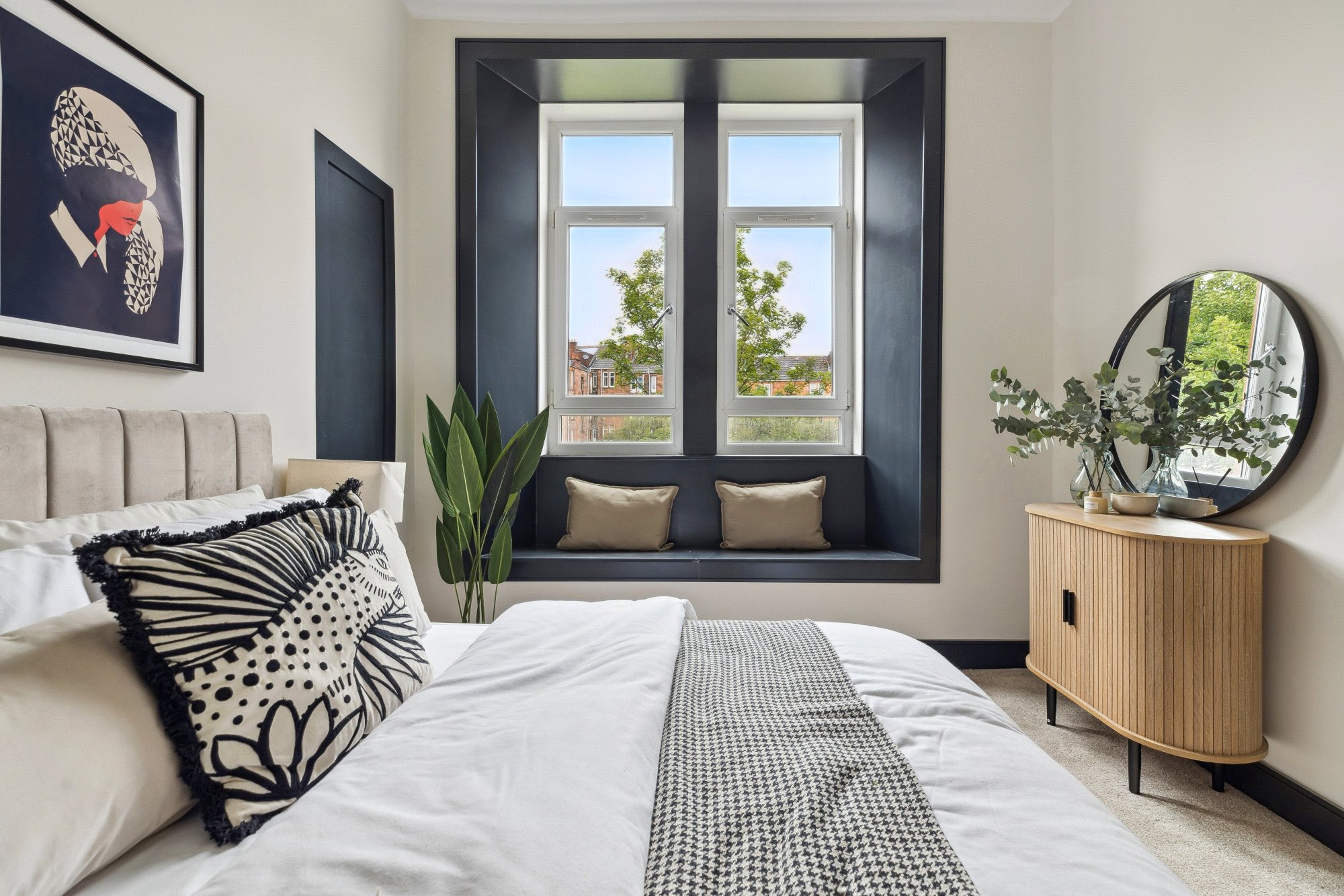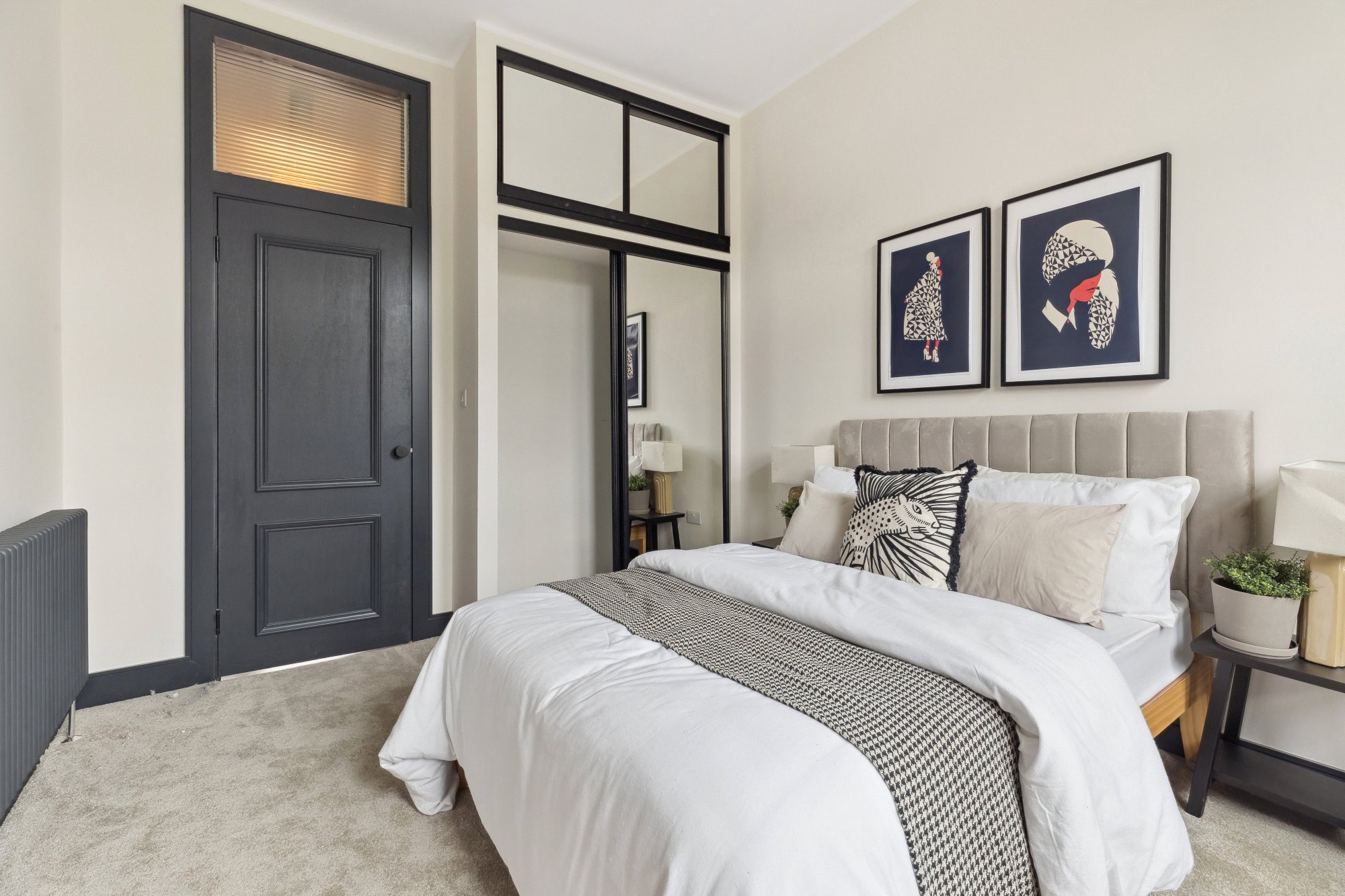 - Bedroom with two section window to the front, fitted wardrobes and additional overhead storage