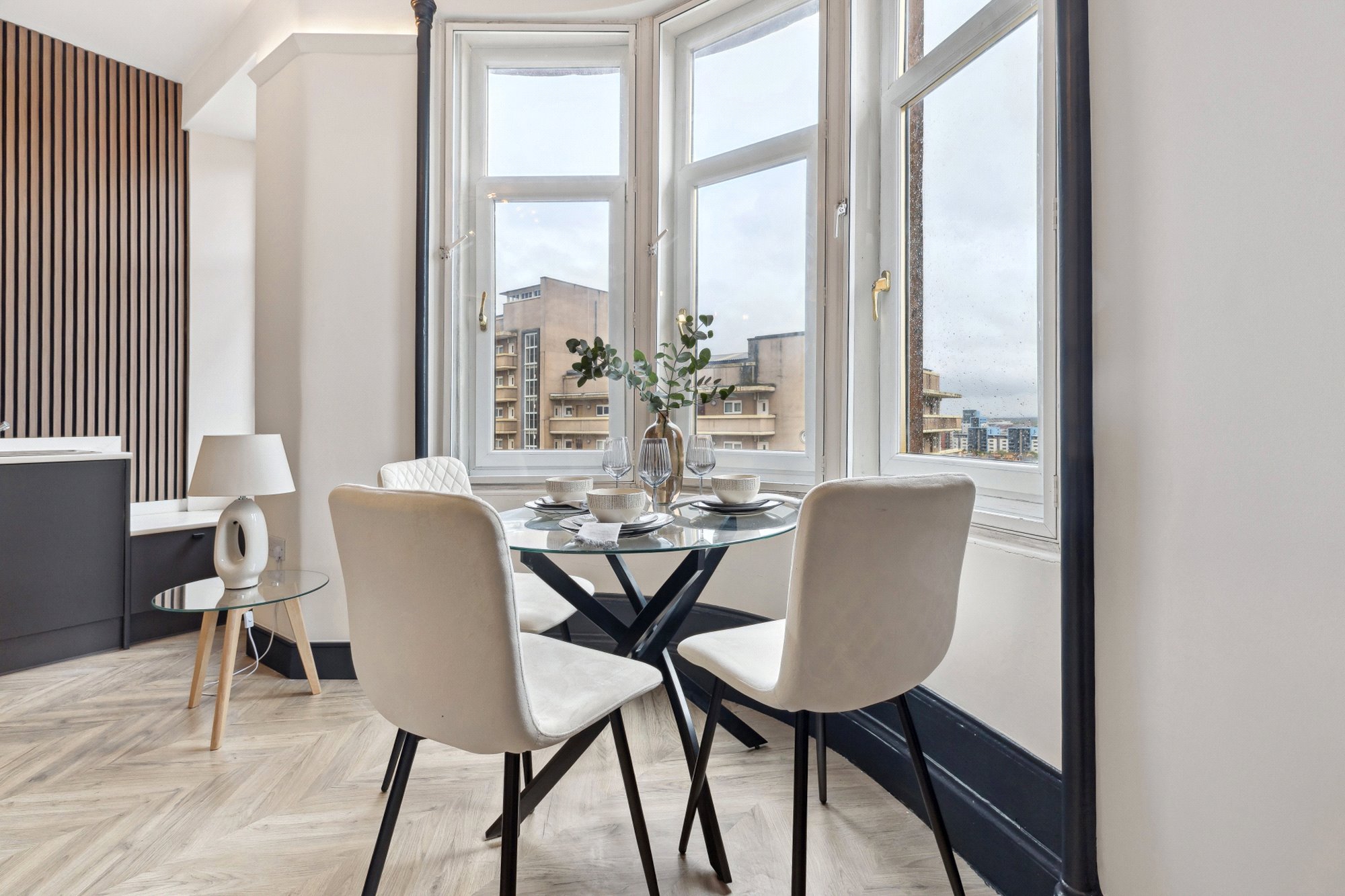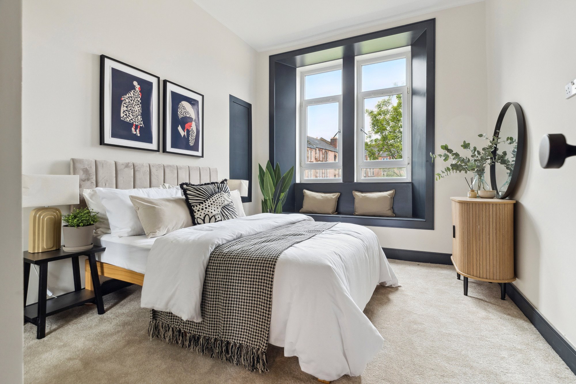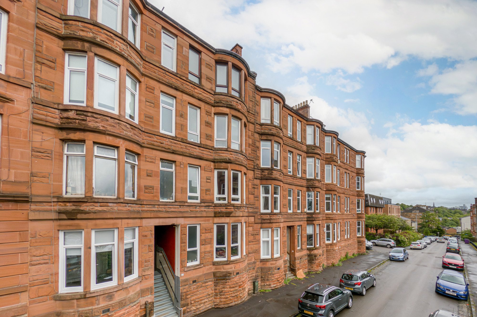 Occupying a prominent third floor position within a traditional red sandstone tenement building, this outstanding one-bedroom flat is situated between Dumbarton Road and Crow Road and is located in the highly popular and convenient Thornwood district. The accommodation benefits from excellent natural light due to its south facing aspects, is comfortably proportioned and is presented in excellent order throughout. Notable highlights include a superb bay windowed lounge/dining room, an impressive open plan kitchen, a spacious double bedroom and a contemporary three-piece shower room. Additional features include a pleasant open outlook over towards The River Clyde, a full re-wire of the property, and natural wooden finishes.