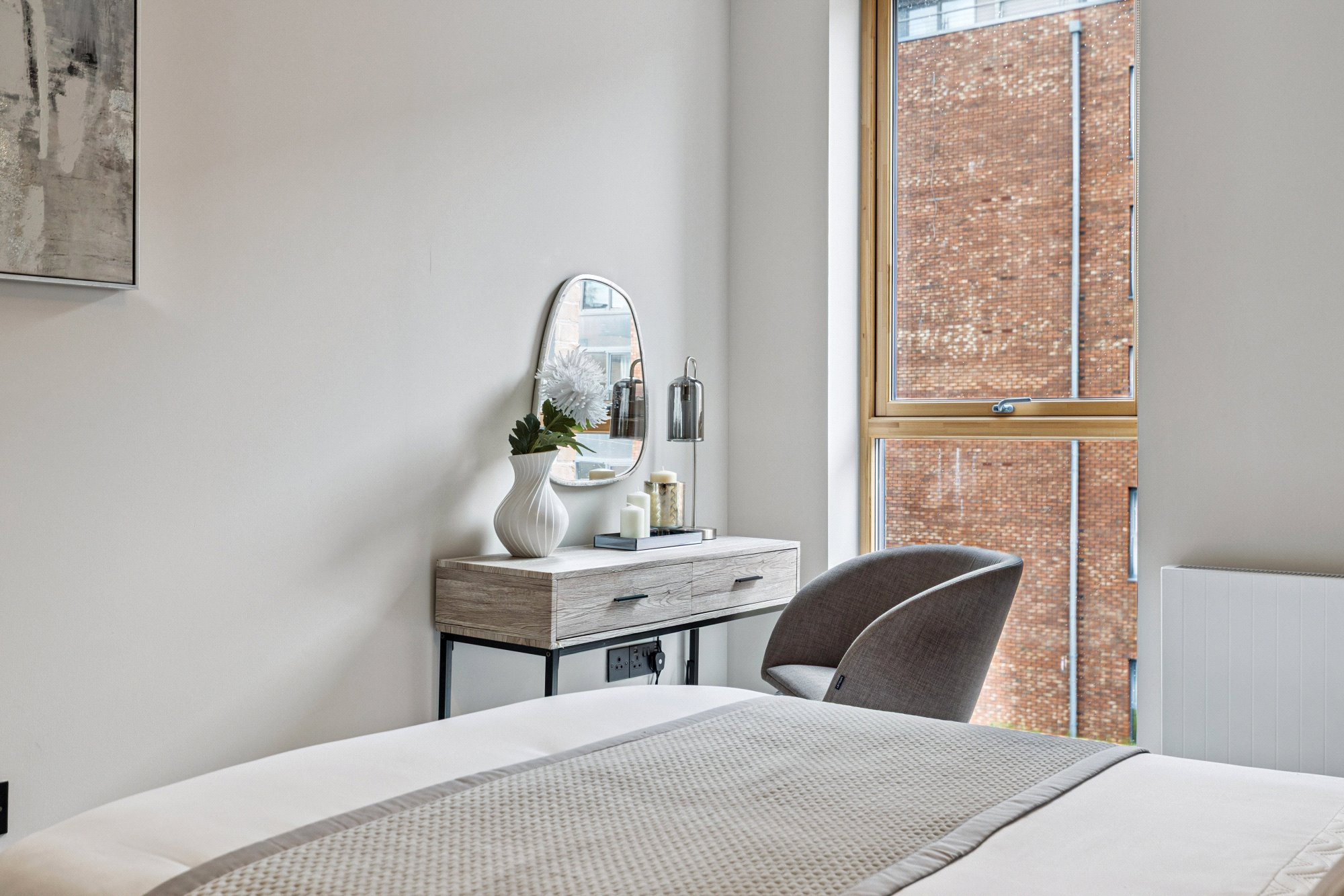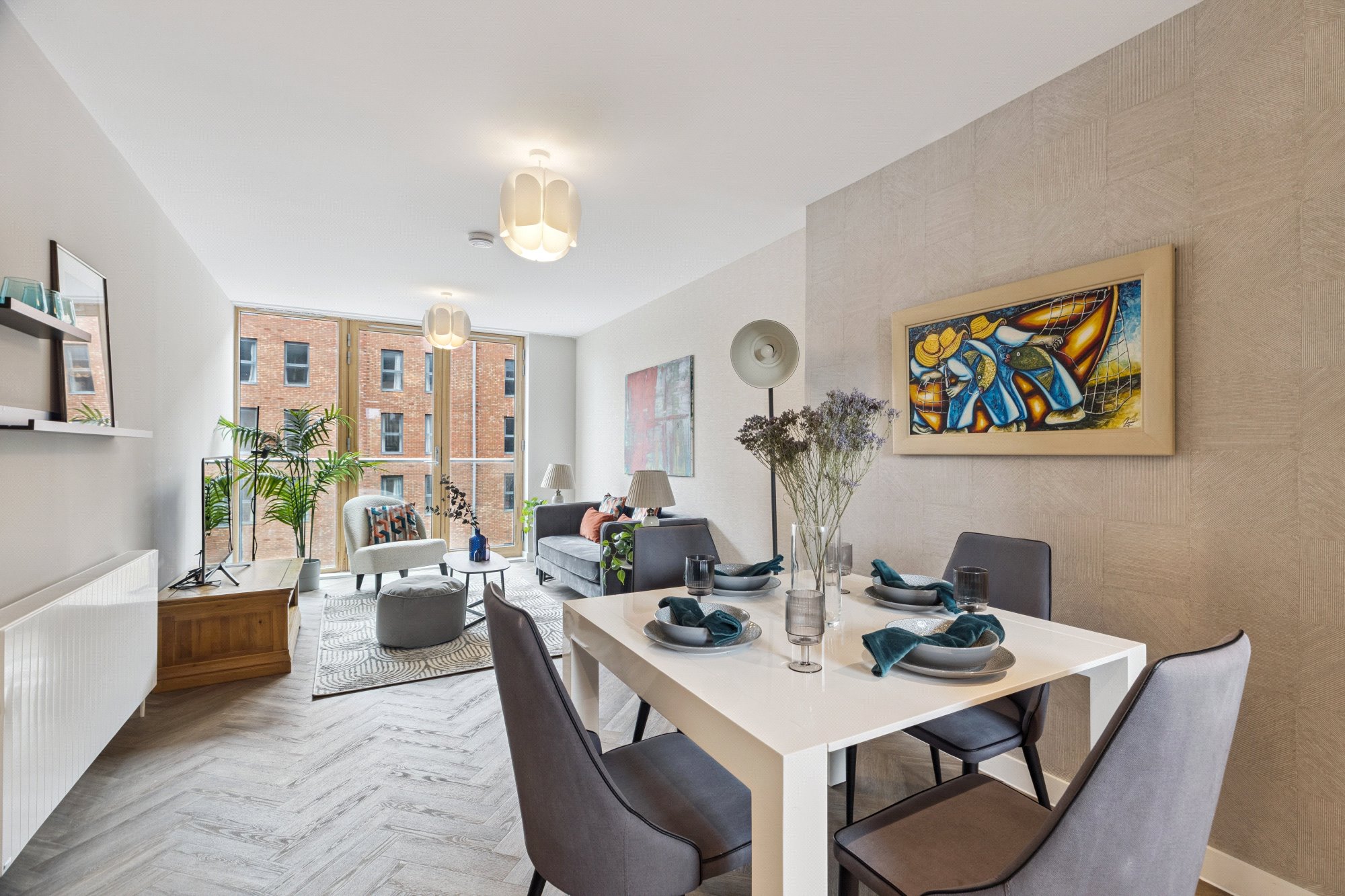 The internal accommodation is immaculately presented throughout, benefits from excellent natural light and is comfortably proportioned with notable highlights includes a superb main lounge/dining room, a stunning open plan kitchen, two spacious double bedrooms, a stylish three-piece bathroom and a contemporary en suite shower room. There is ample storage within the apartment include two storage cupboards off the reception hall and fitted wardrobes in both bedrooms.