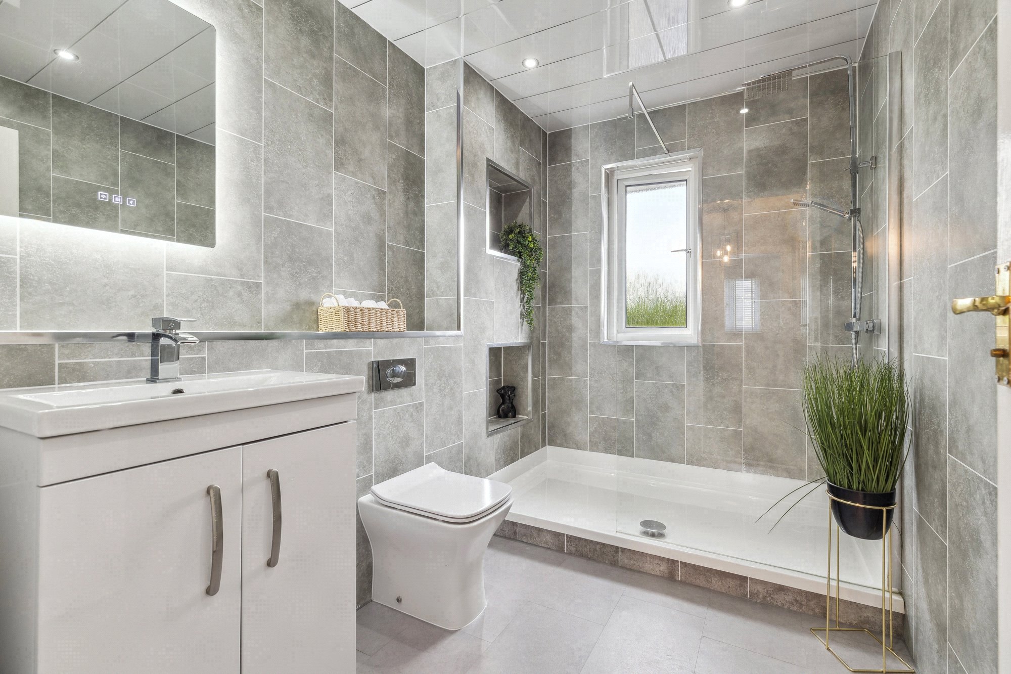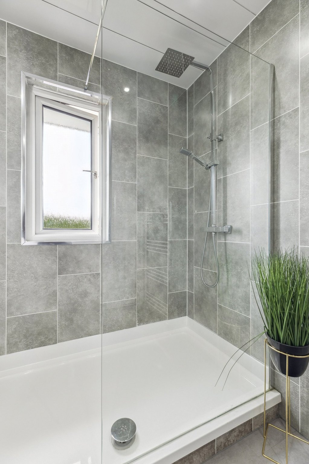 - Fashionable three piece shower room with window to the rear.