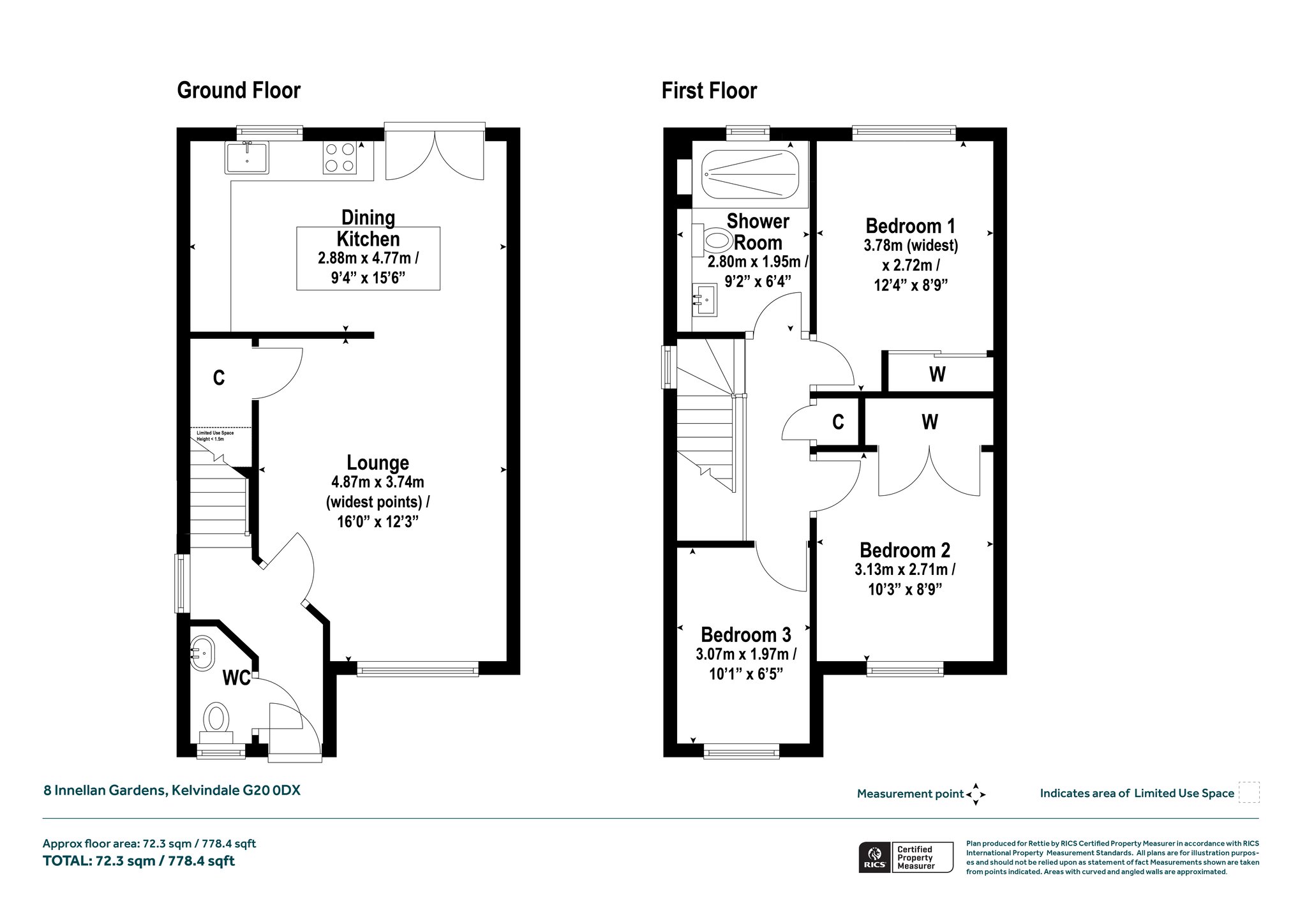 - Downstairs W/C accessed from the hallway.