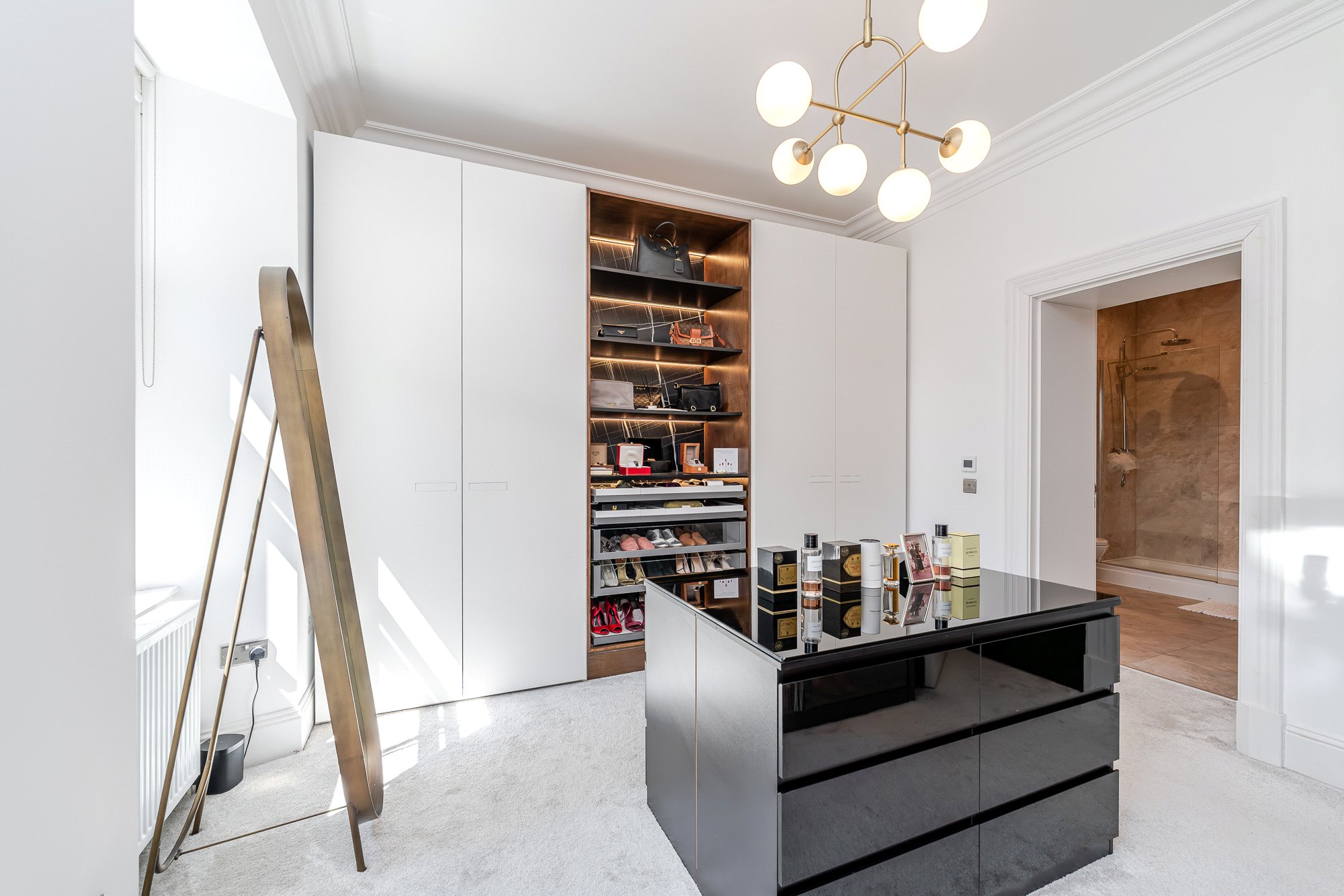 The home for sale is held within a substantial blonde sandstone townhouse which has been tastefully redeveloped to create a small collection of luxury dwellings. Number 18A is a main door duplex conversion with a truly exceptional specification. The building and surrounding grounds are immaculately maintained, and the property comes with the significant benefit of a private garden, gated patio, and a large garage – features that are rarely available in this part of the city.