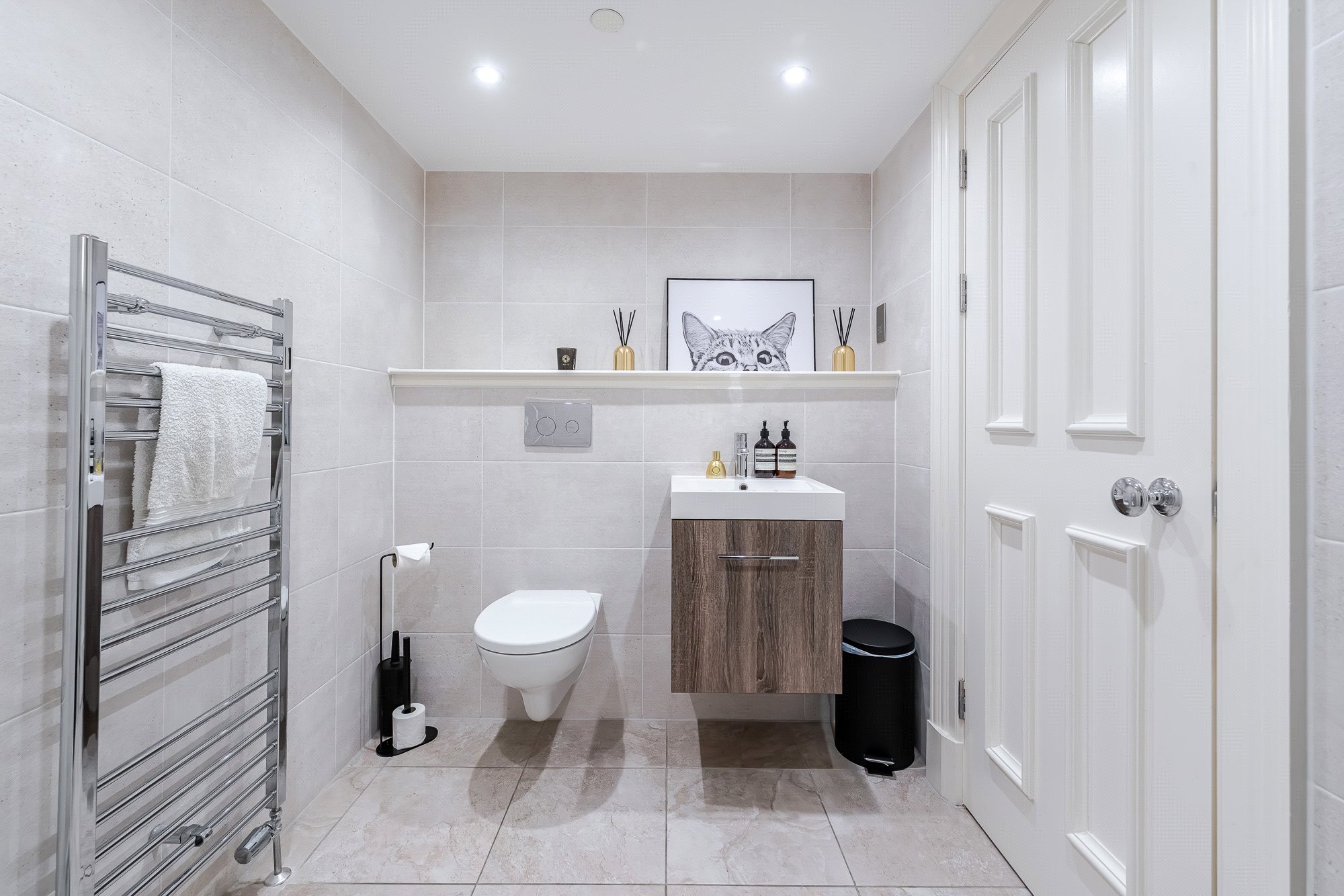 The private garden is a key feature of this home – enclosed, south-facing, and split between patio, artificial lawn and raised beds planted with well-established pleached trees, it offers an extremely rare slice of outdoor living in one of the city’s most desirable postcodes.