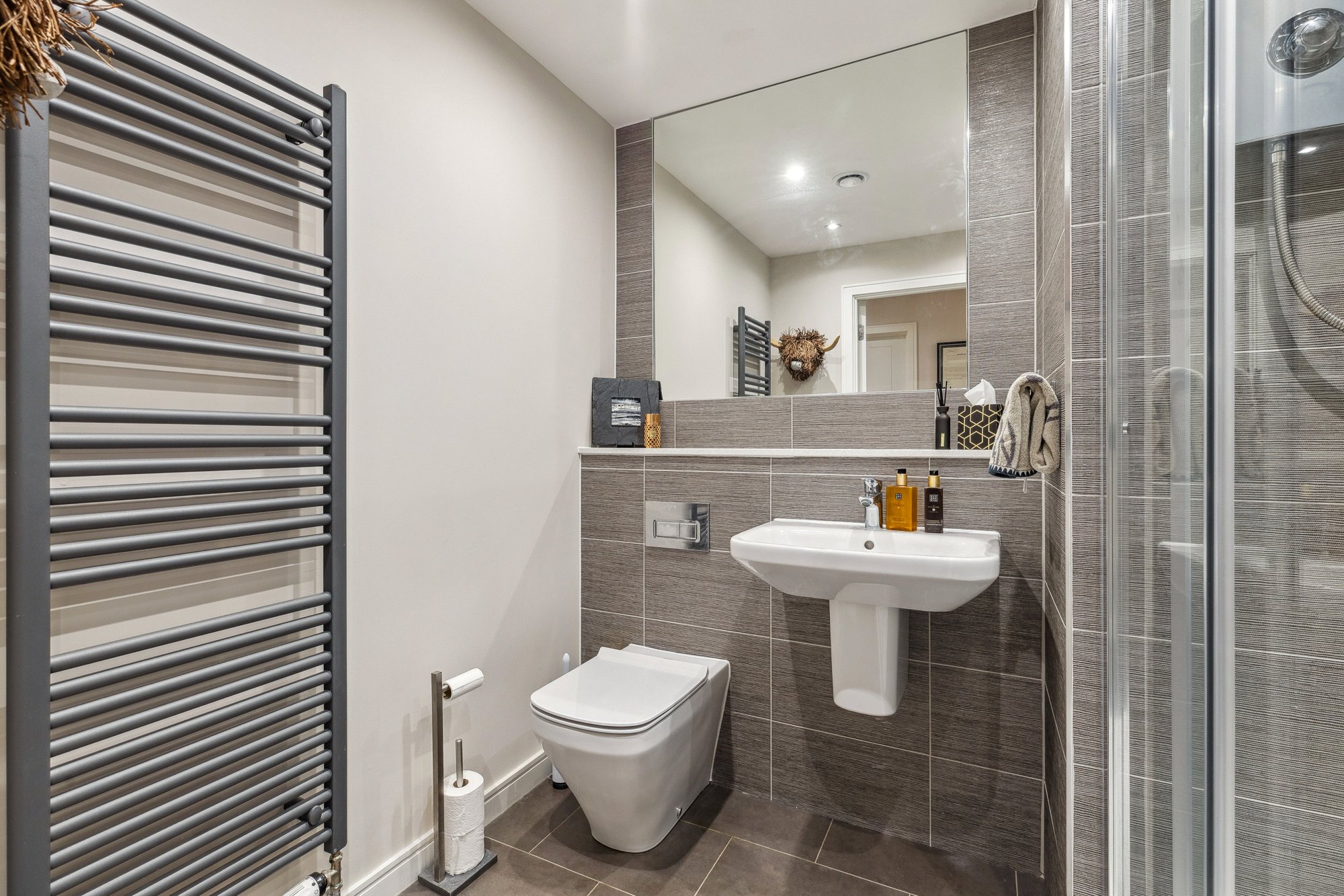 - Stylish en suite bathroom comprising bath, separate shower cubicle, toilet and wash hand basin