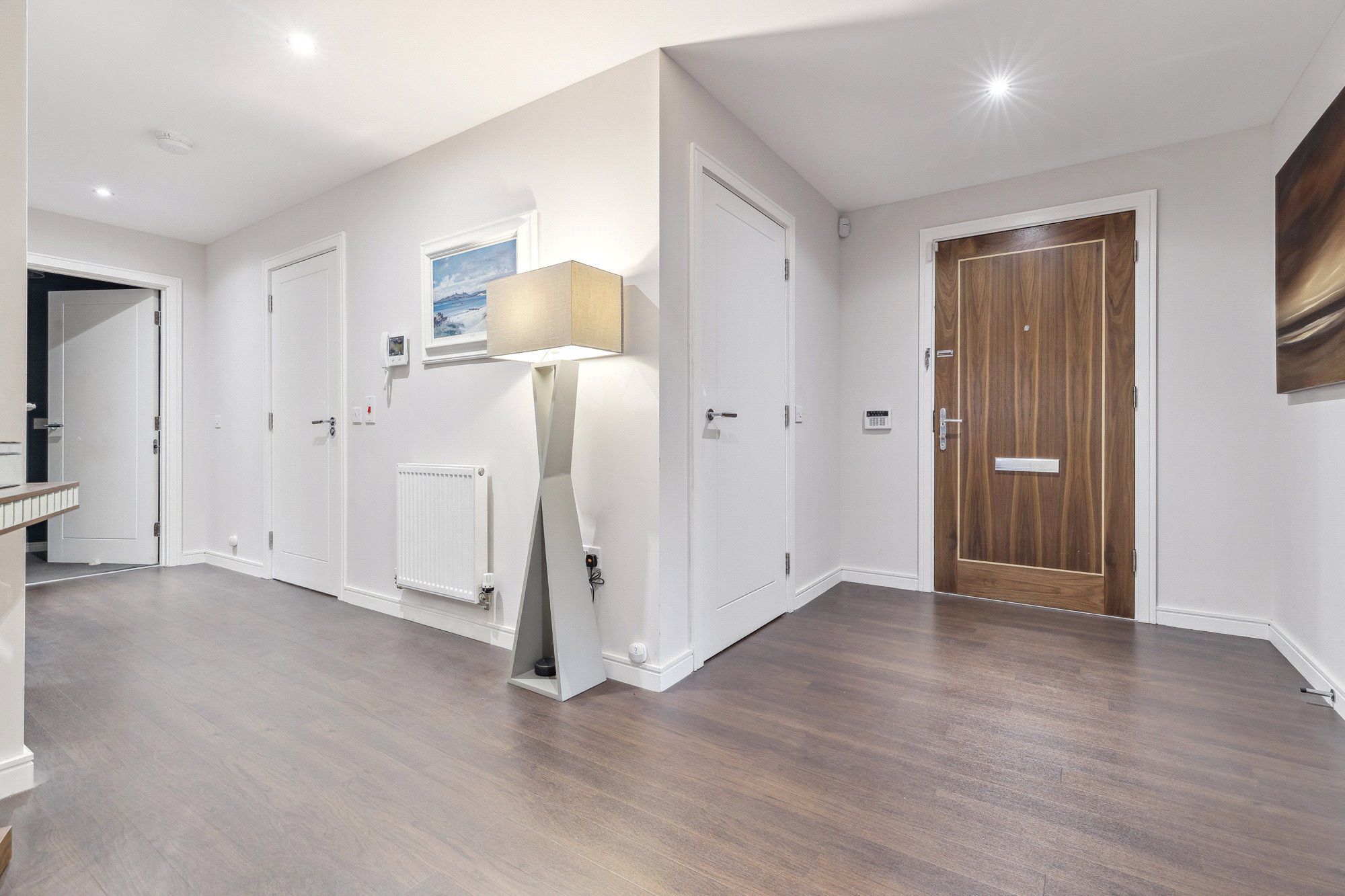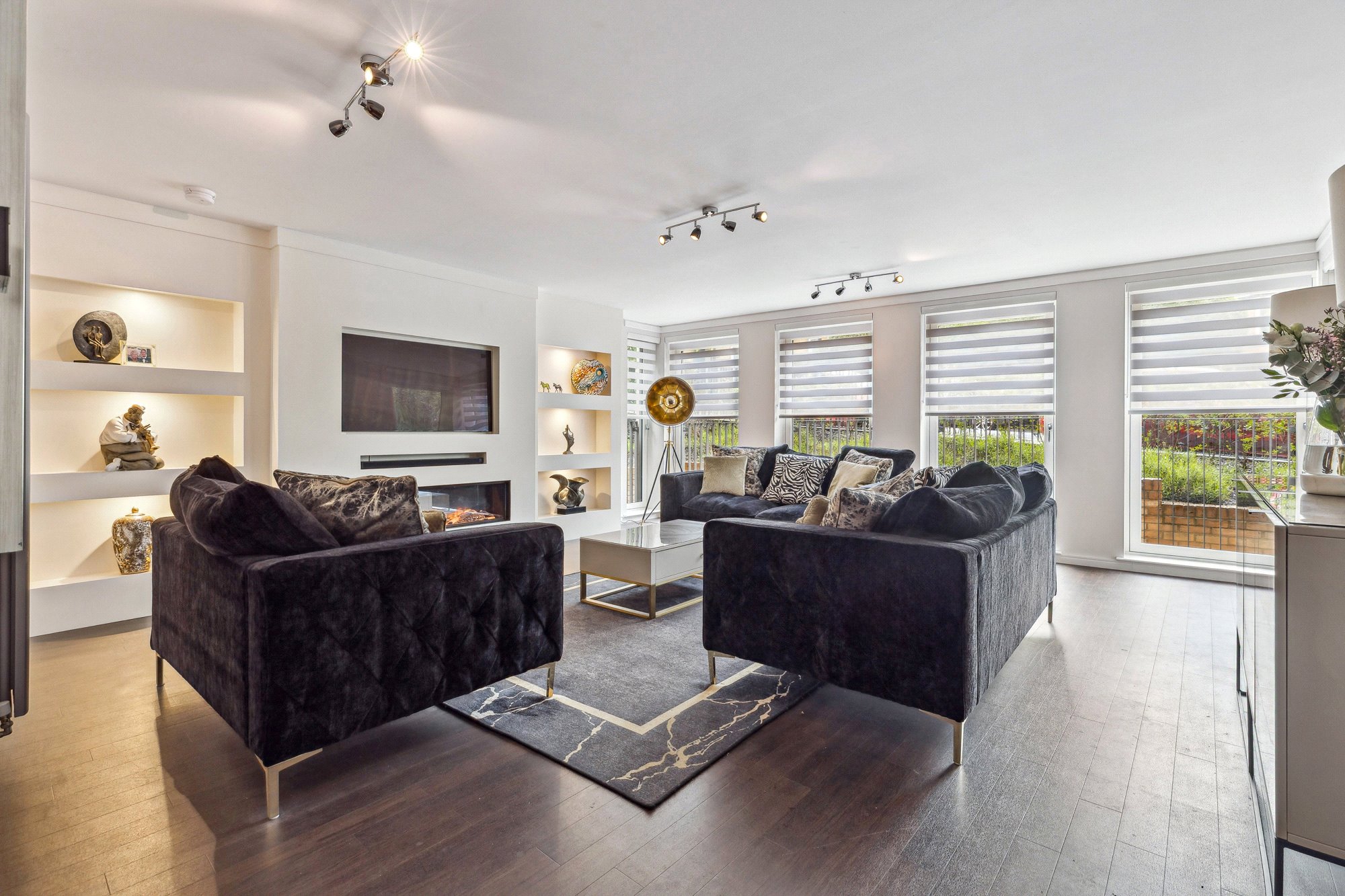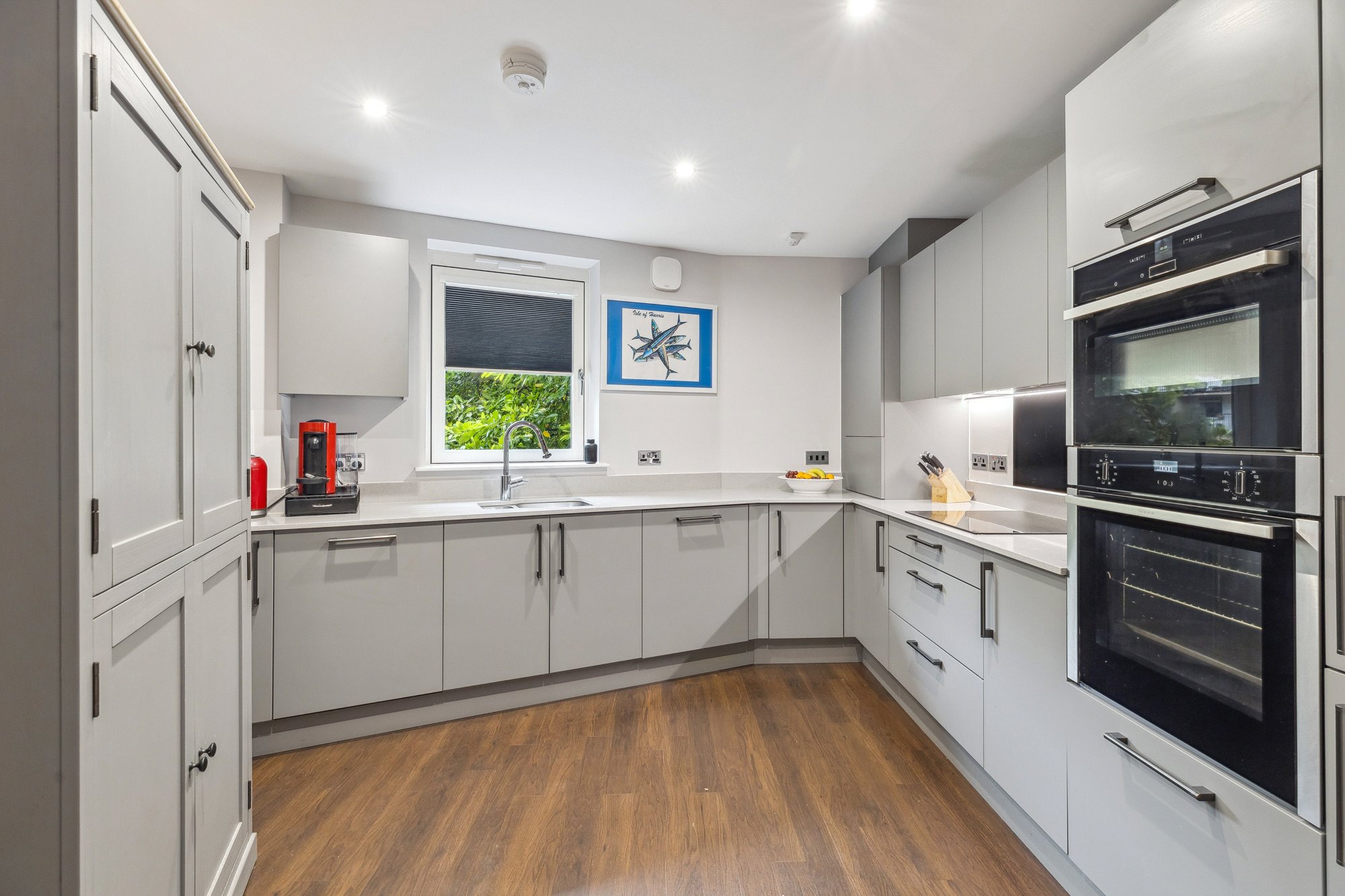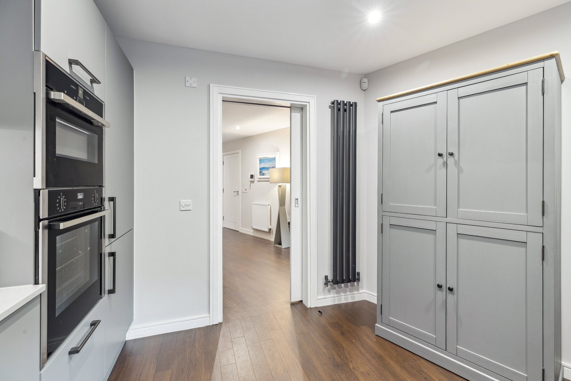 The interior benefits from excellent natural light, is of generous proportions and has been finished to an exceptional standard throughout. The accommodation includes a welcoming reception hall that leads into a superb main lounge/dining room which provides access to a charming, south facing balcony/terrace. There is an impressive, kitchen off the reception hall with generous storage, a contemporary finishes including integrated Neff appliances and Silestone worktops. In addition, there are three spacious and adaptable double bedrooms, a contemporary four-piece en suite bathroom and a three-piece shower room off the reception hall. Additional features include a useful utility cupboard off the reception hall, ample storage including fitted wardrobes in bedroom two and a large walk-in cupboard off the principal bedroom. Both the shower room and en suite bathroom benefit from Porcelanosa tiling and we would highlight the significant advantages of an allocated parking space within the secure residents’ car park, lift access to each level and a delightful shared garden.