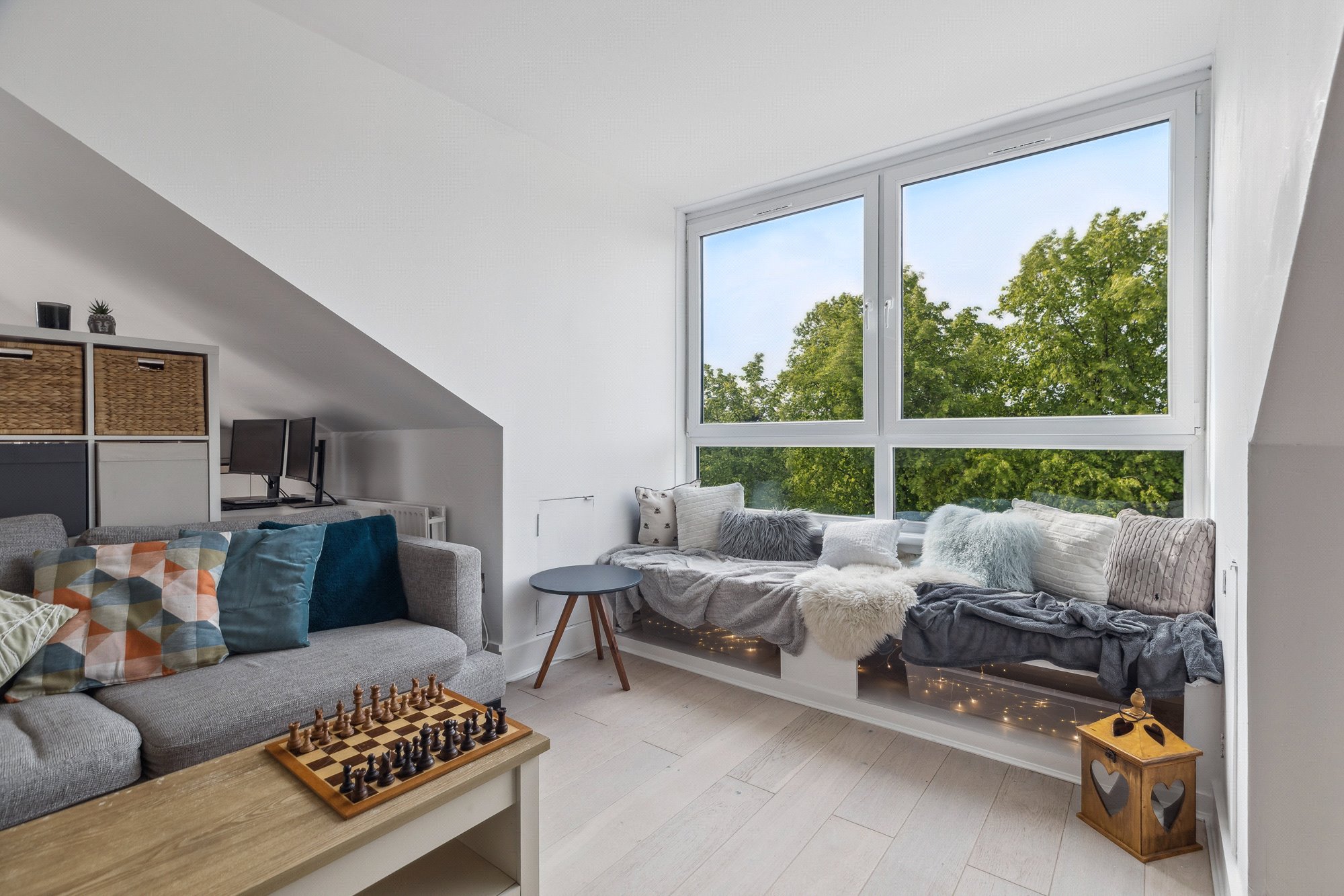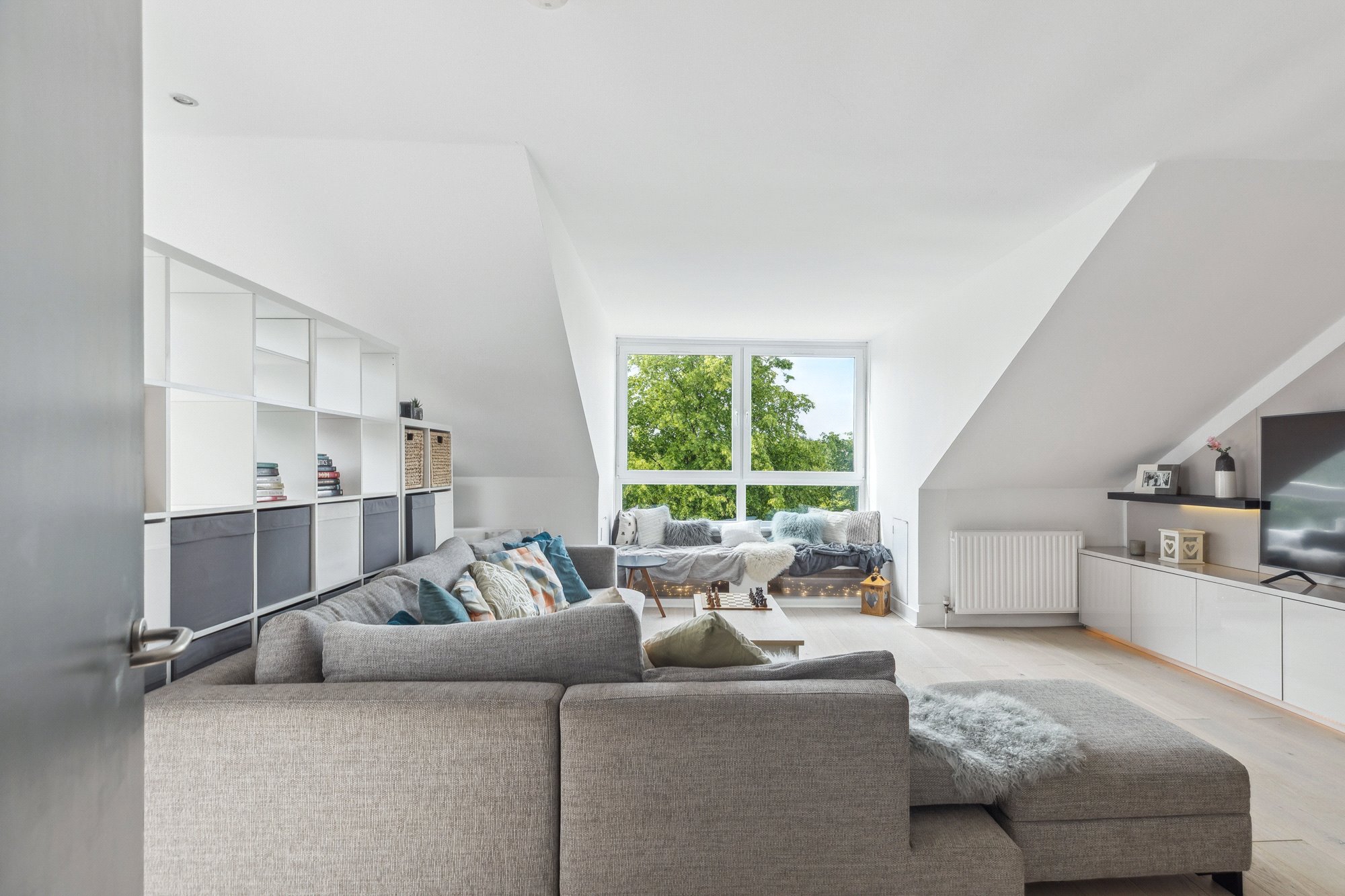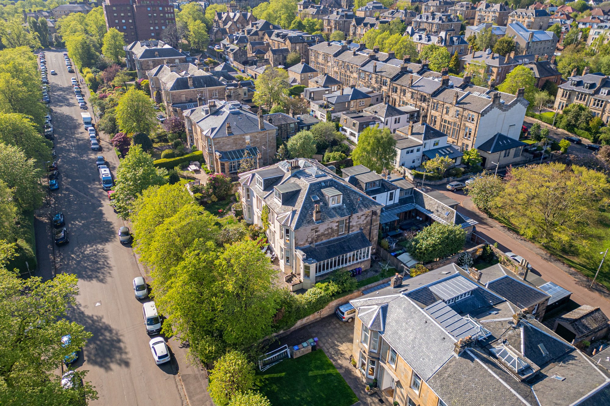 Tucked away in a peaceful, address in Kelvinside - the property for sale is a stunningly bright and beautifully appointed two-bedroom attic level conversion, held within a particularly elegant semi-detached sandstone villa. Number 13 Cleveden Drive is set within an elevated and highly private plot surrounded by stunning, healthy trees and bushes – creating a rare sense of seclusion for such a centrally located home.