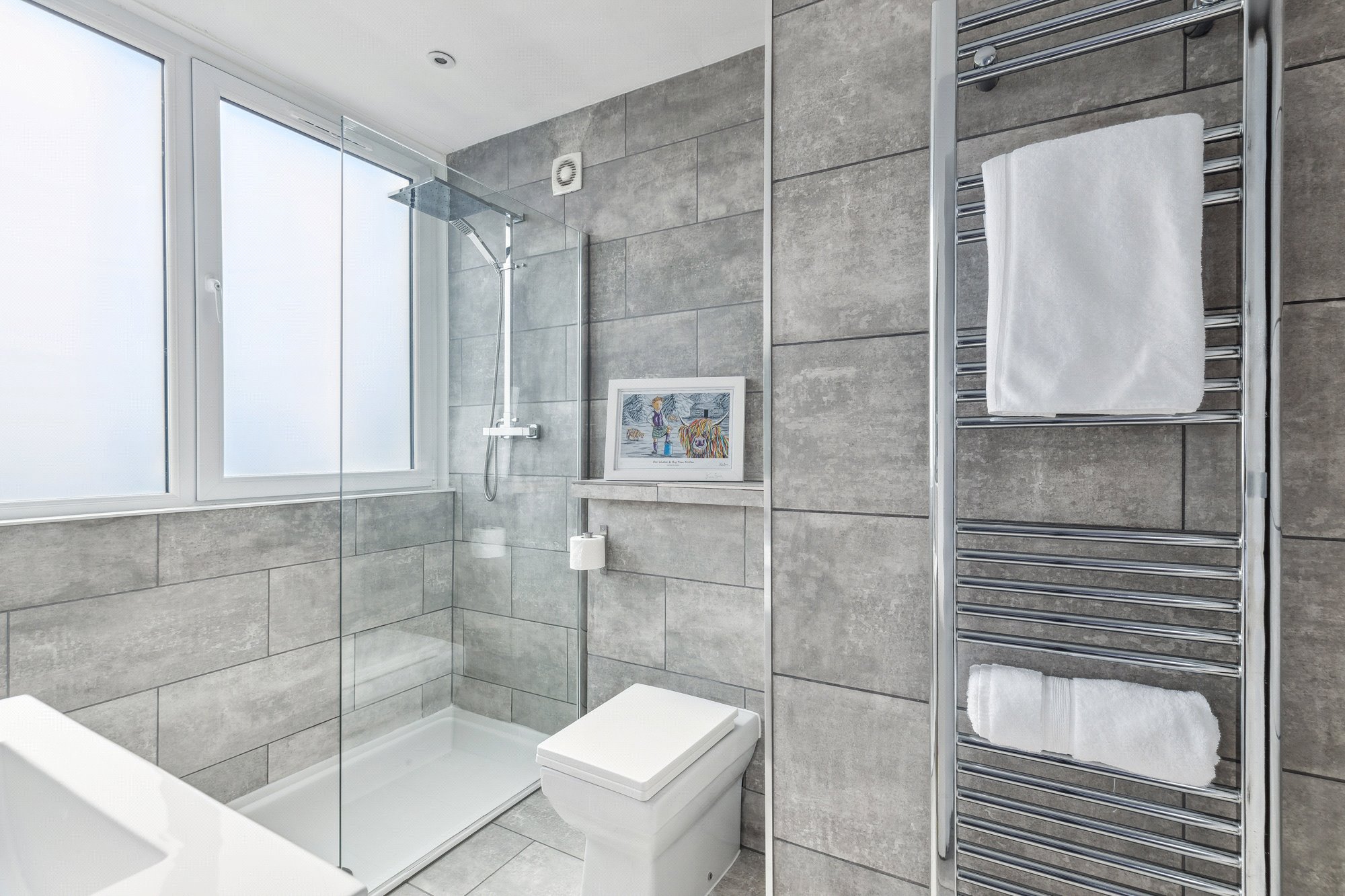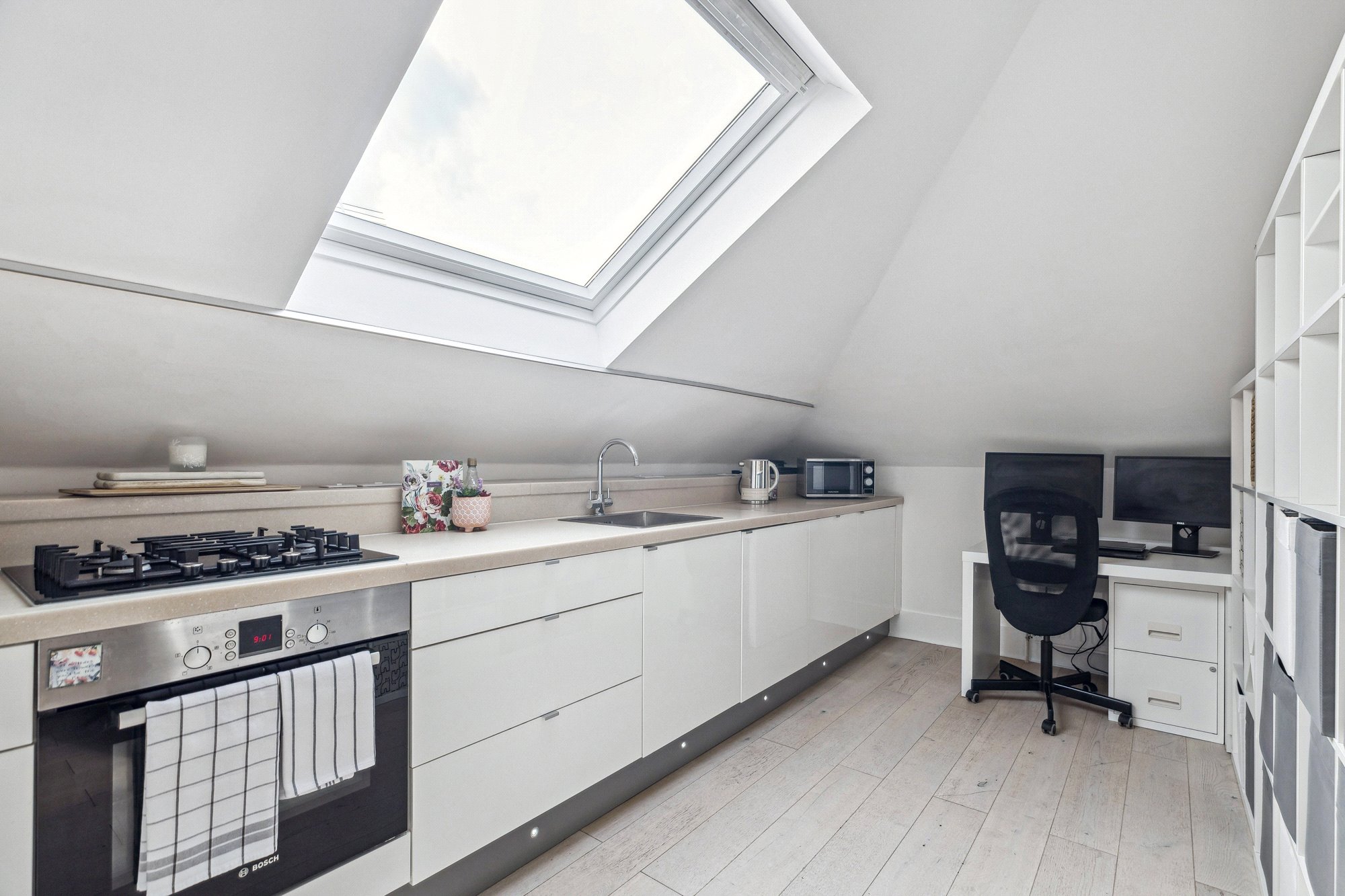 In terms of accommodation, the attached photographs, floorplan and HD video will provide you with some idea of the overall size, style and specification but viewers are encouraged to visit the property in person to fully appreciate it’s impressive attributes in full. In brief the accommodation extends to; entrance hall, open plan living, kitchen and dining room which is completely flooded with light thanks to wide aperture window formations with the largest window having a charming window seat area and South-facing aspect. The kitchen has been re-fitted to an extremely high specification and features stone work surfaces and high quality integrated appliances. There is a good-sized cupboard off the kitchen too for tucking away incidental items. The bedrooms are of good proportions and comfortably accommodate double beds and free-standing bedroom furniture. The principal has the added benefit of a contemporary en-suite shower room with attractive tiling and white suite. The main shower is presented in superb order and has been styled in the same fashion as the en-suite but is larger and particularly bright.
