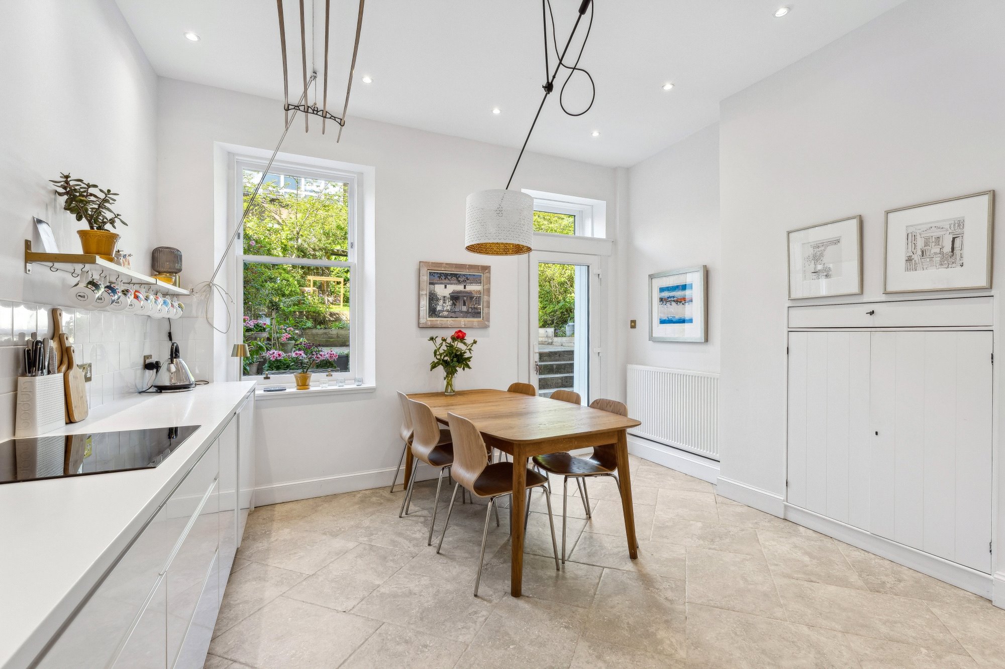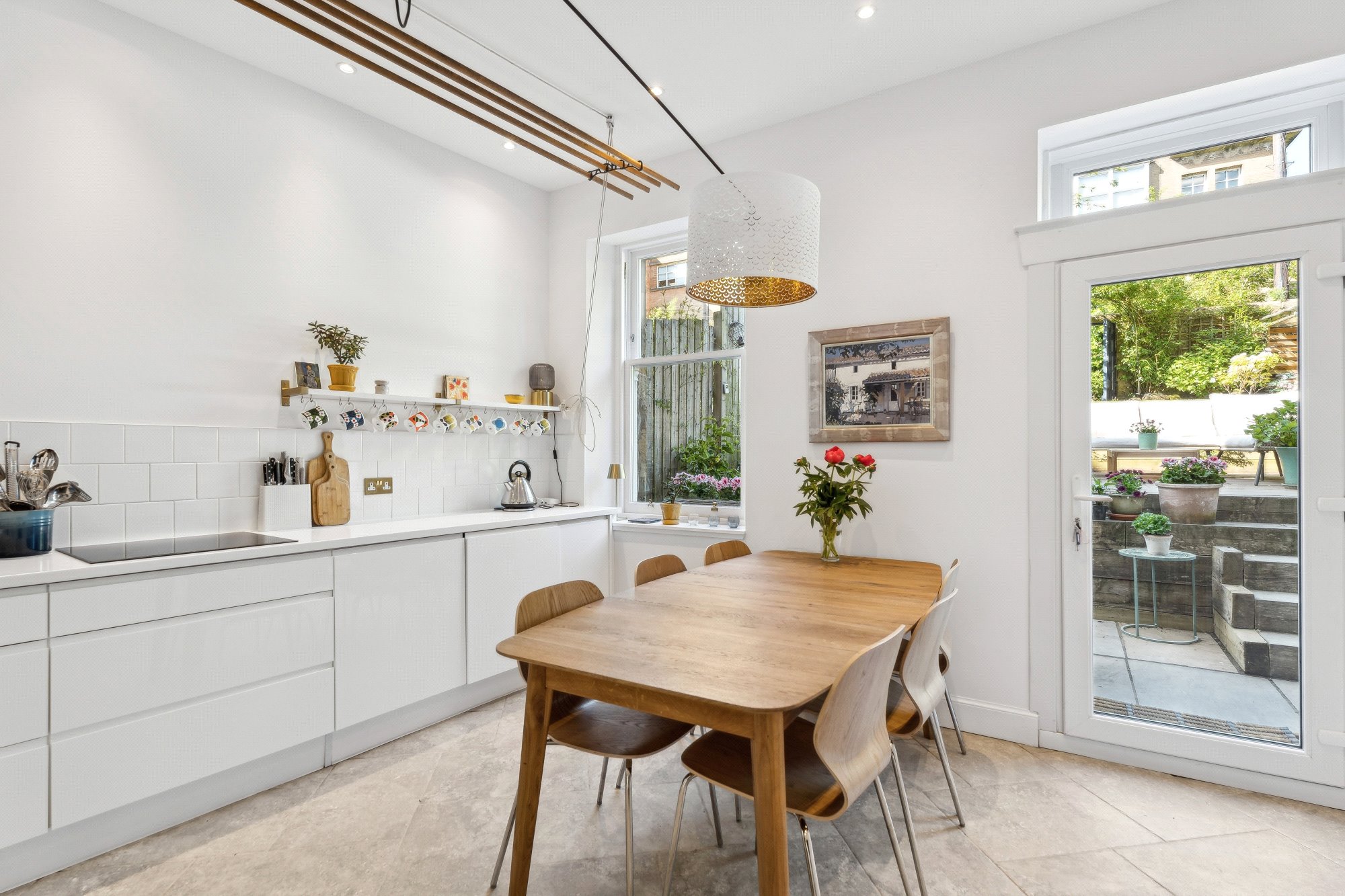 - Impressive dining kitchen complete with a range of base, units, tower units, integrated appliances, window to the rear, window to the side and direct access to the private garden