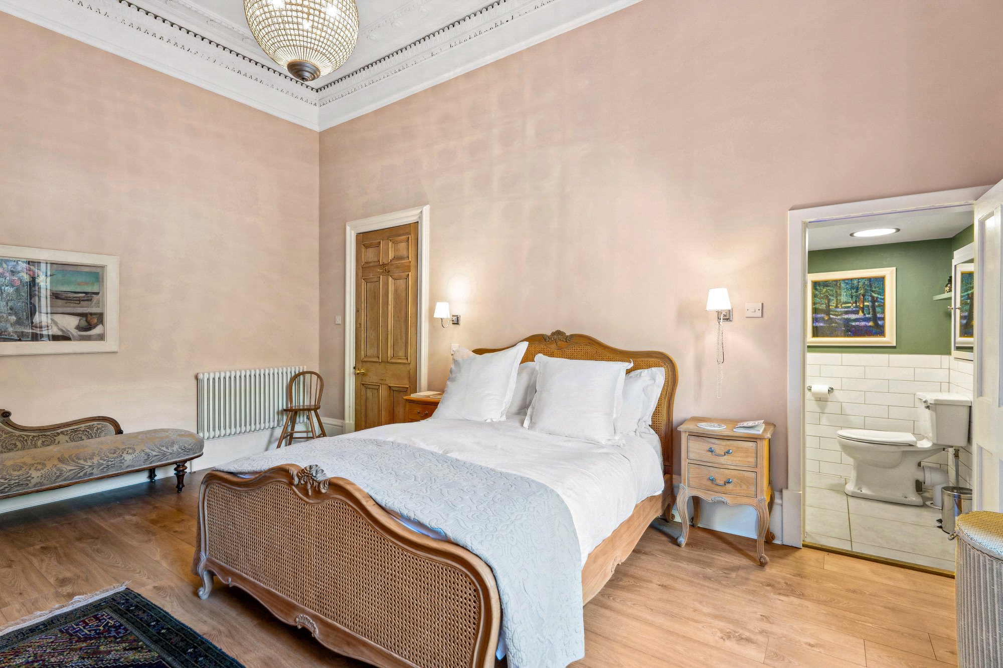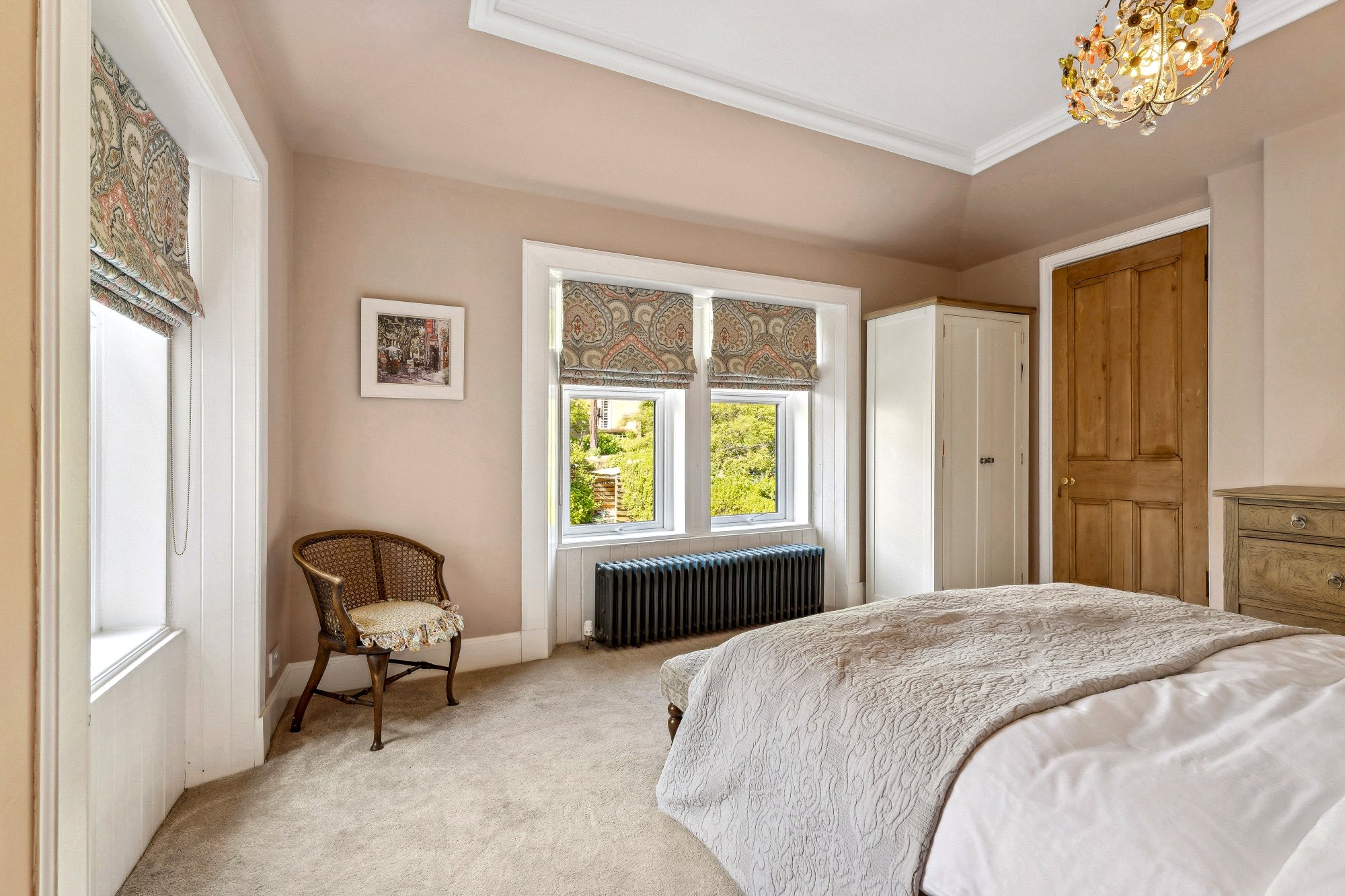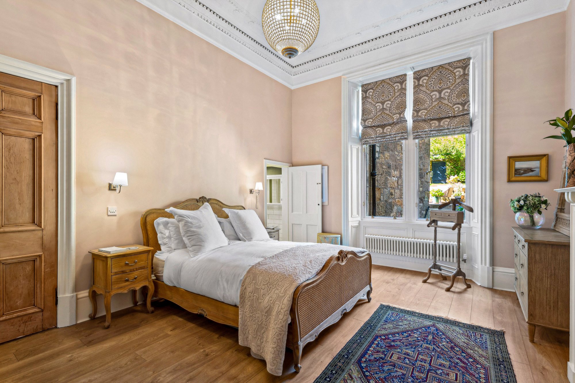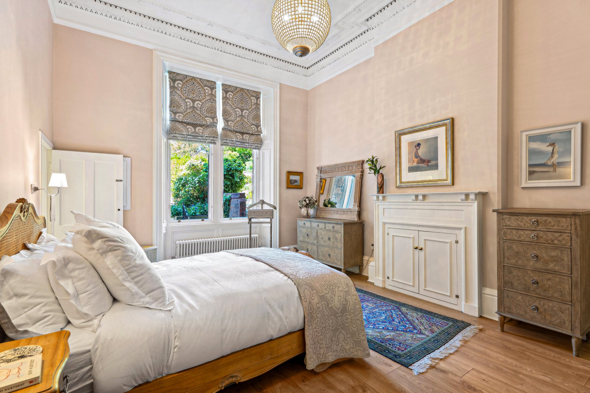 - Particularly spacious principal bedroom with two section window to the rear, ornate ceiling cornice, focal point fire surround and access to Jack and Jill bathroom