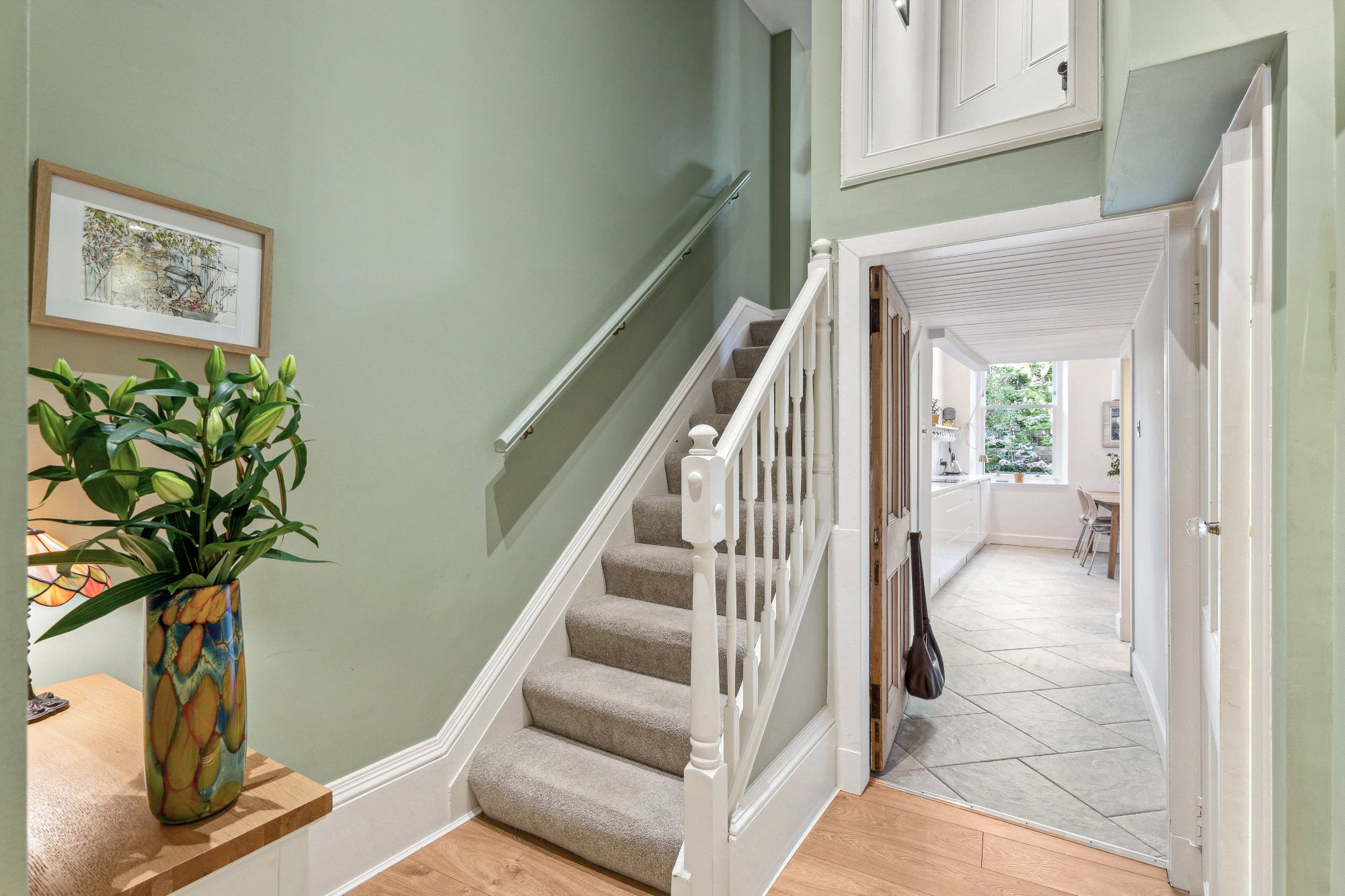 - Welcoming reception hall with useful storage cupboard off and staircase to upper level