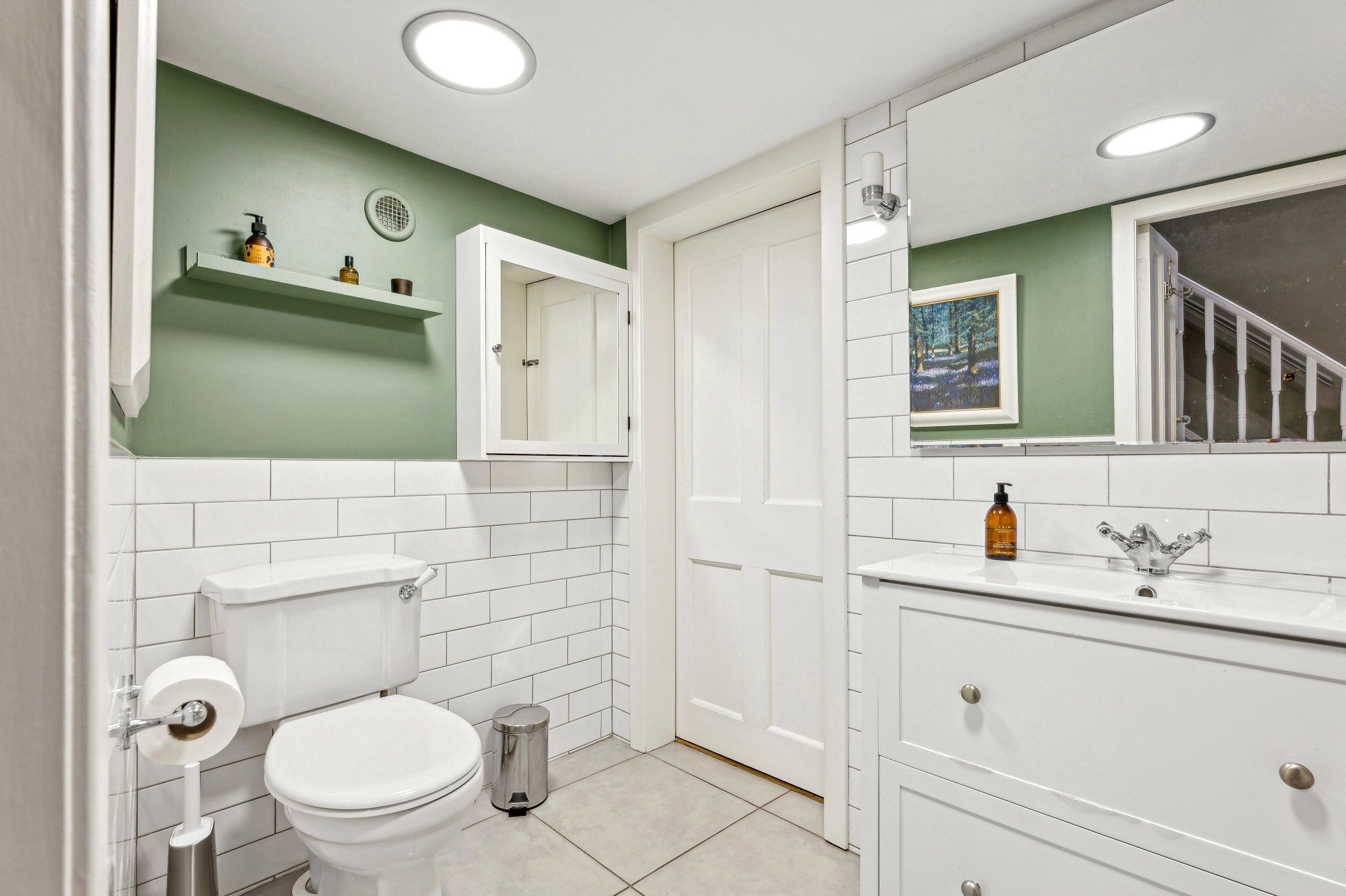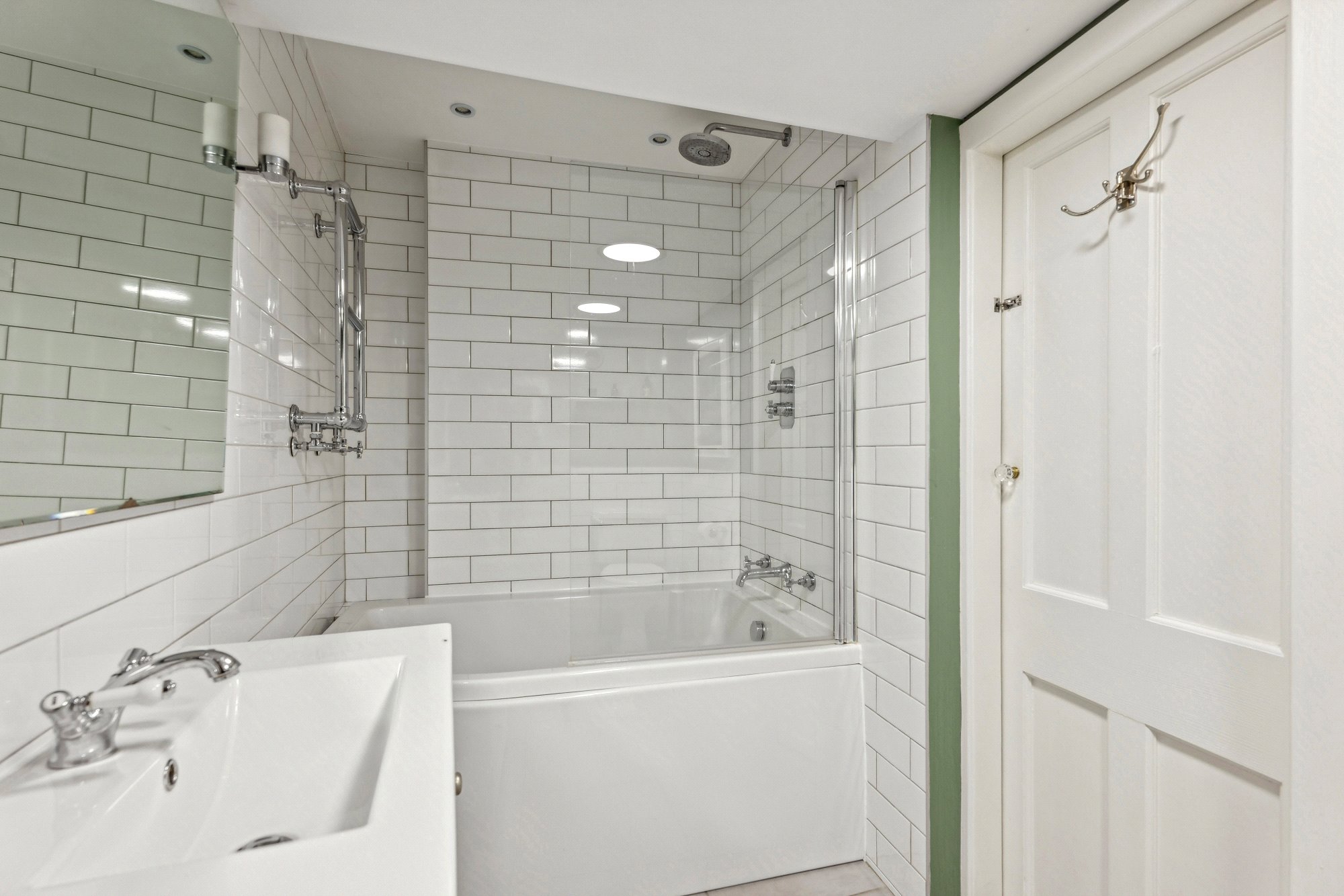 - Stylish three-piece bathroom accessed from the reception hall or bedroom one comprising bath, over bath shower, toilet and wash hand basin
