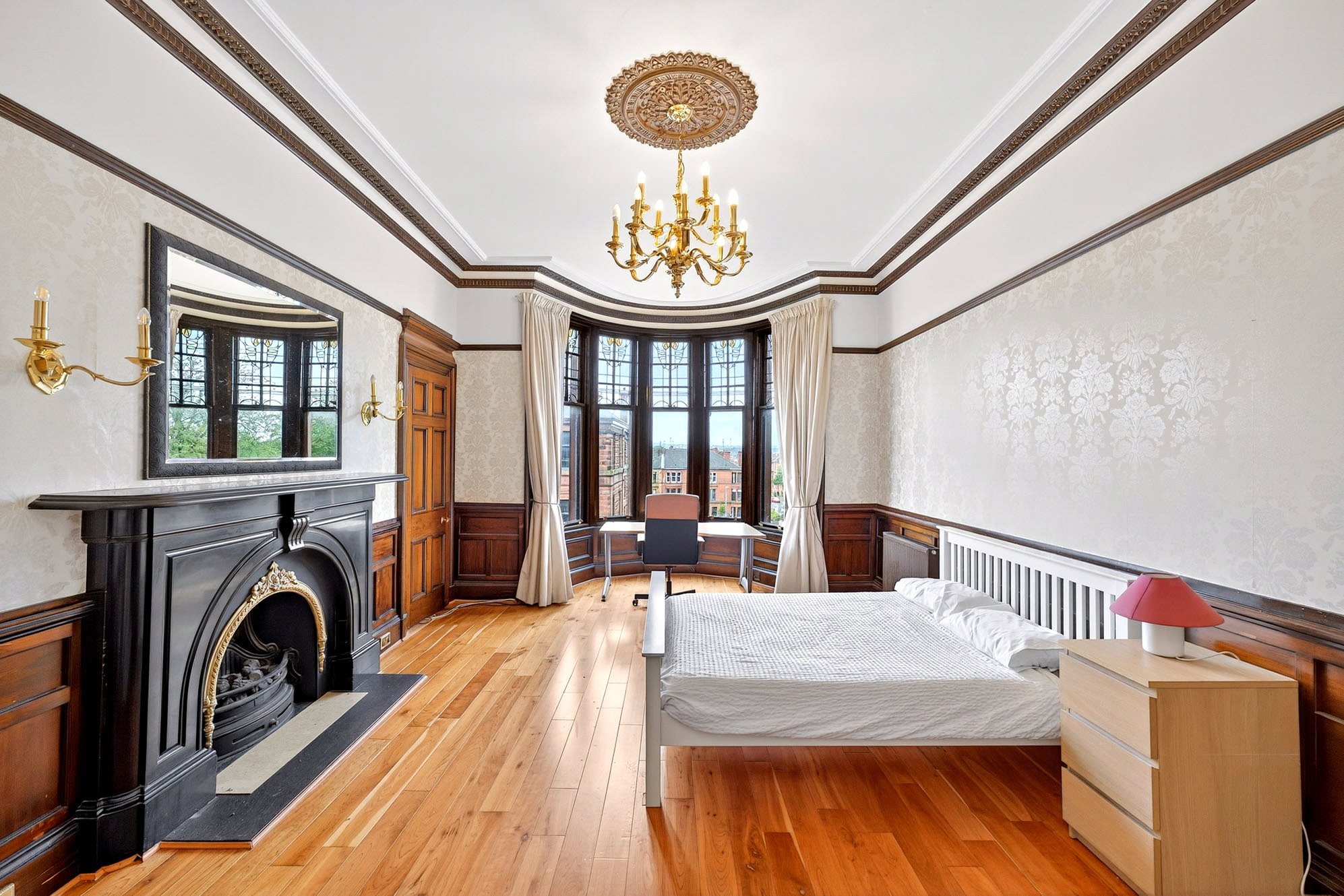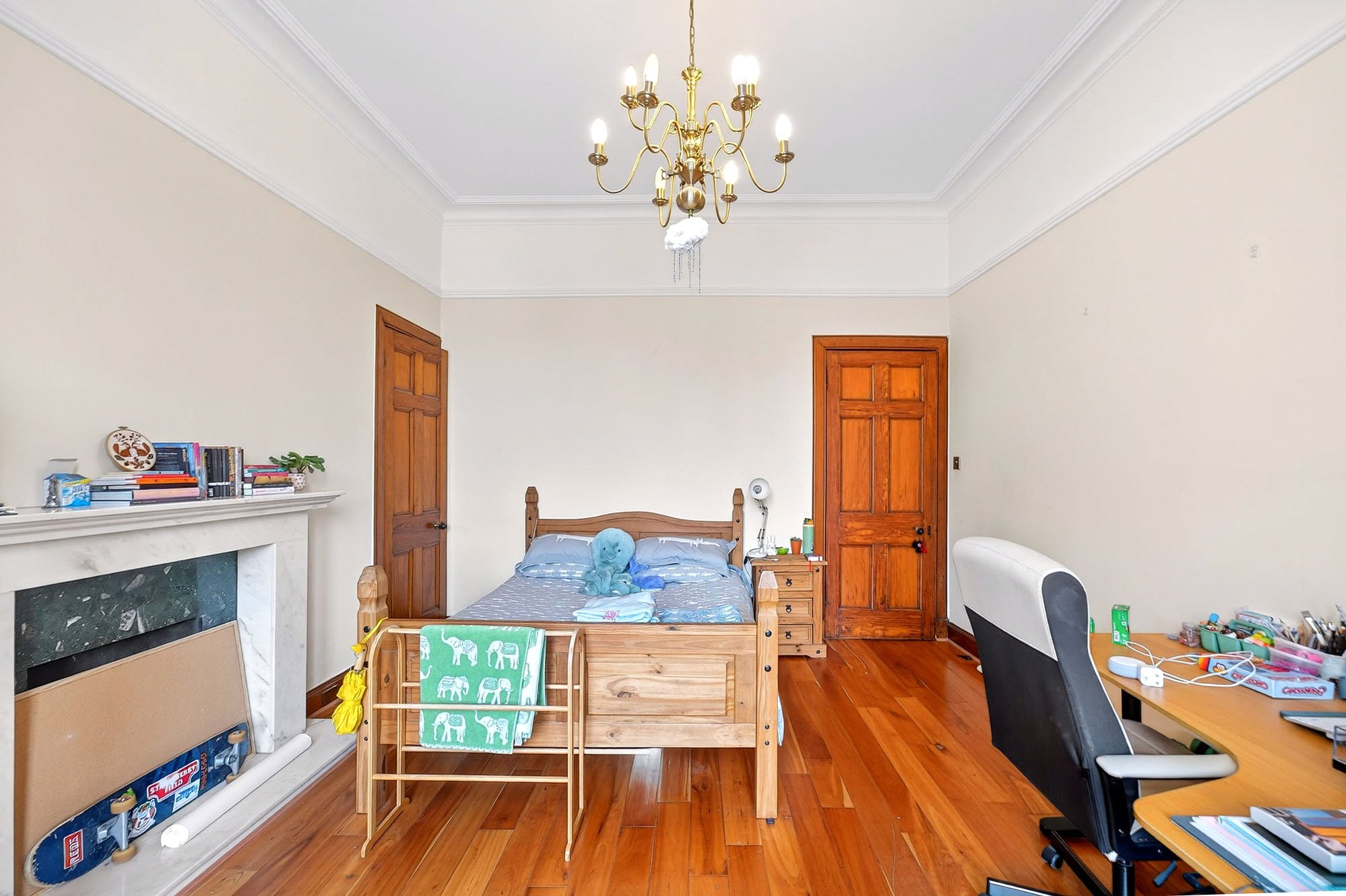 - Principal bedroom with original fireplace and low-level panelling