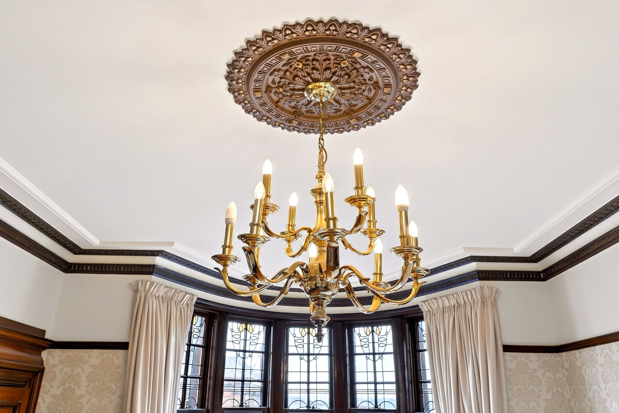 - Retains stunning original features including hardwood panelling, stained glass, and brass light fittings