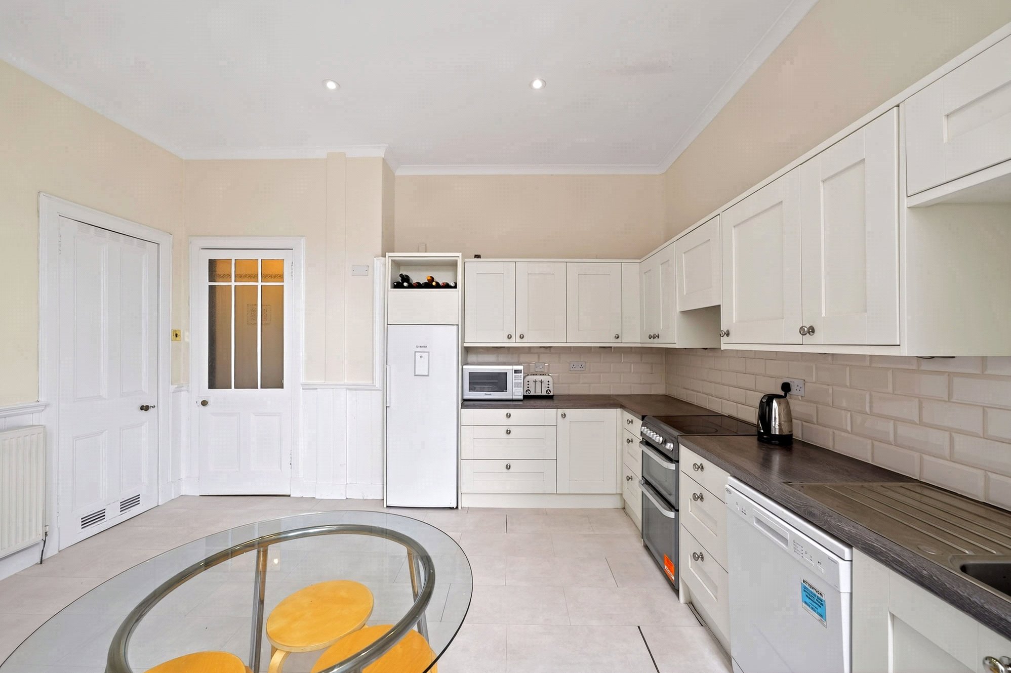 - Generous dining kitchen with pantry cupboard and space for a six-seater dining table