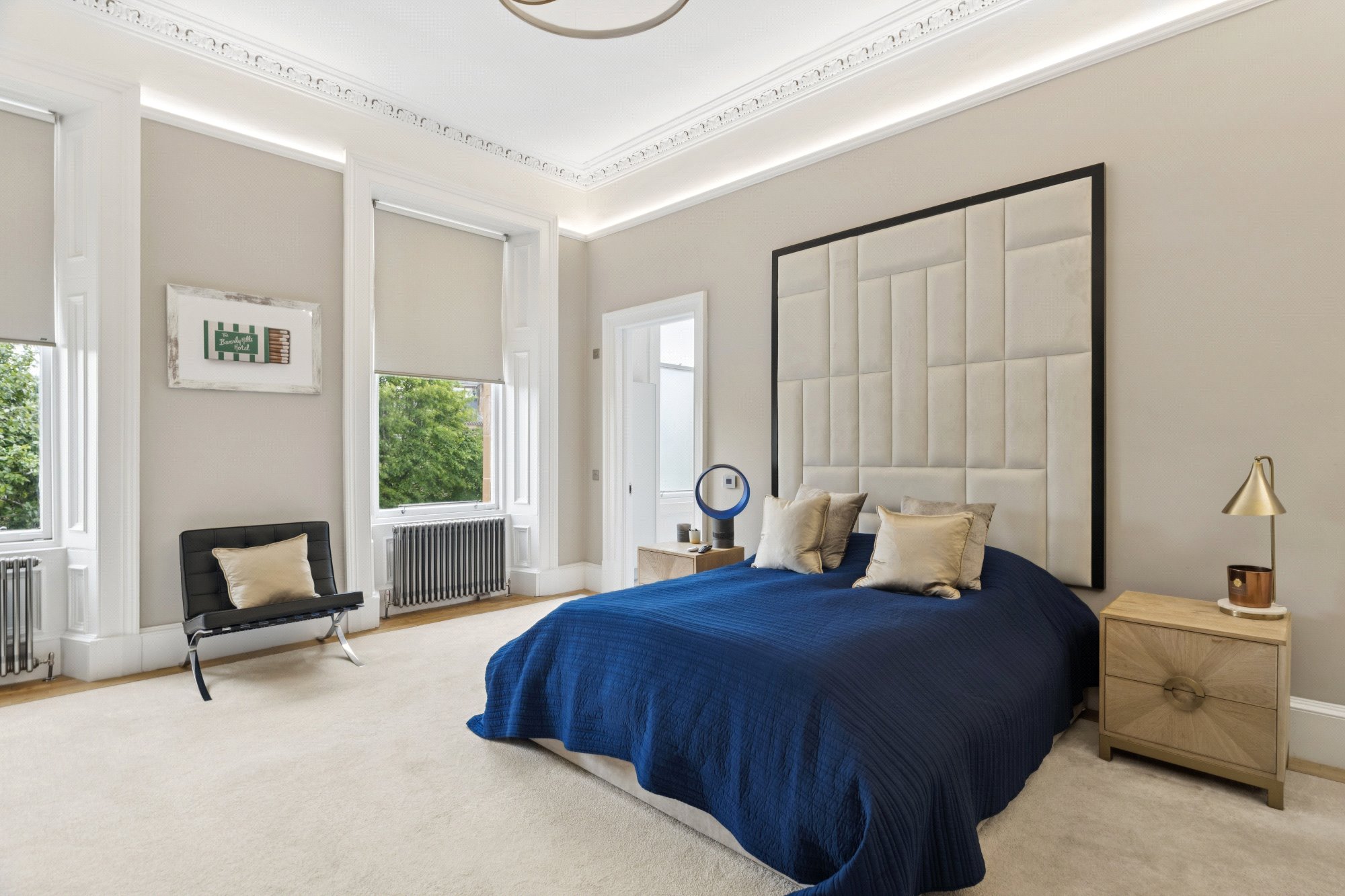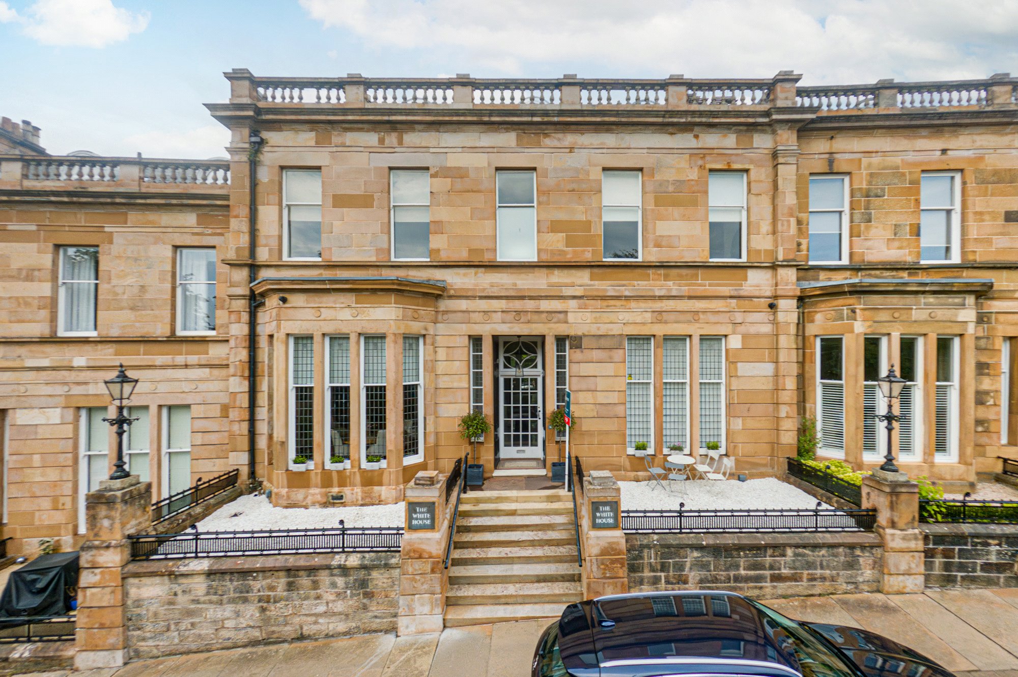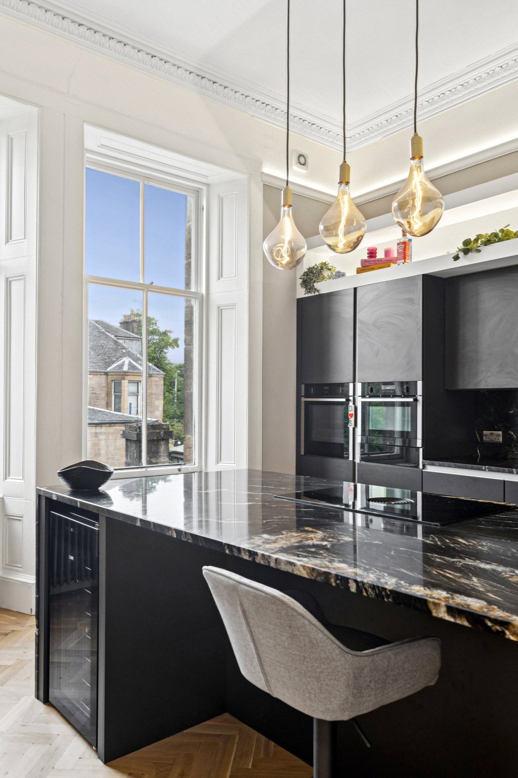 Completed in 2022 to an impeccable standard, the property occupies a prominent position within this distinguished West End terrace and seamlessly blends classic architectural charm with sophisticated contemporary design. Accessed via a grand communal entrance with marble-style flooring and a restored original staircase, the stairway is flooded with natural light from a stunning cupola.