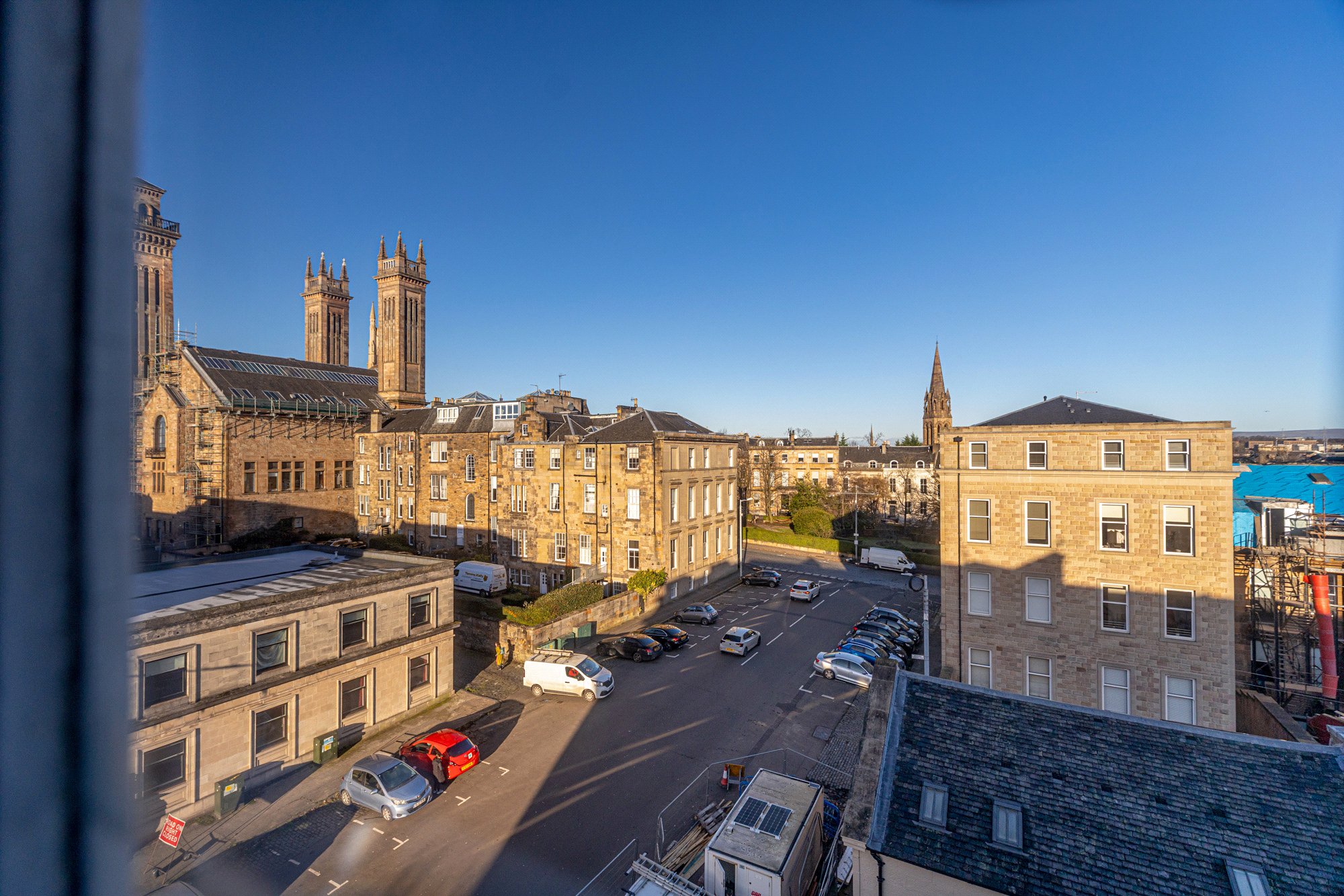 The property is situated in a quiet residential location yet is a leisurely stroll through Kelvingrove Park to an enviable selection of Glasgow’s desirable dining in the nearby Finnieston area. This outstanding home is also exceptionally well placed for the City Centre, Byres Road and The University of Glasgow. The property is also well placed for access to Pacific Quay located just over the Clyde Arc Bridge in Finnieston and is home to BBC Scotland and STV.