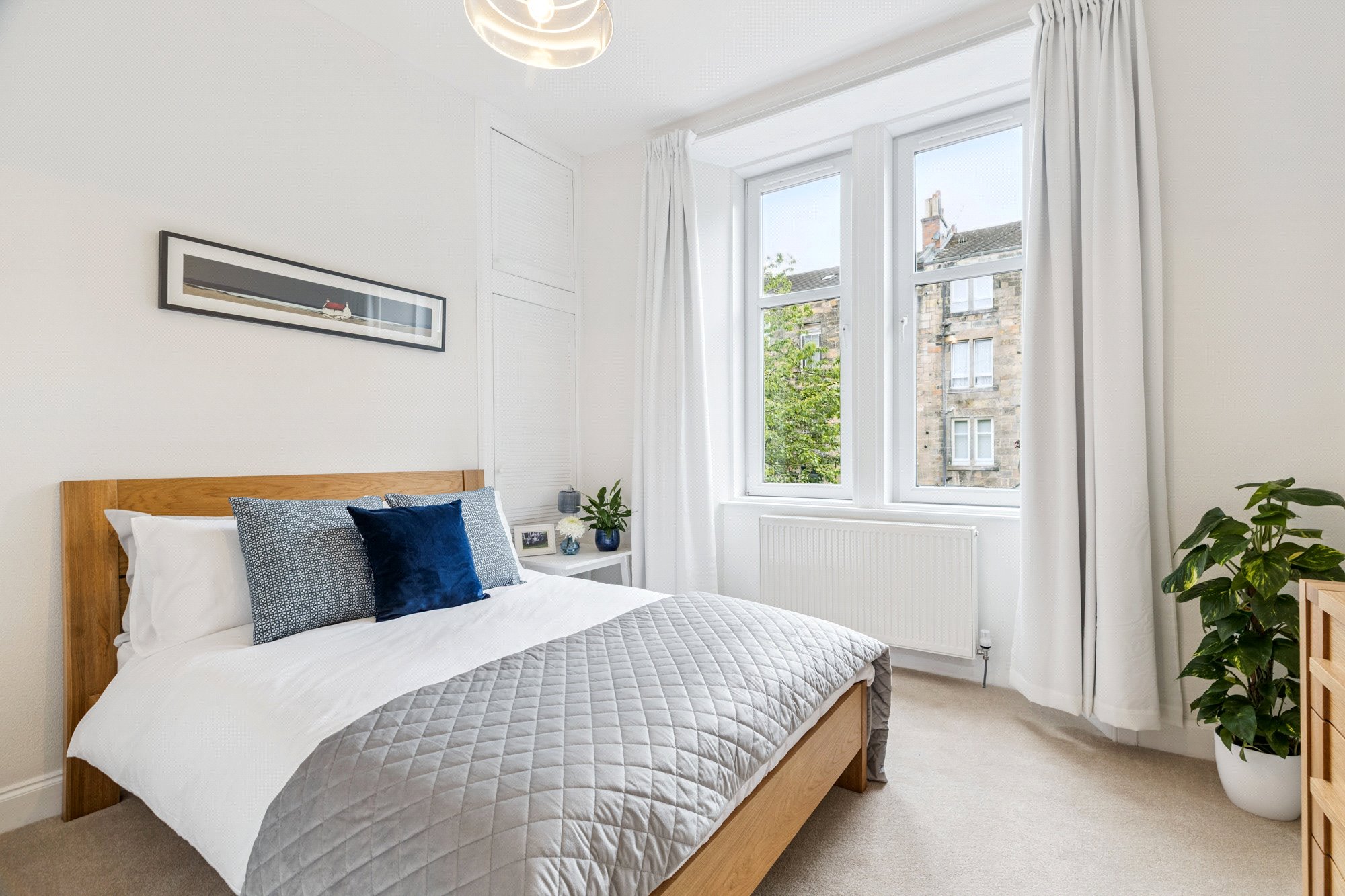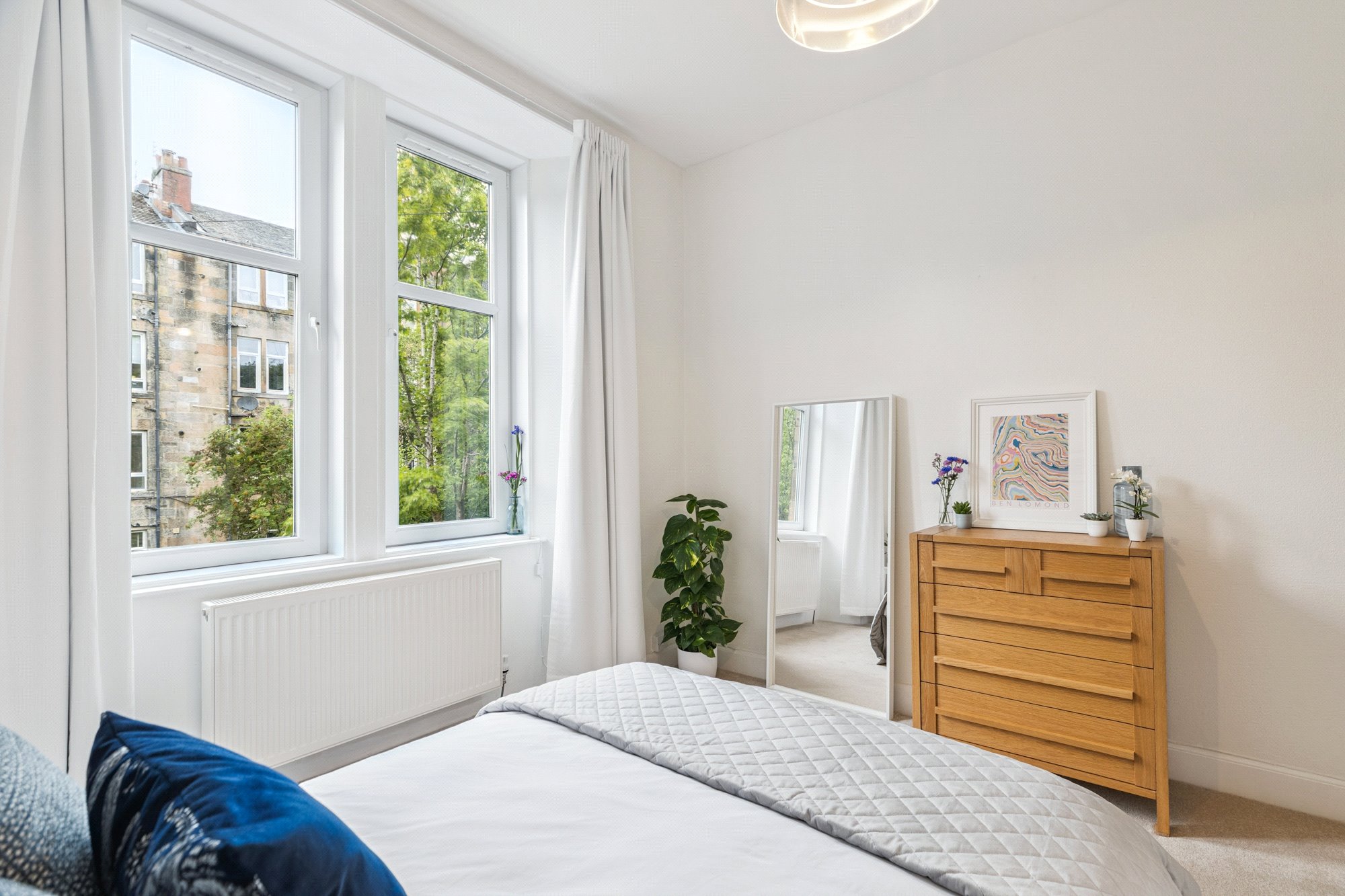 - Bedroom with two section window to the rear
