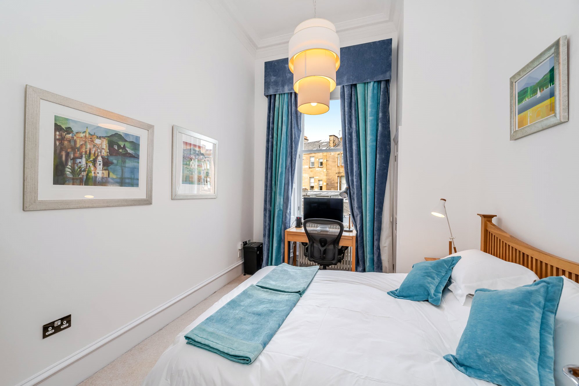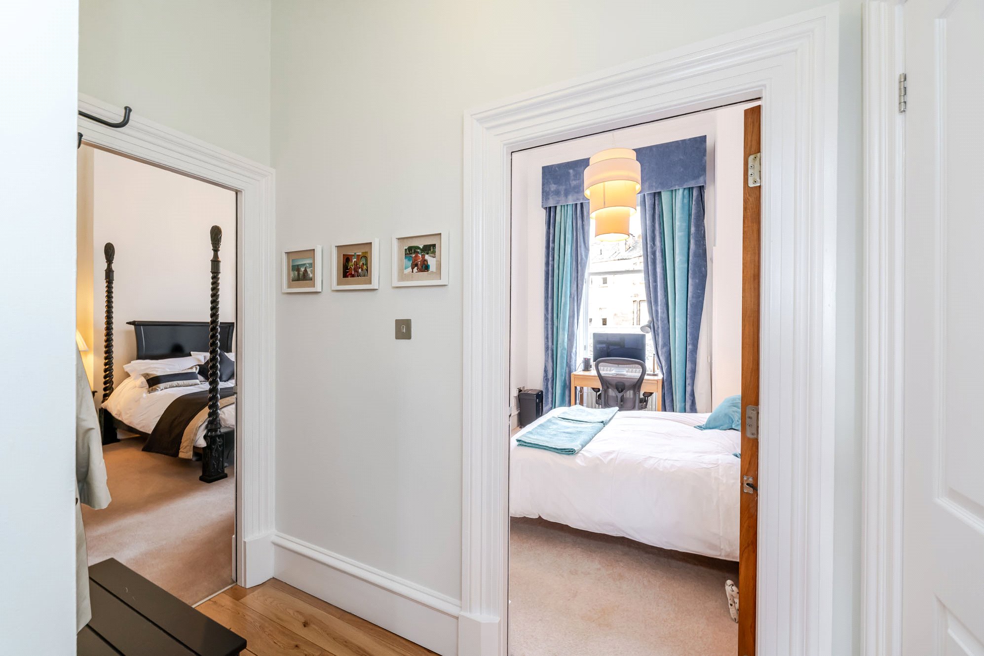 Once inside you will quickly see that the communal hall and stairway is presented in superb order, thanks to the combined efforts of the appointed factor and residents who clearly take great pride in the appearance of their building and treat the common spaces as part of their home. Parking is available on street and permits are available via the local authorities for a reasonable annual fee. Perhaps as a result of there only being homes on one side of the street, availability of parking spaces is generally good – especially in the evening and during the weekend.