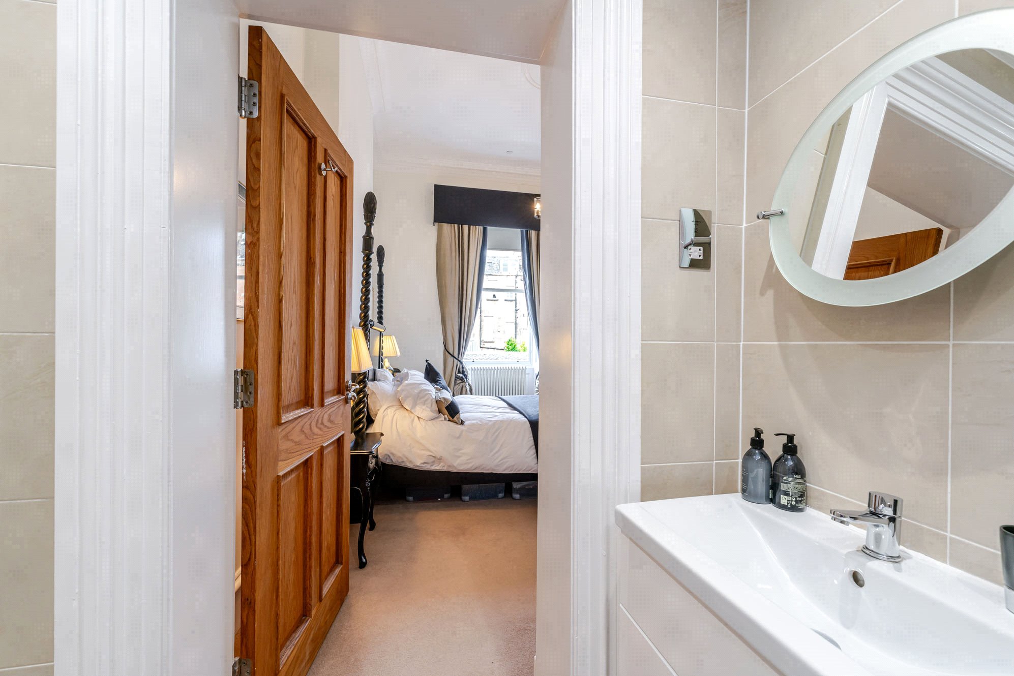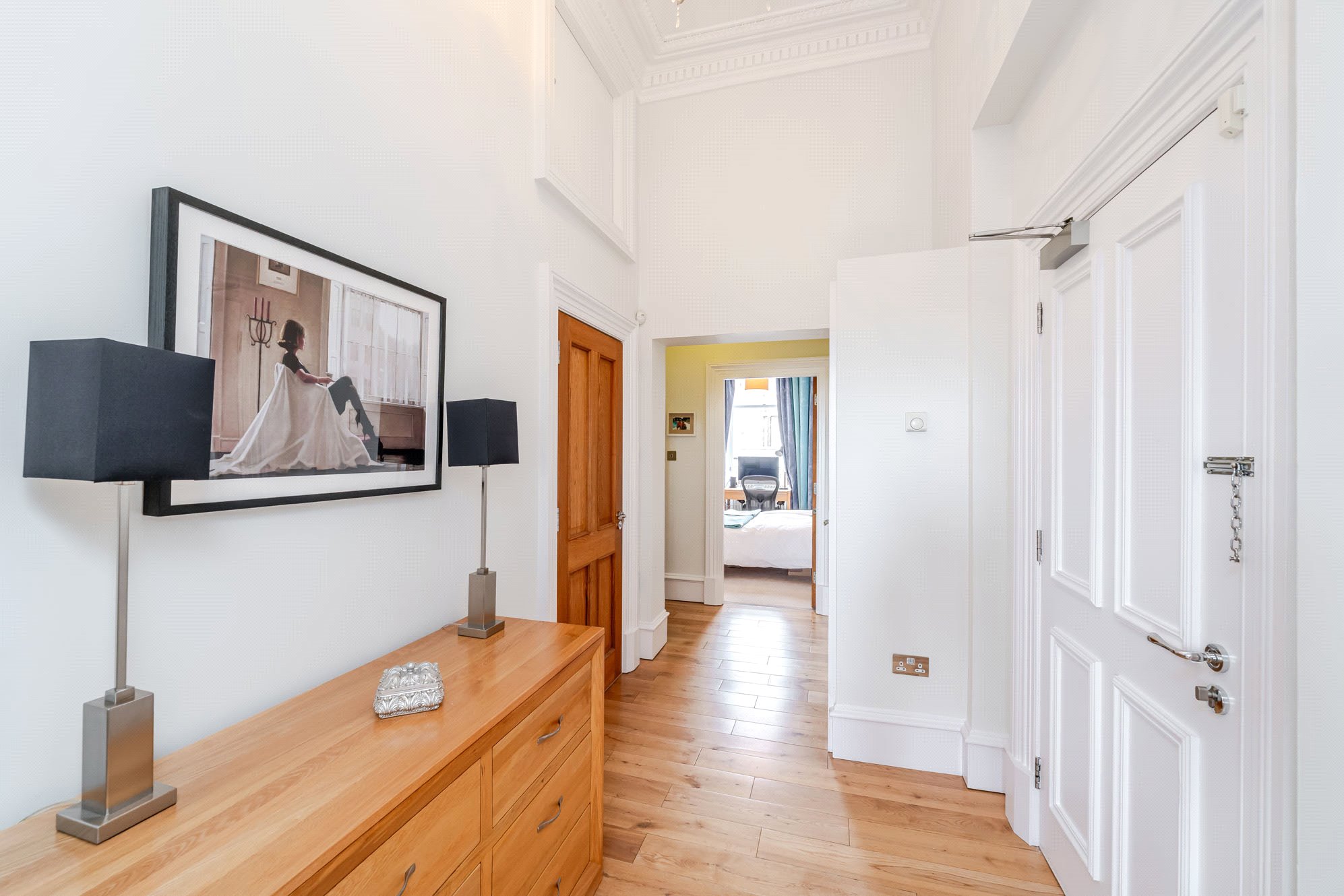 The apartment for sale is a superb example of a substantial and beautifully formed first floor conversion, offering bright and airy accommodation in a particularly quiet address with buildings on just one side of the street. Upon arrival you will quickly note that Woodlands Terrace is particularly neat & attractive, with resident’s gardens on the Southerly side of the road, which has just been resurfaced within the last few weeks. The home for sale is held within an elegant blonde sandstone townhouse which has been stone-cleaned and as such is particularly attractive from the kerbside. Access to the shared hall and stairway is via a secure door with intercom entrance system.