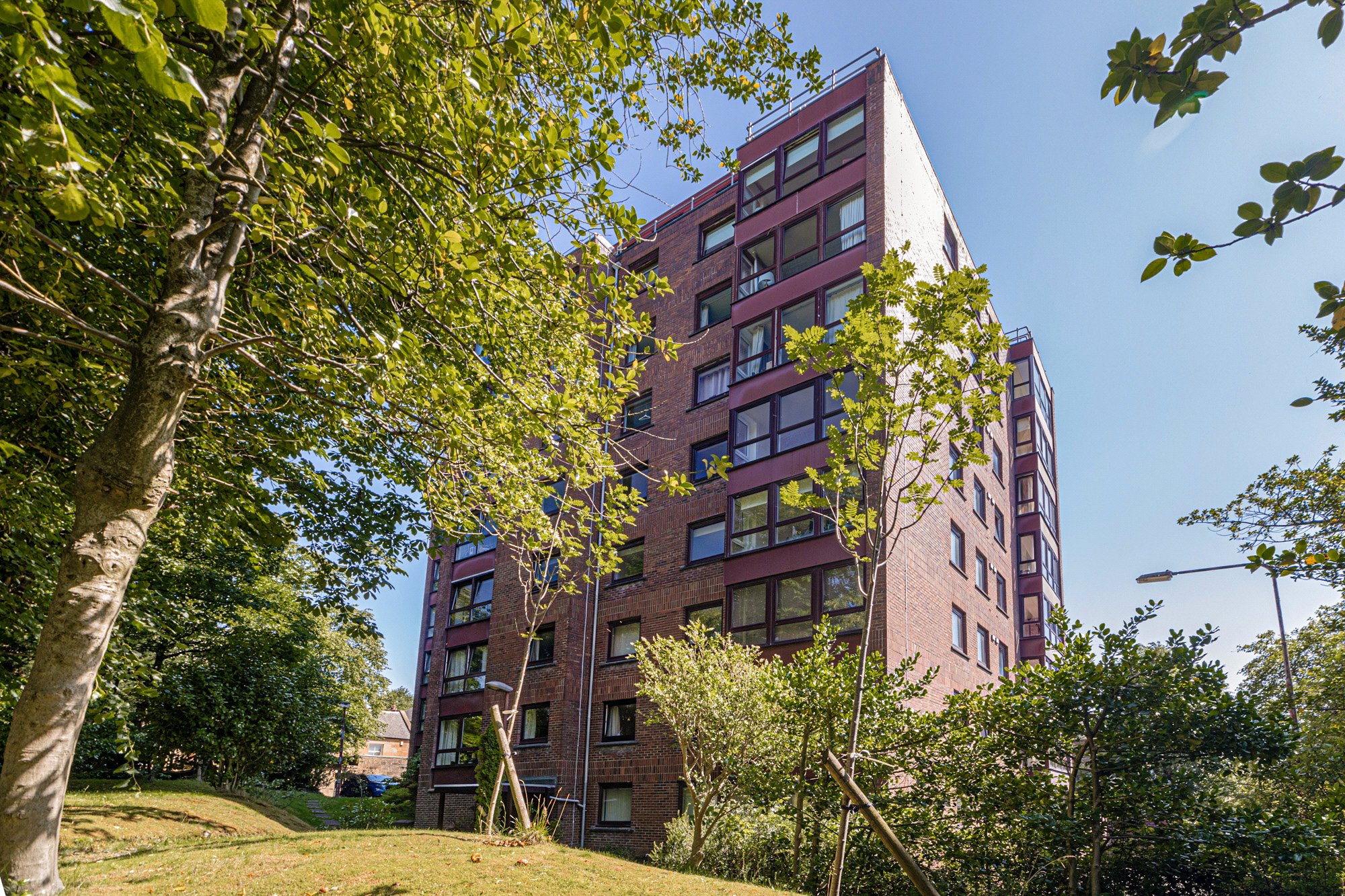 Balgray Court is an eye catching, mid-rise apartment block which is externally presented in red facing brick and set within a beautiful broad plot on the corner of Cleveden Drive & Cleveden Road in the Kelvinside district of the West End. The development is set amidst leafy garden grounds that are filled with beautiful mature trees which are bursting with foliage at this time of year, creating privacy and an air of tranquility around the entrance. As such, you could be forgiven for quickly forgetting that you are only 1 mile from Byres Road and therefore well-placed for taking full advantage of everything that the West End has to offer. As such this particularly interesting Penthouse apartment is certain to appeal to a broad spectrum of buyers. For commuters or anyone with a car that they wish to tuck away securely, the apartment for sale has a secure parking space within the resident’s garage – numbered 43.