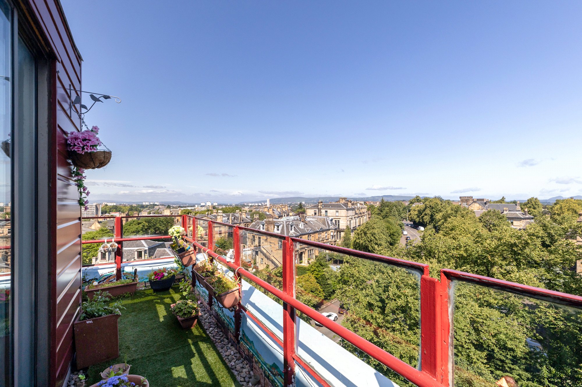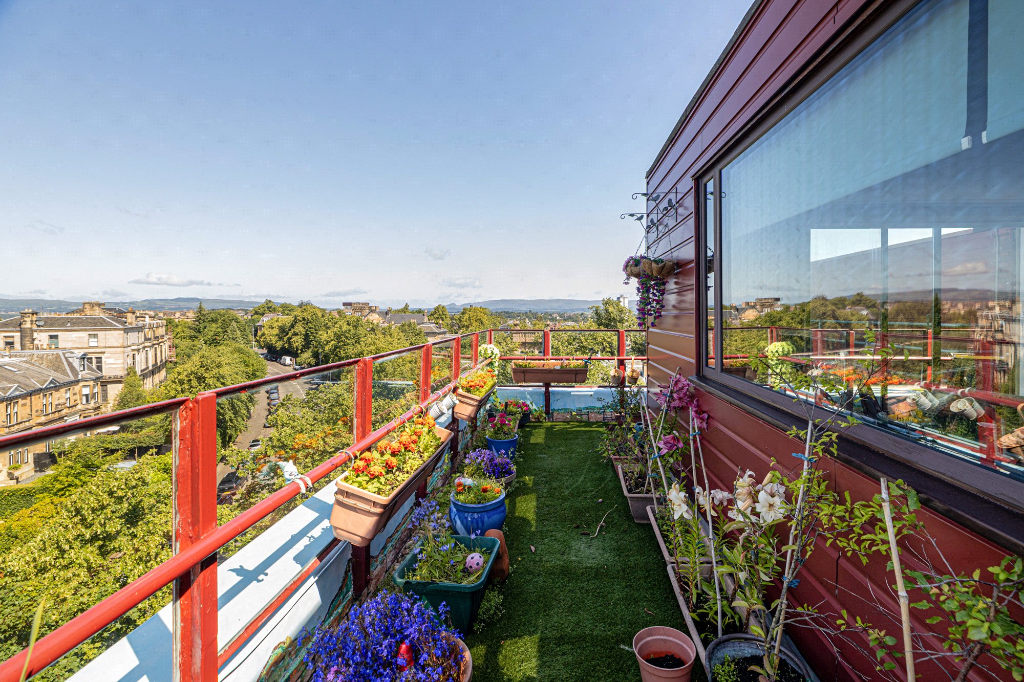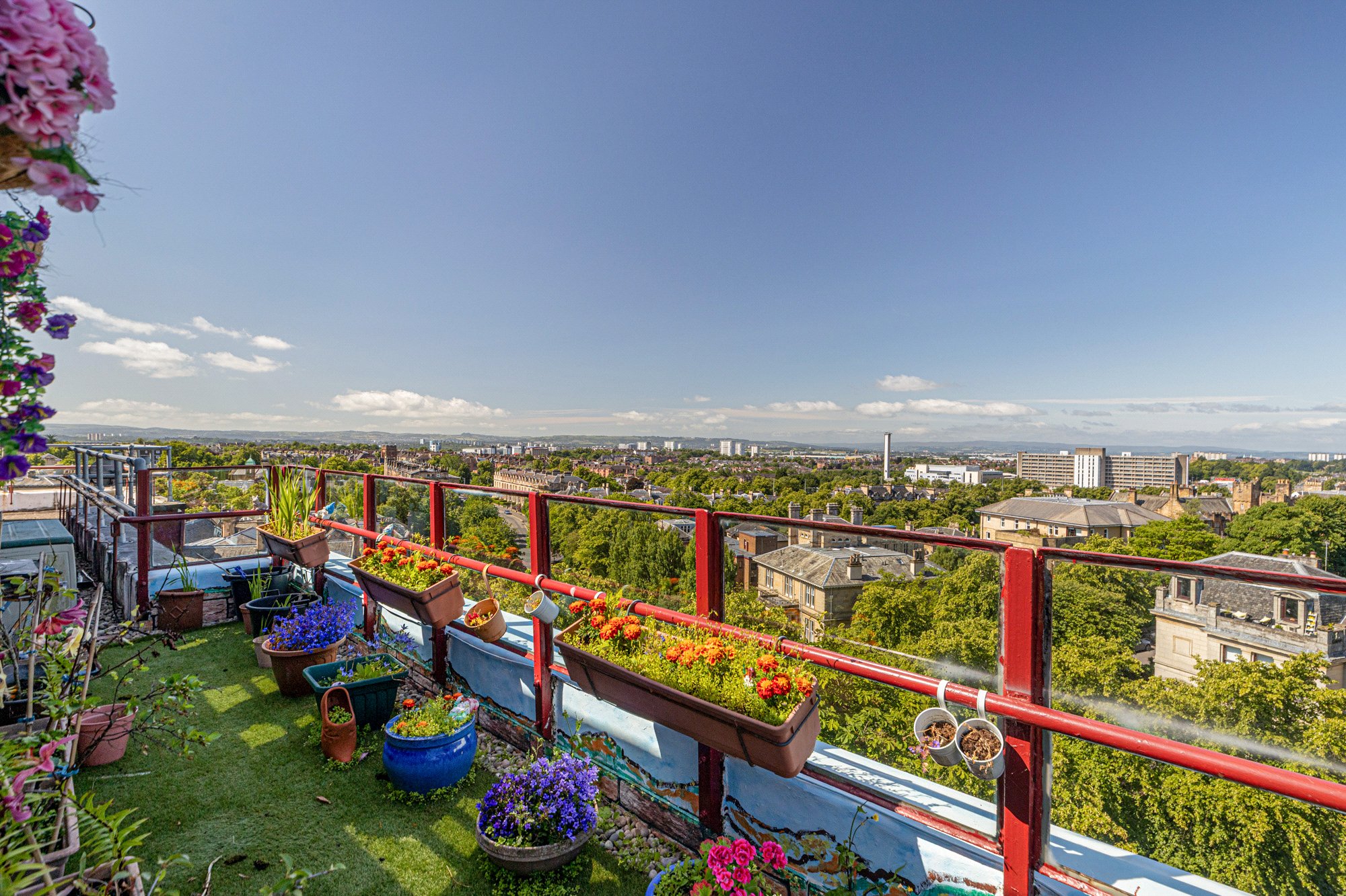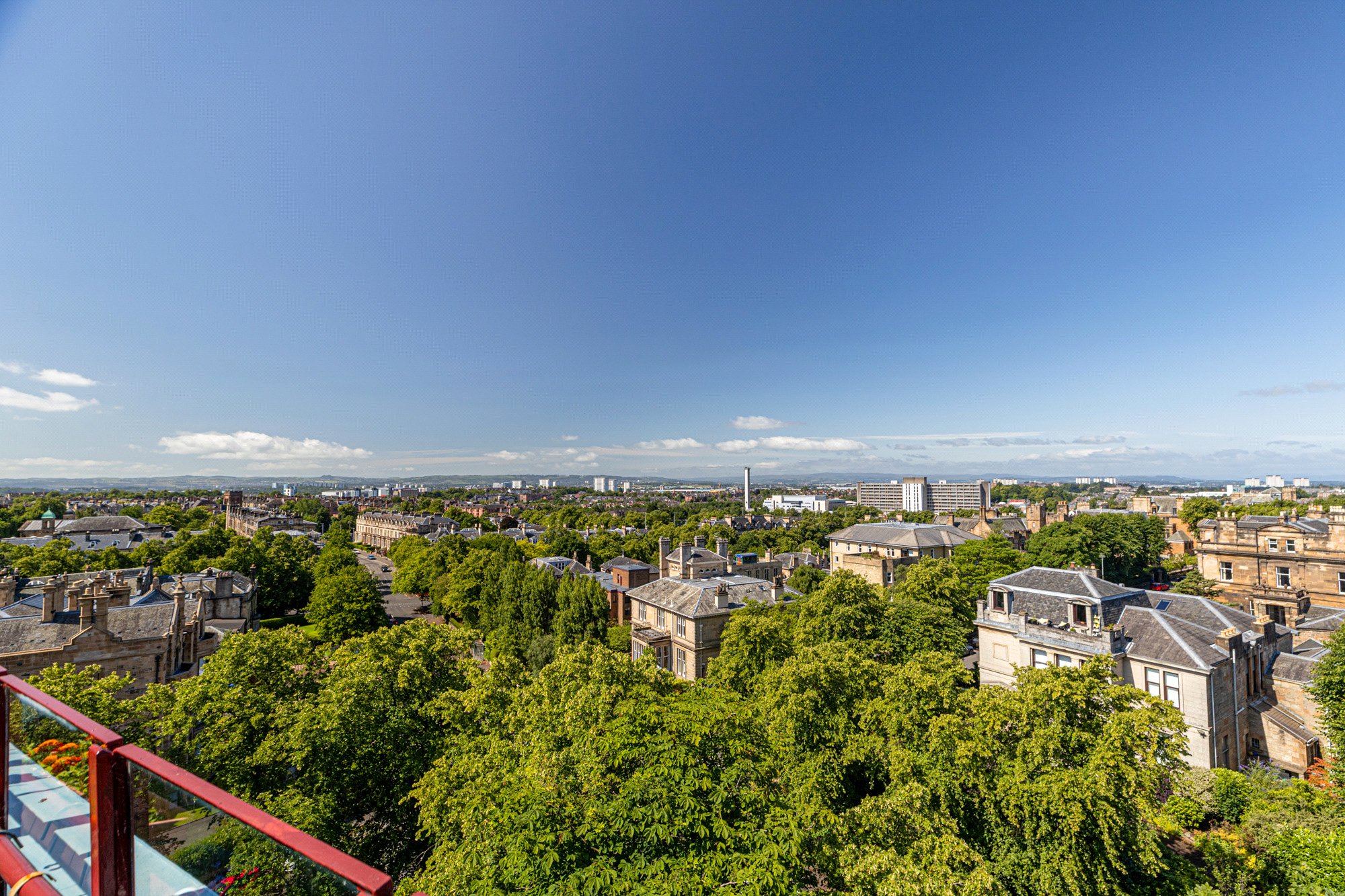 - Exceptional wraparound South-West facing terrace with panoramic views — arguably the best in Glasgow’s West End