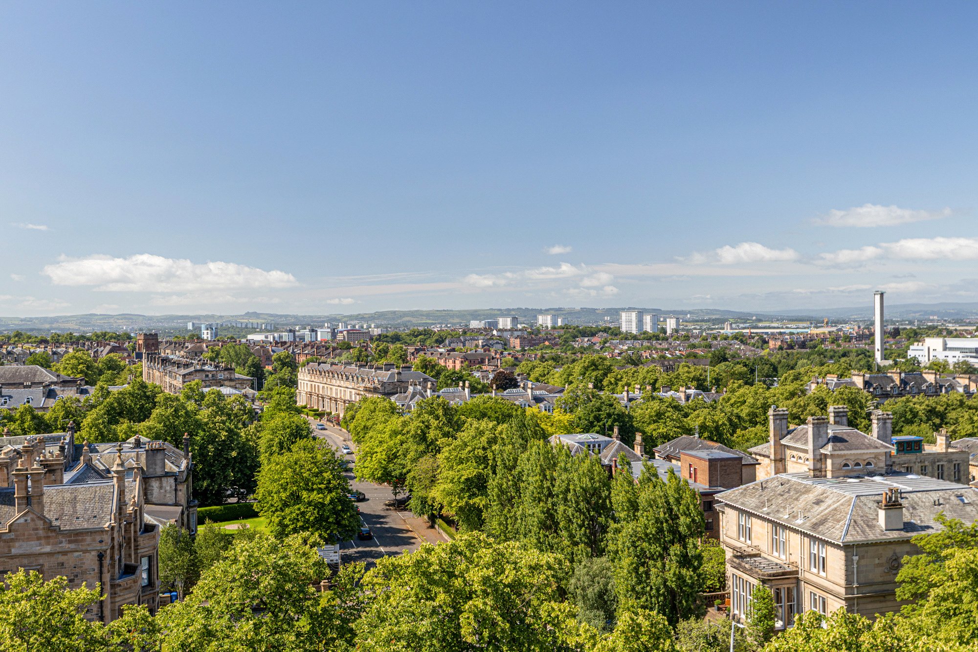 As mentioned the property benefits from a completely unique position and orientation to the South West. As a result of the lofty 9th floor position within a building that lies in an elevated plot, the home for sale stands at quite a height, well above the rooftops of the surrounding traditional homes and as such we are of the opinion that this property has the best, most open view of any residential home in the West End of Glasgow. If you have any doubt about the accuracy of this claim – you must go and see for yourself.
