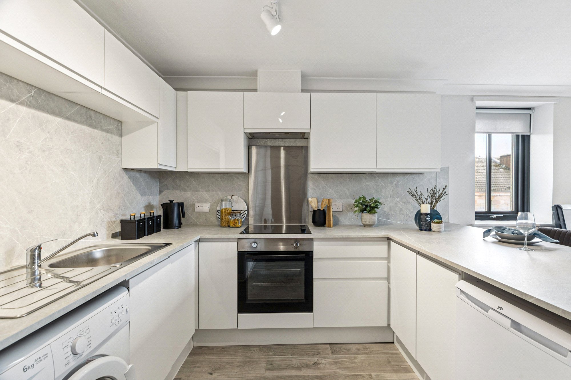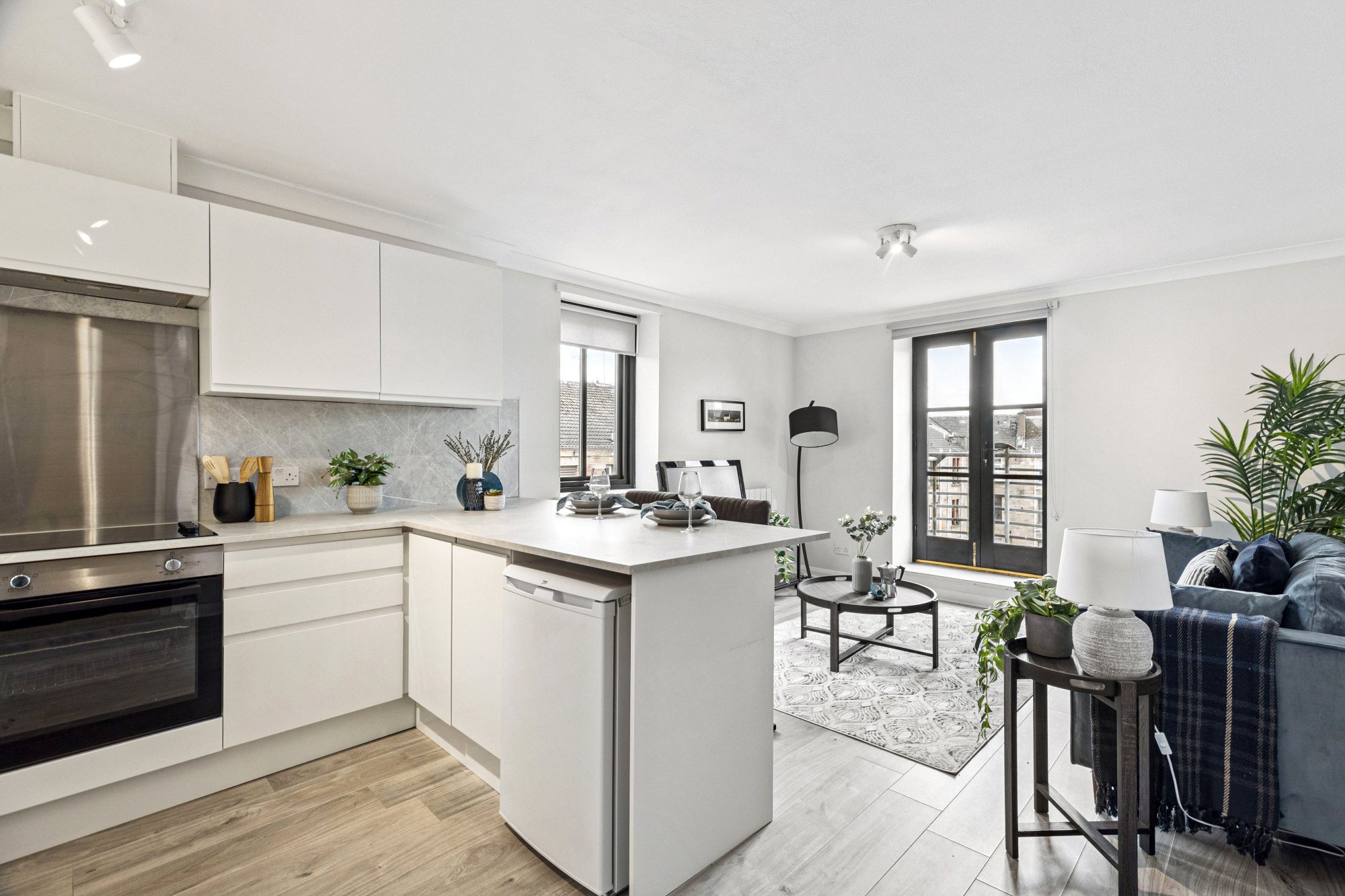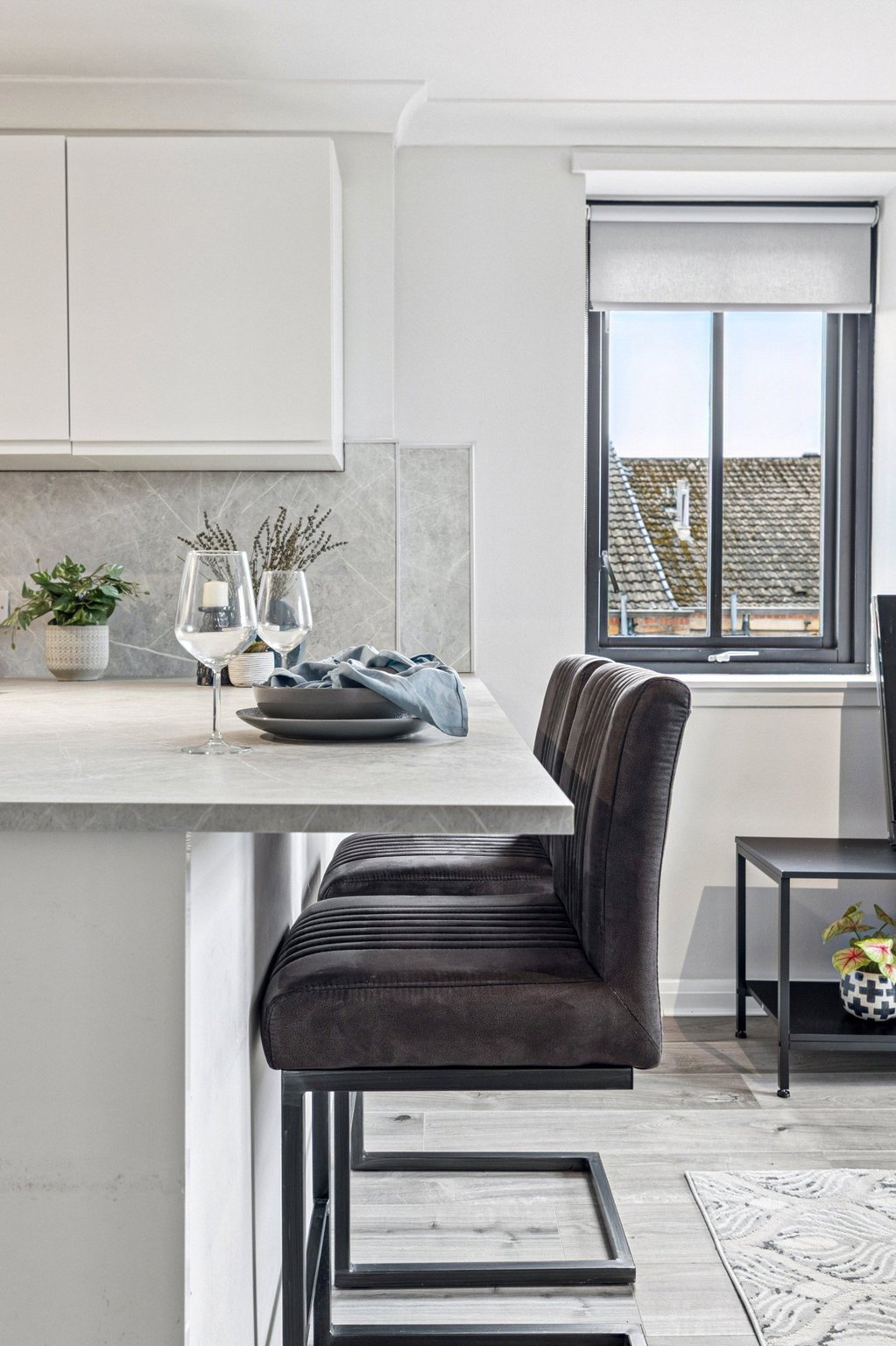Positioned within the popular Norval Court development in the heart of Partick, this immaculately refurbished one-bedroom flat offers stylish living with a bright double aspect lounge, and a peaceful west facing Juliet balcony. The apartment has been newly refurbished throughout, blending modern design with practicality and a well-proportioned layout.