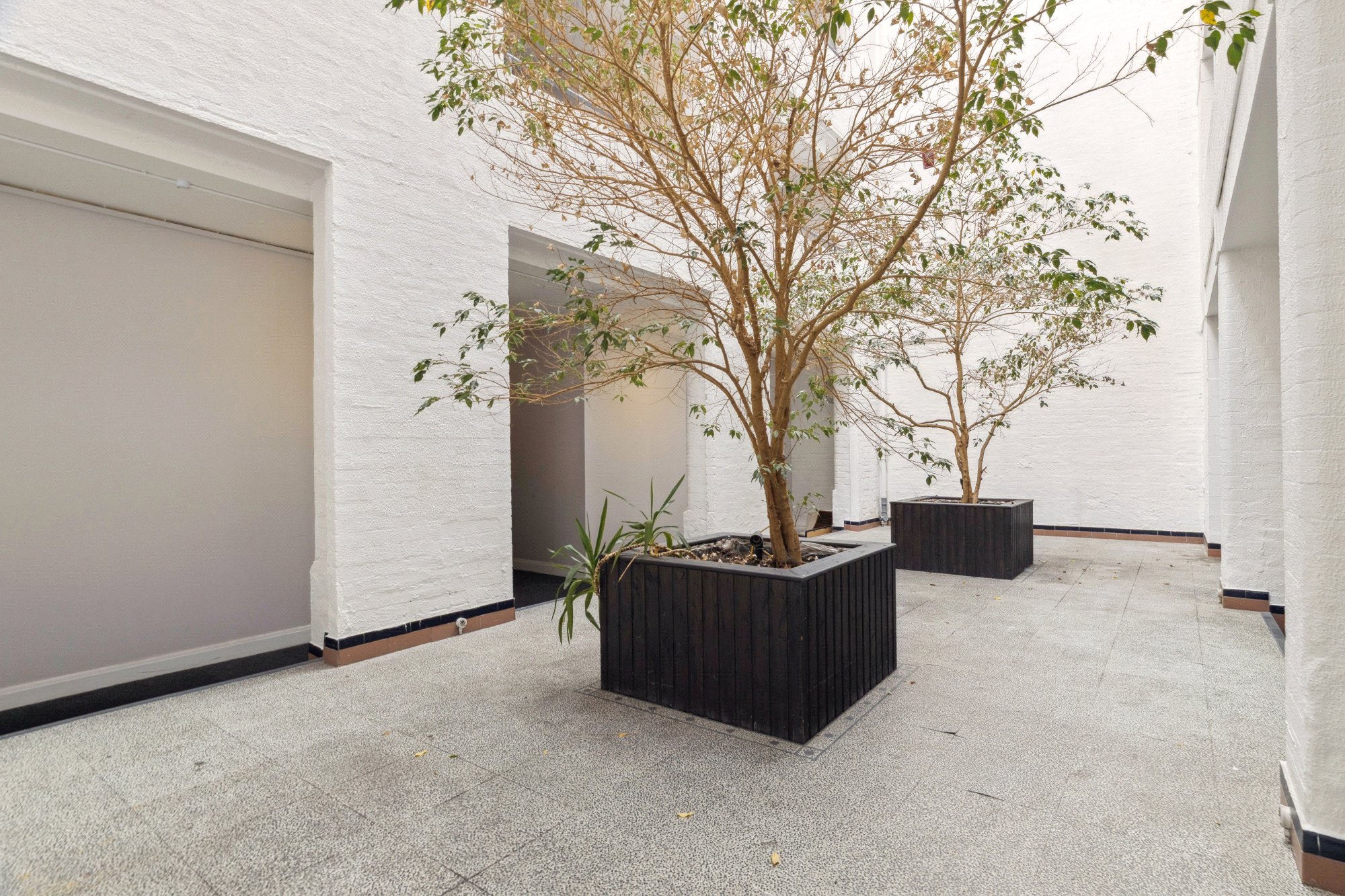 The living space is open plan to a new contemporary kitchen and enjoys plenty of light throughout the day due to the double aspect outlook to the South and West. The kitchen is nicely finished with white gloss cabinetry, grey countertops, metallic splashback, and a breakfast bar ideal for casual dining or entertaining. French doors also give access to a charming private Juliet balcony that brightens up the space.