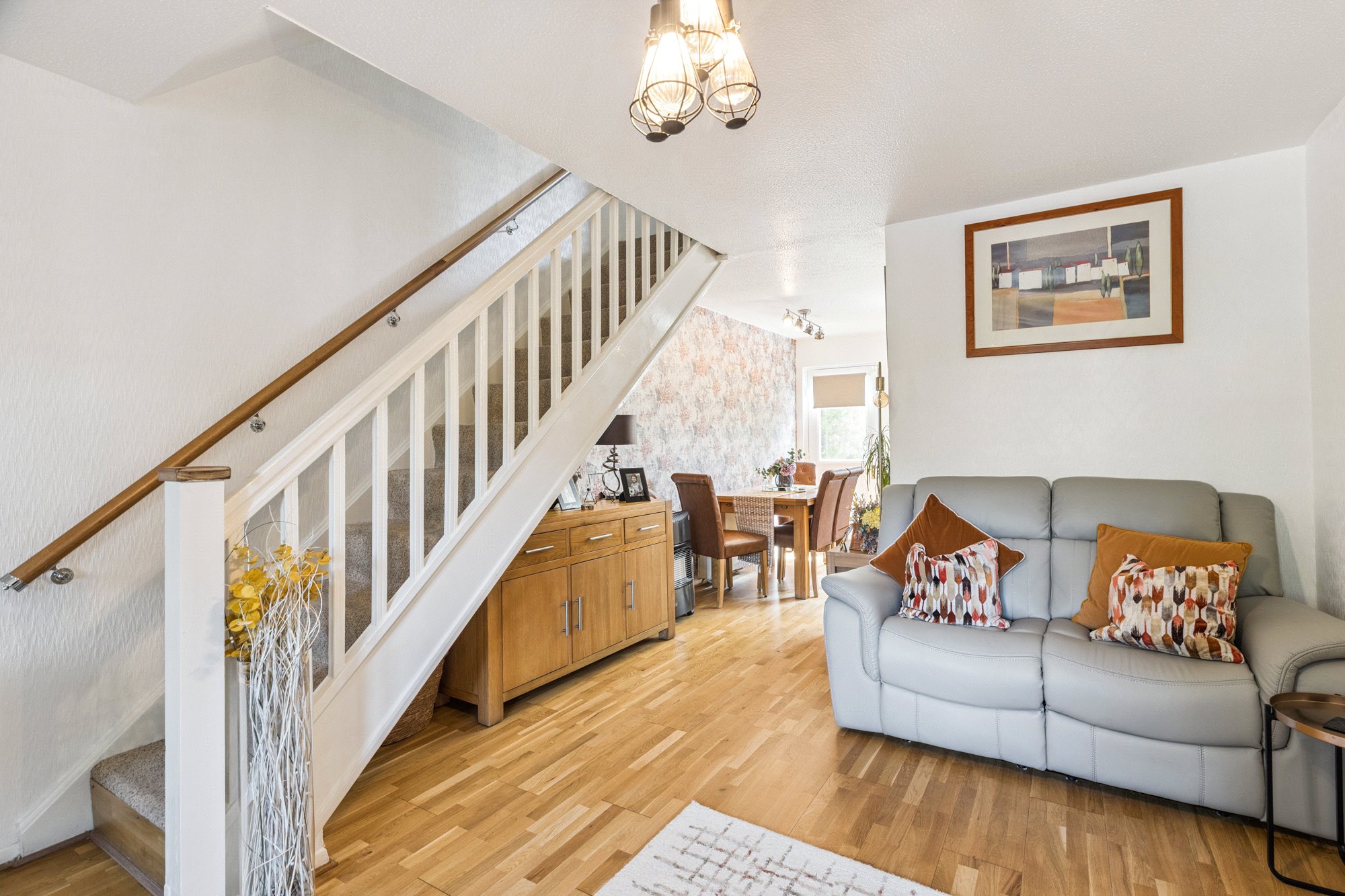 The accommodation includes a bright and spacious lounge leading through to a charming dining kitchen with direct access to the rear garden. Upstairs, the home offers two well-proportioned bedrooms, both with built-in storage, and a three-piece bathroom. Externally the property benefits from a delightful, fully enclosed rear garden and ample on street parking
