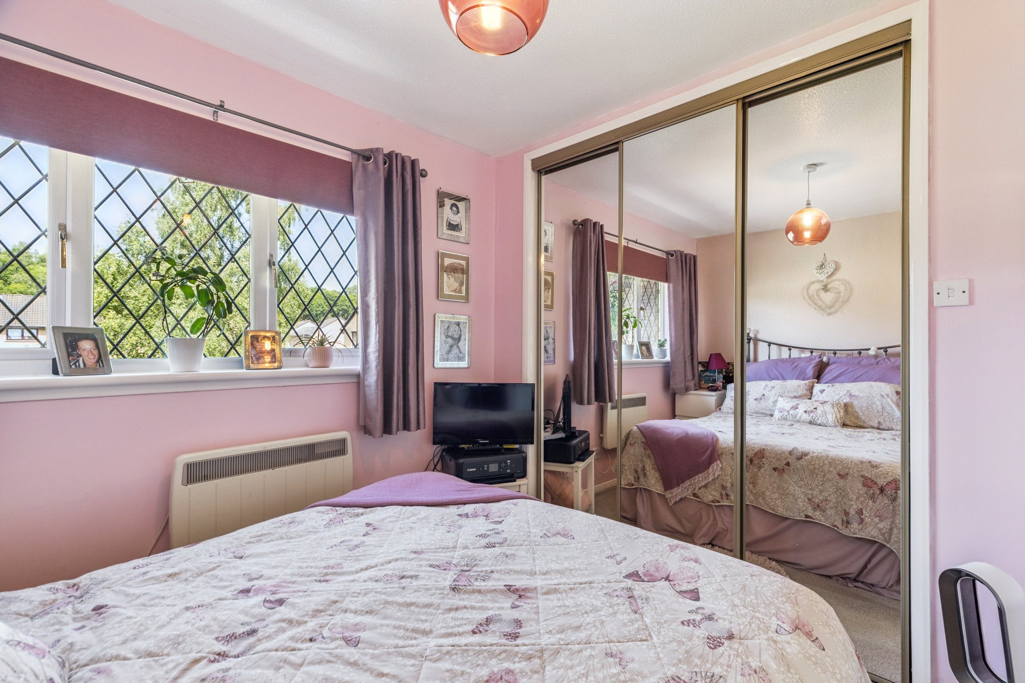 - Bedroom two with three section window to the rear and fitted mirrored wardrobes