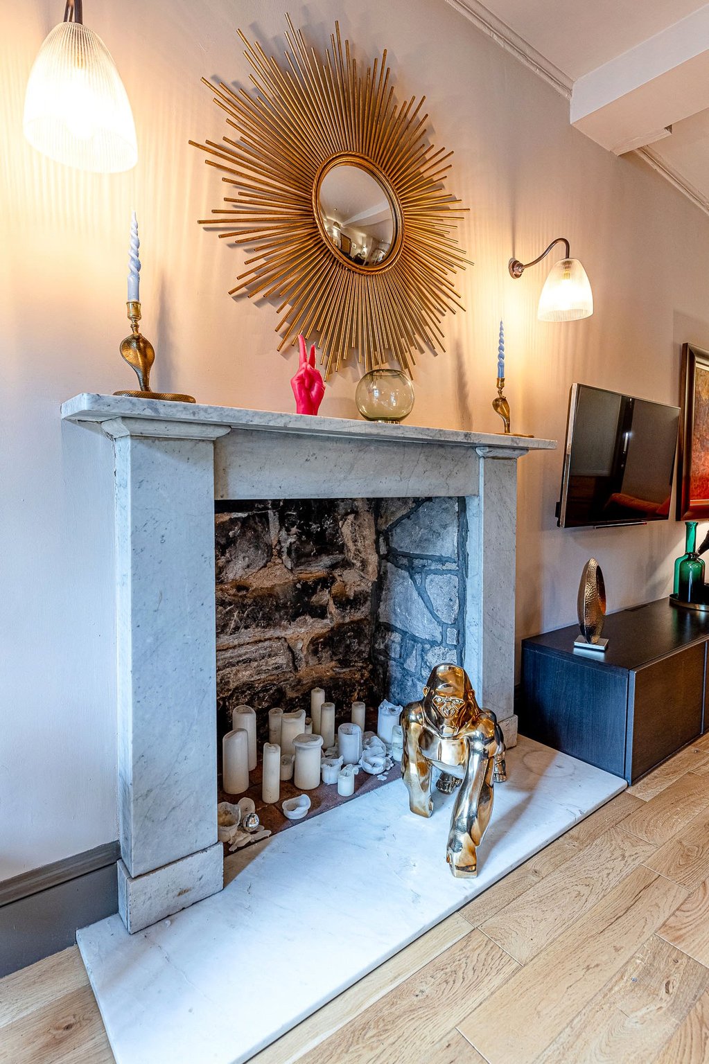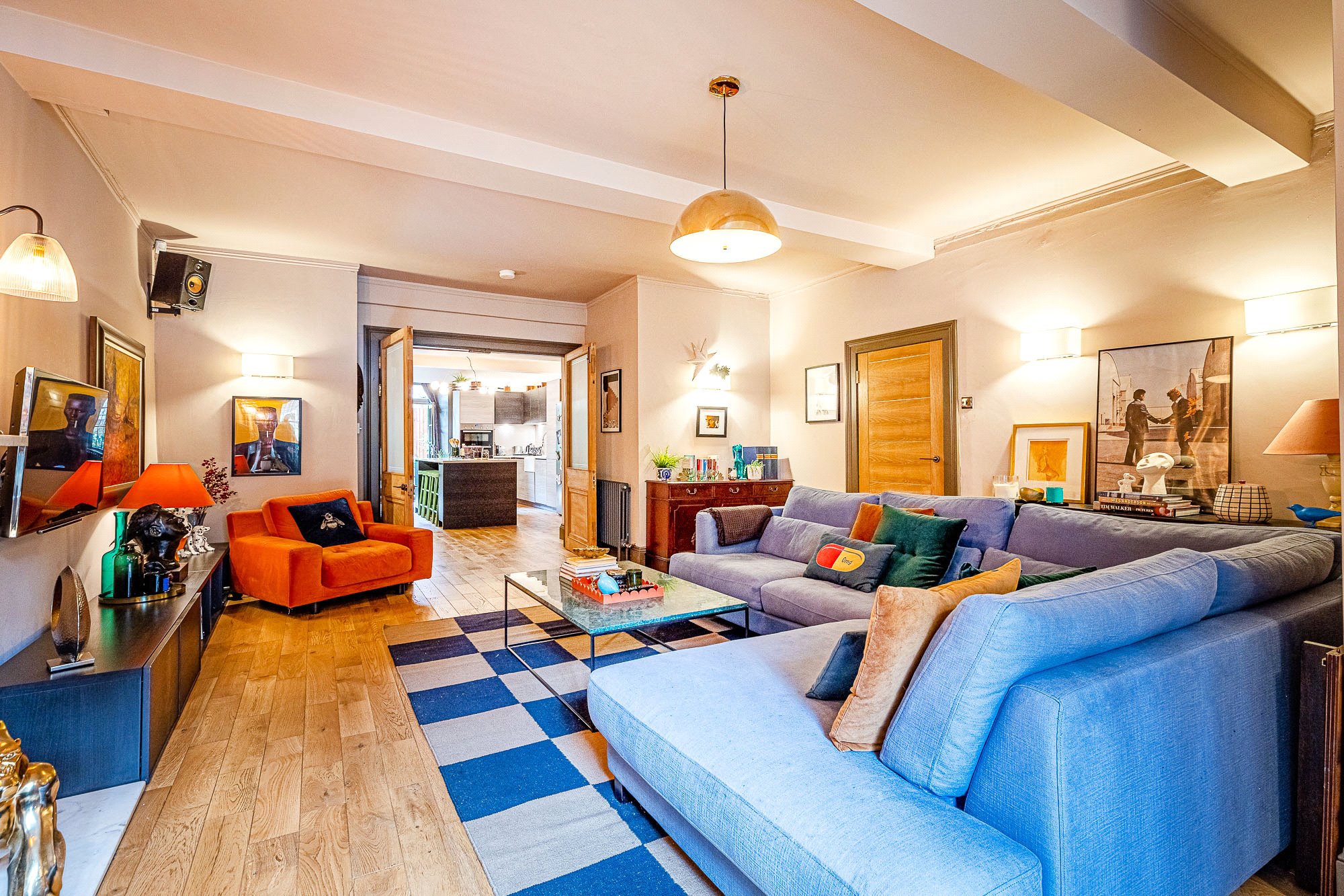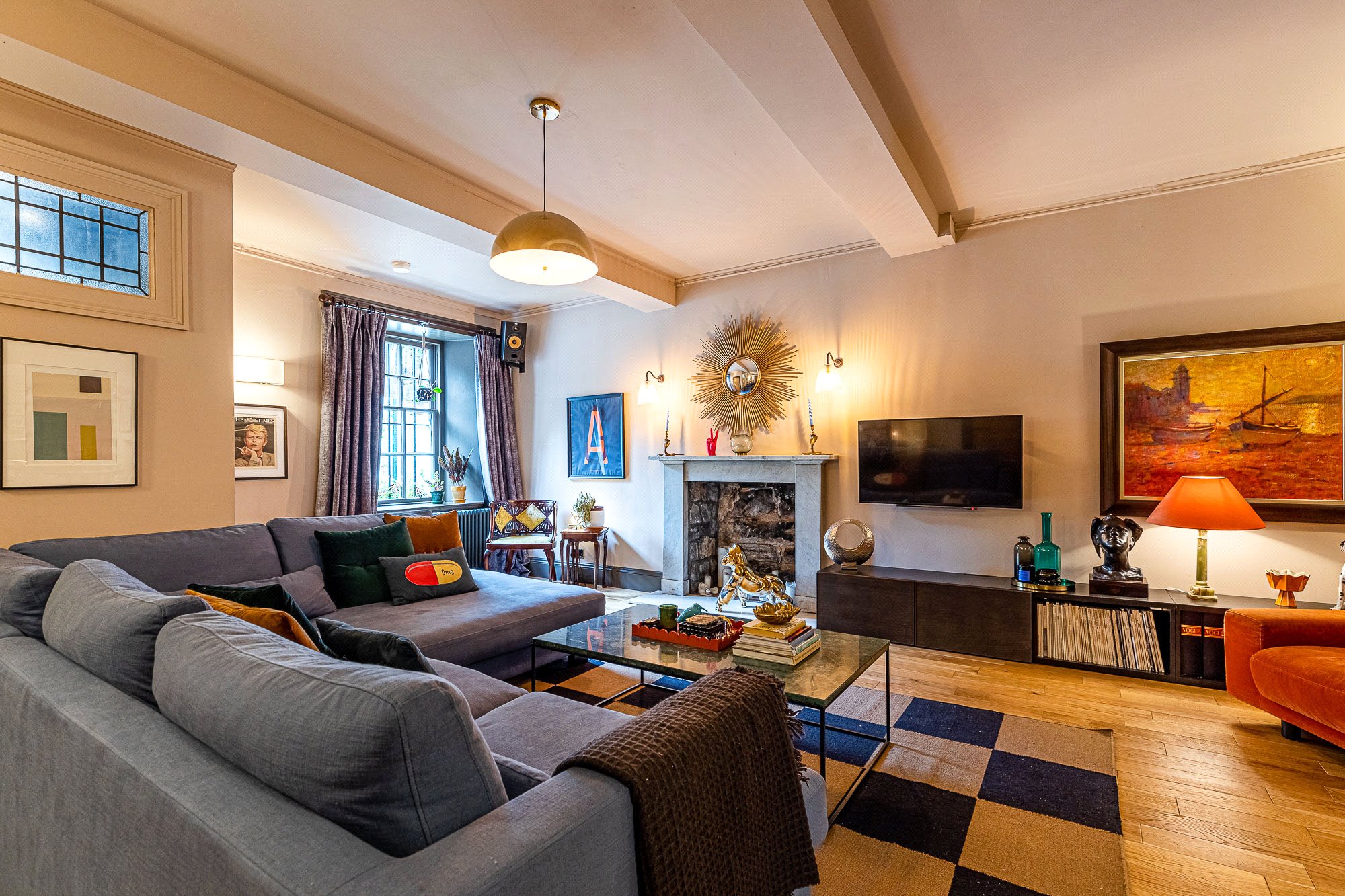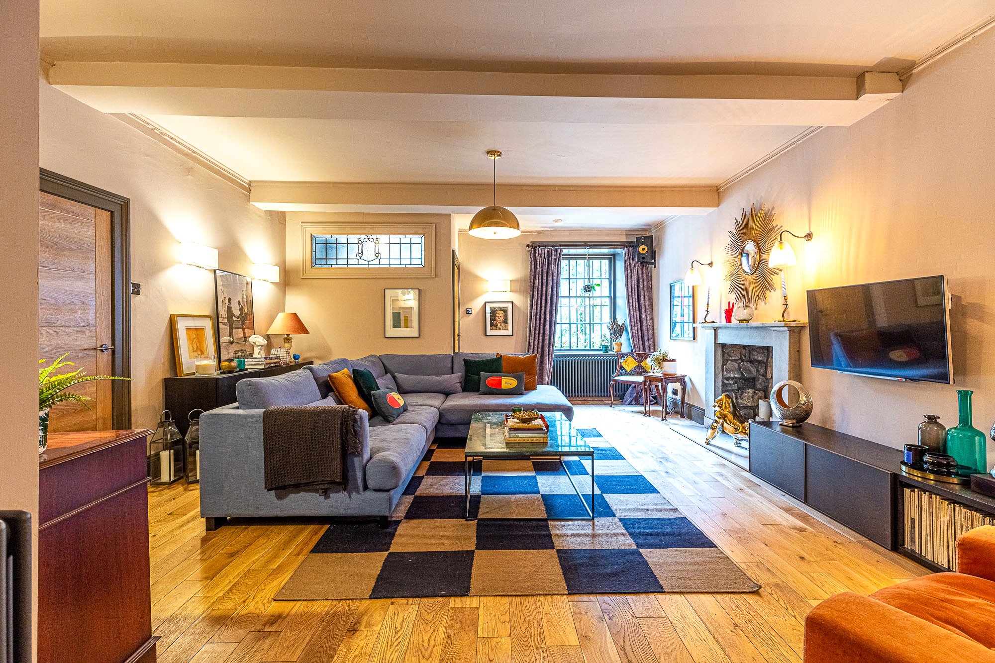 The property was cleverly re-configured in 2017/2018 and the result is an incredibly stylish apartment with rich decoration, wooden floors, and enormous character.