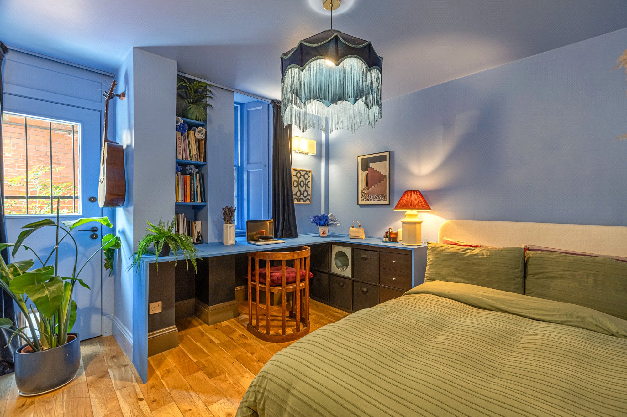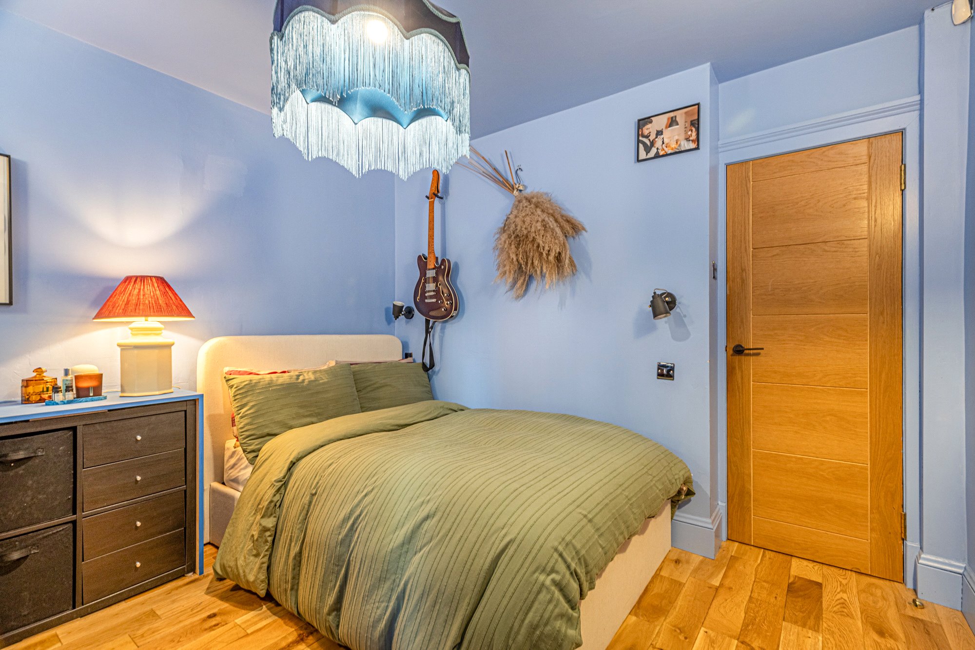- Bedroom two with window to rear and glazed door. Wooden floor.
