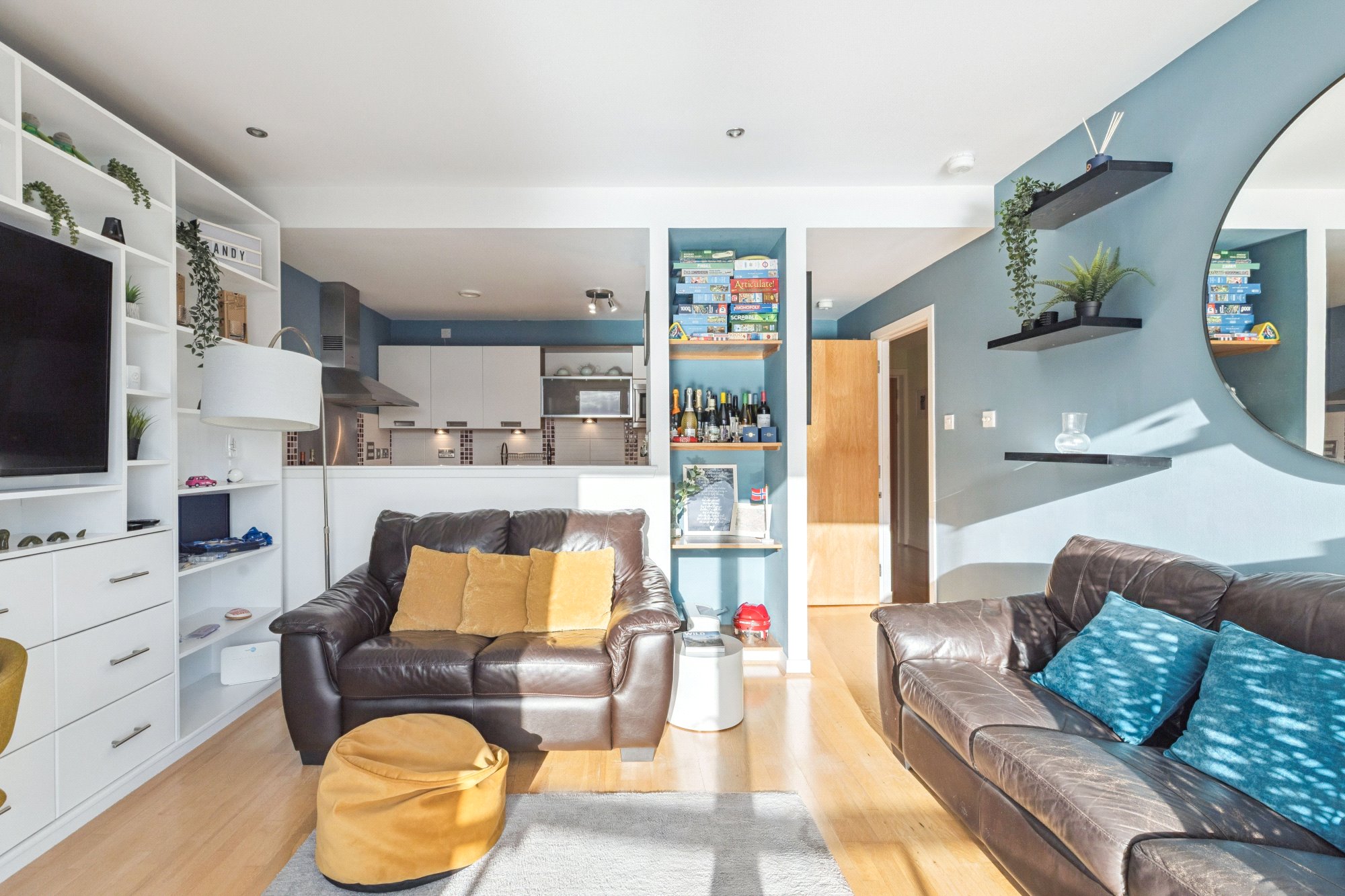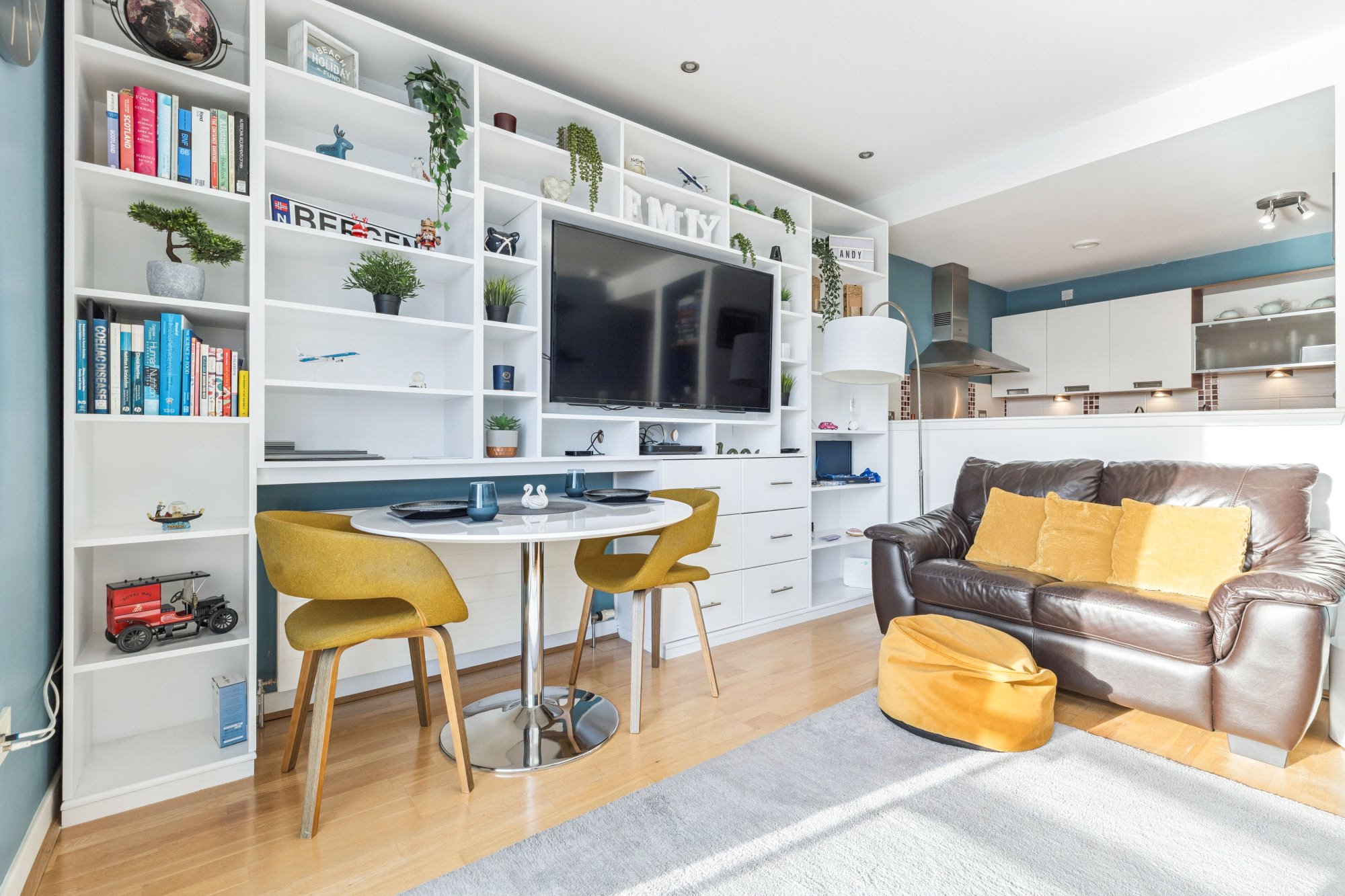 Particular highlights include a superb open-plan lounge/dining room with direct access to a private balcony, a well-appointed fitted kitchen, a spacious double bedroom, and a modern three-piece bathroom. The apartment also provides plentiful storage by way of a walk-in-wardrobe, in addition to fitted wardrobes located in the bedroom, a feature infrequently found in modern apartments and something that would undoubtedly appeal to discerning buyers. Located within the open planned kitchen/living area is a beautifully designed and built bespoke bookcase, recently installed to maximise storage as well as giving the property that unique feel.