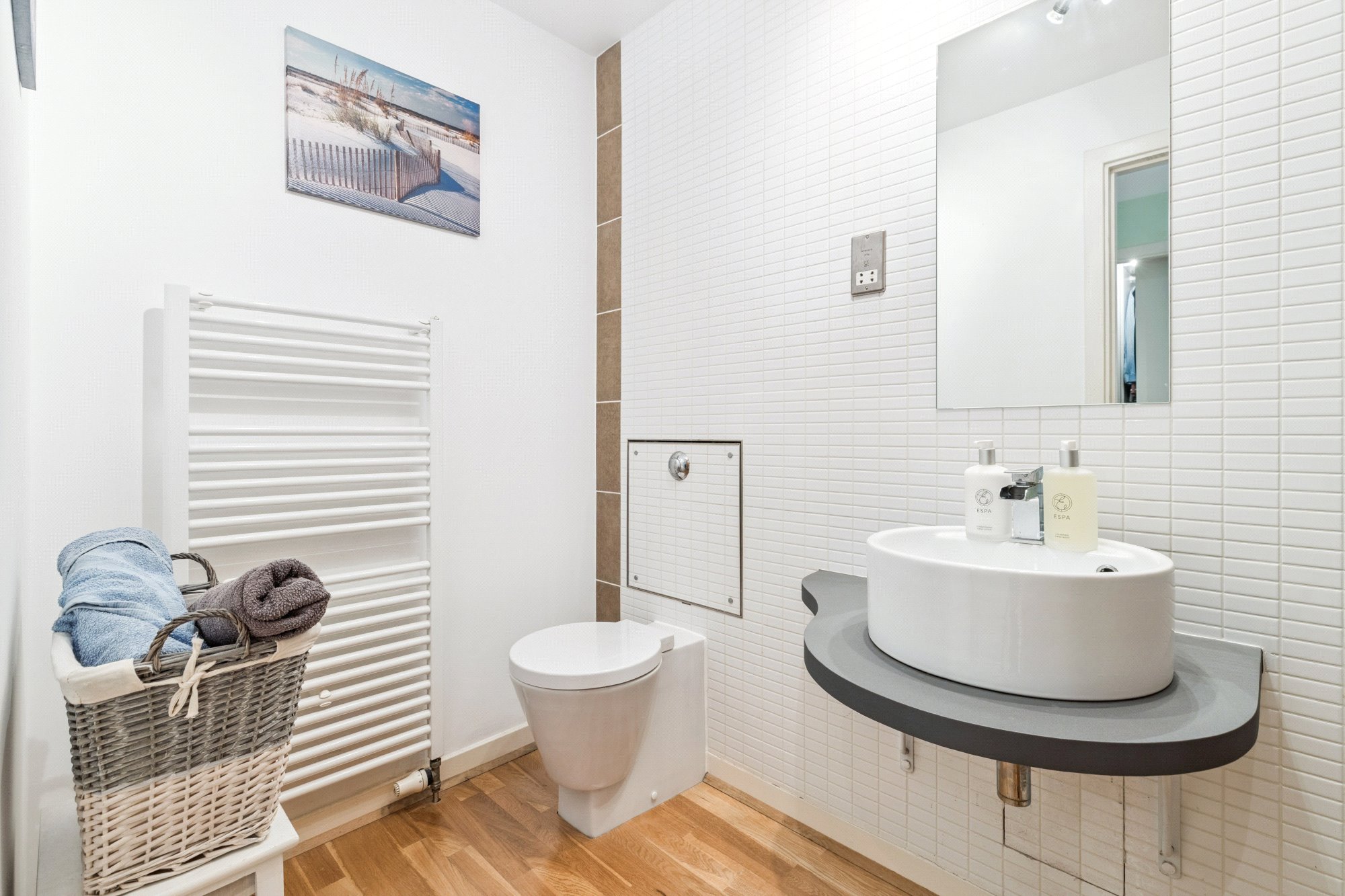 - Three-piece bathroom.