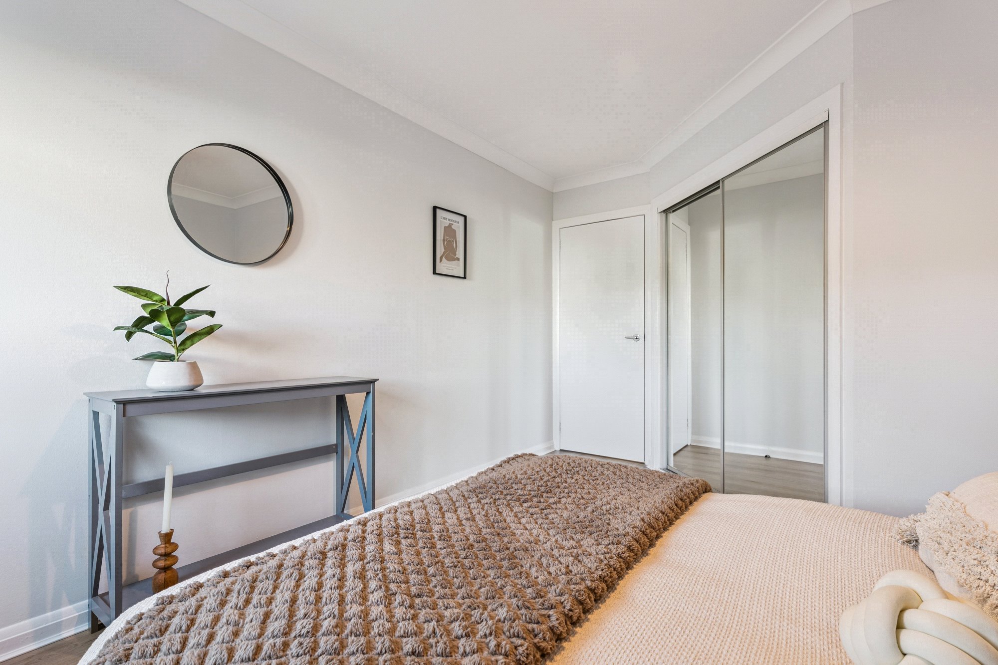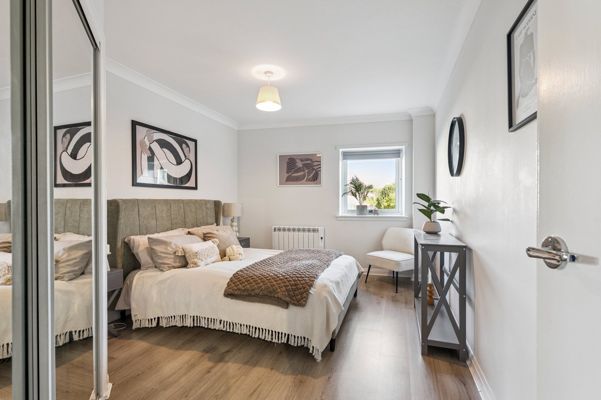 - Double bedroom with side-facing window and fitted mirrored wardrobe.