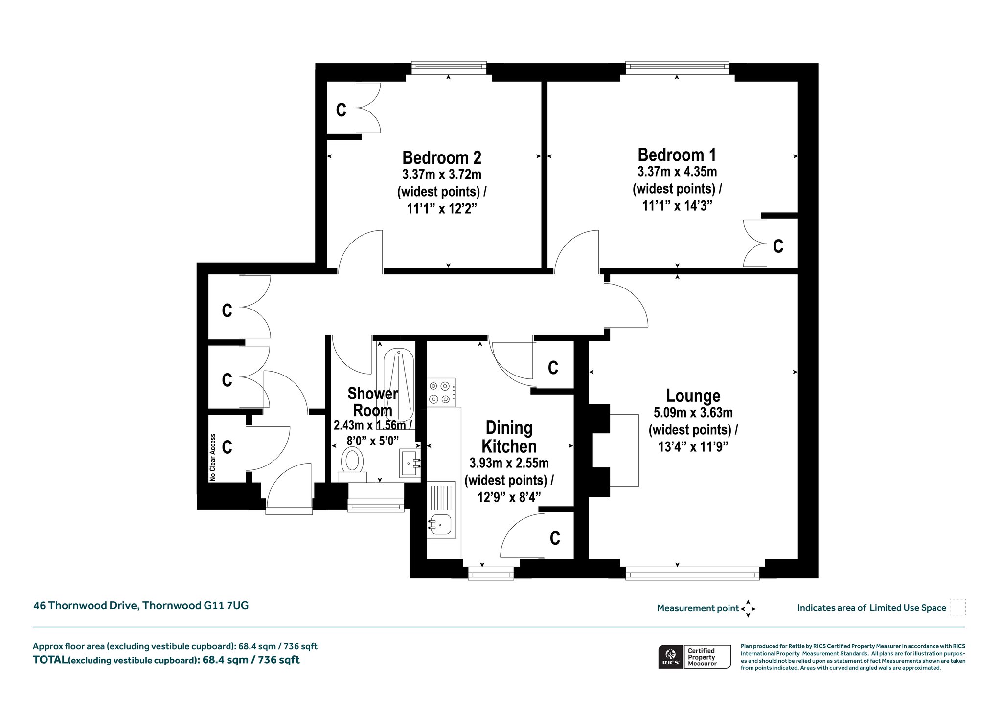 Internally, the property provides a generous and well-laid-out interior, benefiting from excellent built-in storage in the form of several cupboards. The accommodation extends to: welcoming entrance hallway, bright front-facing living room, breakfasting kitchen with space for casual dining, two roomy double bedrooms, and a well-sized shower room. The private front garden provides valuable outdoor space for relaxation or planting — a rare find in the West End at this price point.