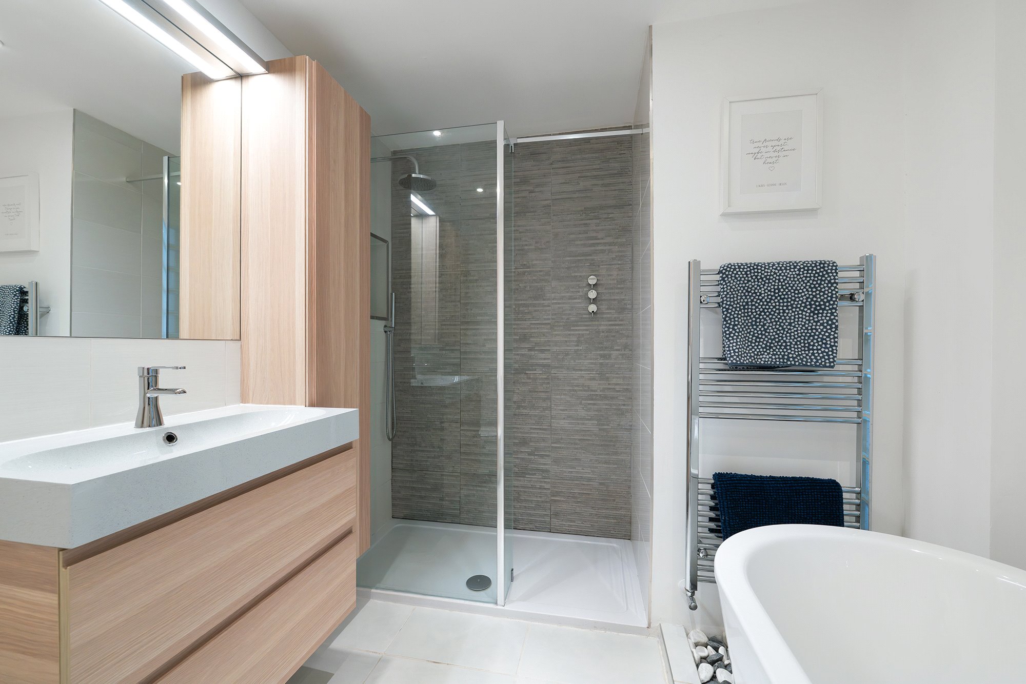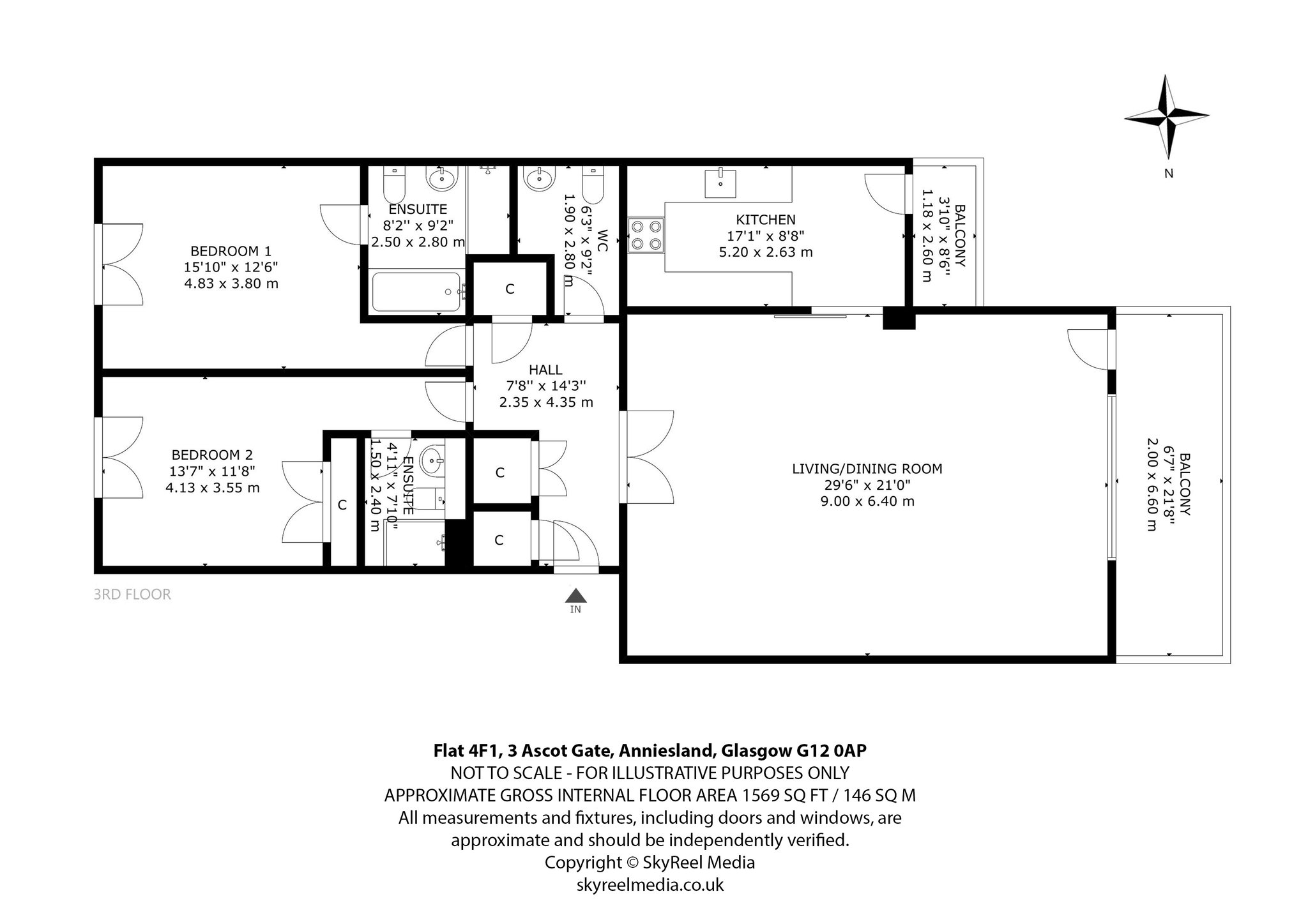 Flat 4F1 is situated on the fourth floor of this attractive development and shares the landing with just one other apartment. Internally the property has been decorated in bright, neutral tones and as such the accommodation is a bright, blank canvas which is ready for an immediate move-in. As such, viewers are urged to visit the property in person to truly appreciate the overall size, specification and enviable position that the property enjoys. Each of the apartments are of exceptionally good proportions, especially the living room which leads out onto an impressive private balcony that faces West. The kitchen is also of good proportions, benefits from it's own balcony and can be made semi-open plan to the living room, thanks to a full-height and double width sliding door. The kitchen features numerous wall and base mounted storage units, integrated appliances and plenty of worktop space for avid cooks. Both bedrooms benefit from en-suite facilities, with the master having four-piece suite including stand-alone bath. The entrance hallway offers superb levels of purpose-built storage space including a large guest WC and three other handy storage spaces.