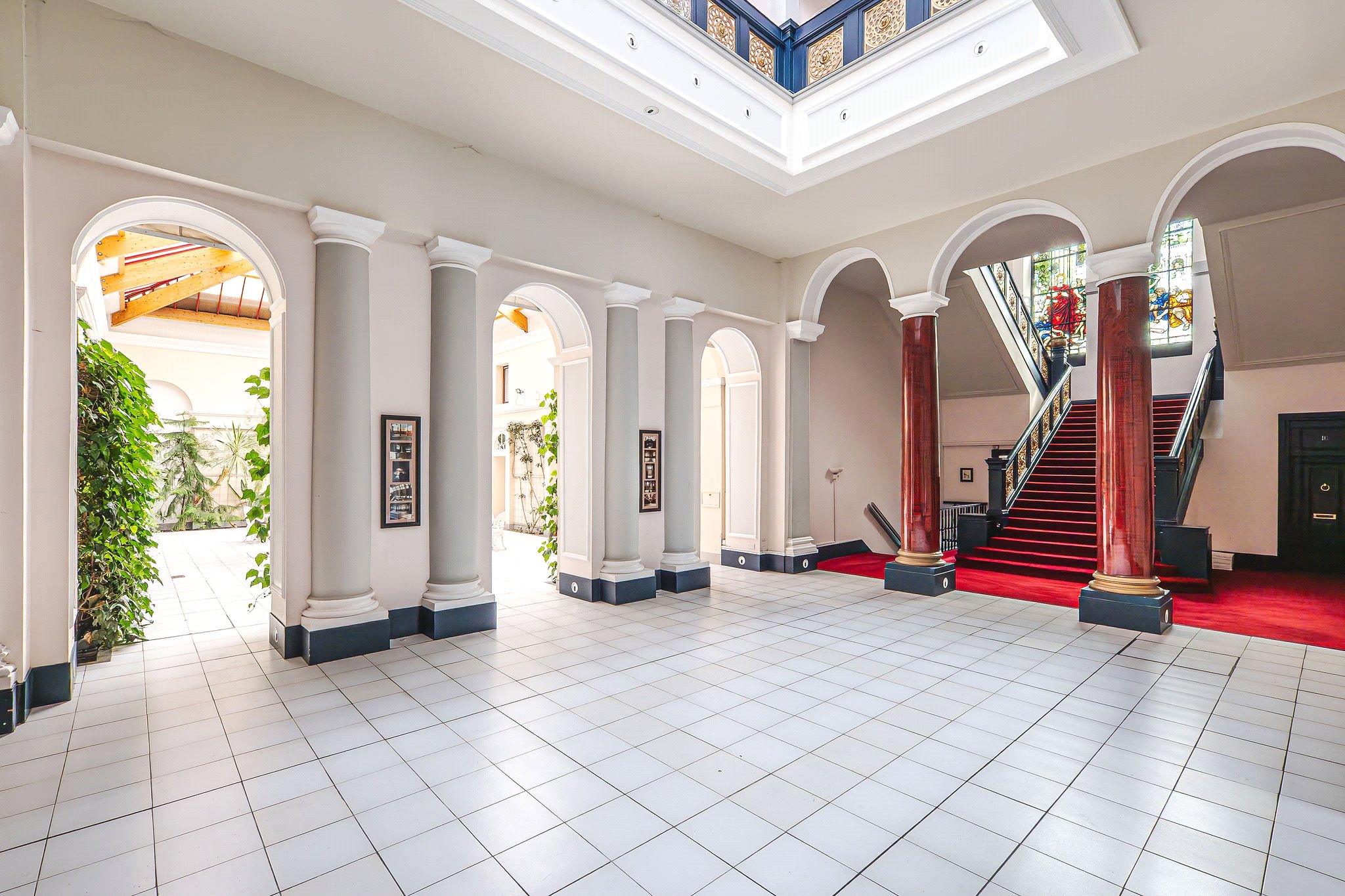 These apartments are arranged around the building's central atrium with water feature, which is a notable feature of the interior – best appreciated in person. The conversion preserved many of the building's original architectural elements, including its impressive columns, stained glass windows, and ornate cornices. The building is being maintained to a high standard by the appointed factor and as such, the development is instantly impressive when you arrive. As you walk through the main entrance area, passing through the leafy, almost botanical garden-like hallway, you could be forgiven for forgetting that you are actually in the centre of Glasgow.