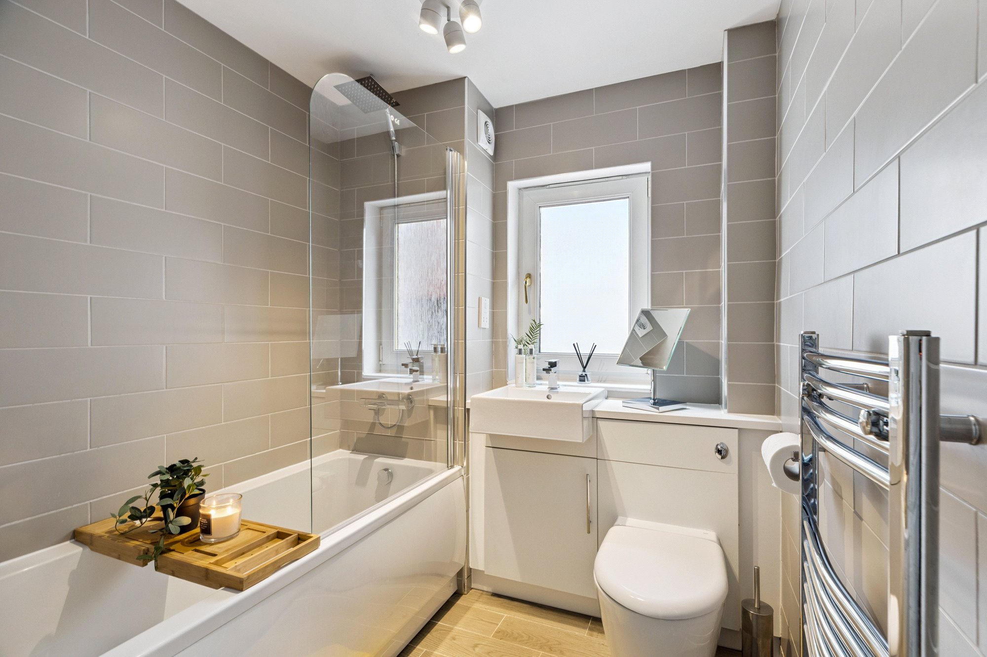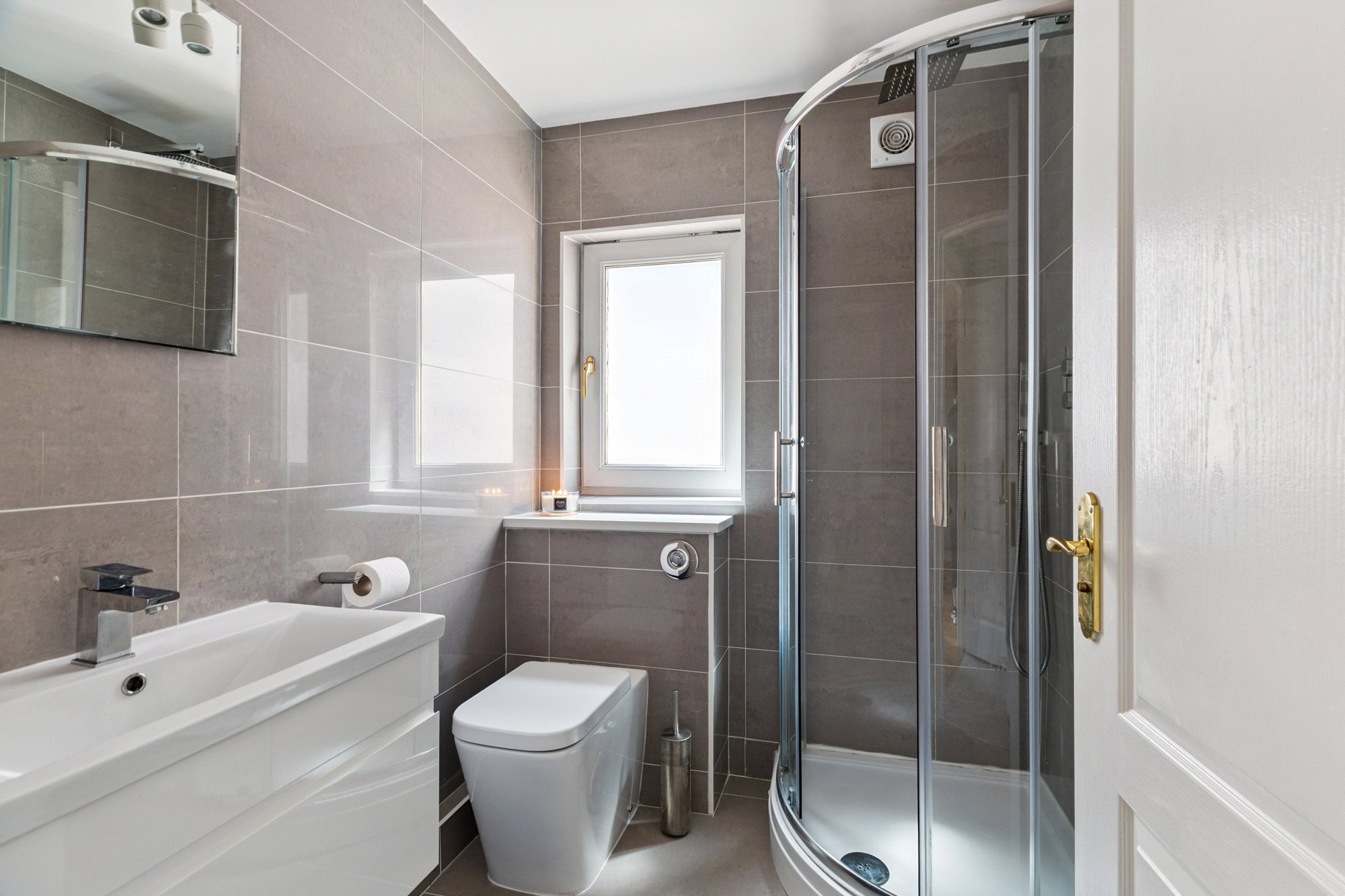 - Stylish en suite shower room comprising three-piece suite