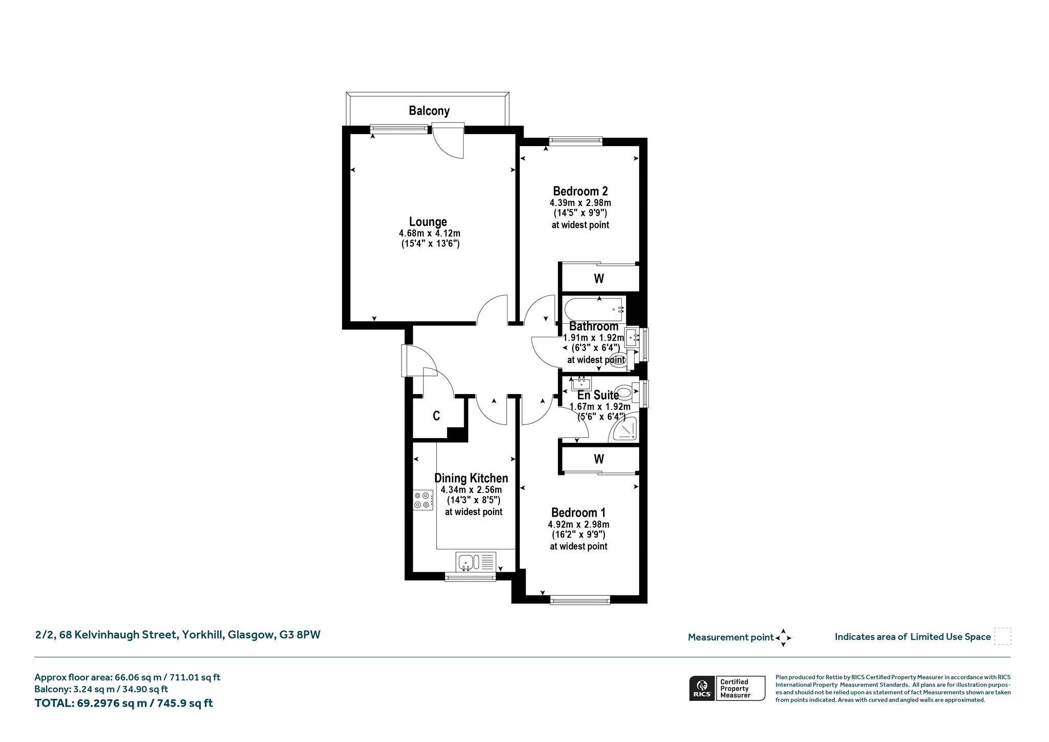 The internal accommodation is presented in walk in condition throughout, is generously proportioned and benefits from excellent natural light. Notable highlights include a superb living/dining room, a separate modern kitchen, two spacious double bedrooms, an impressive en suite shower room and a stylish three-piece bathroom. There is ample storage including fitted wardrobes in both bedrooms and useful storage off the reception hall. We would also highlight the rare feature of a private balcony accessed from the living/dining room together with the added bonus of off-street parking within the residents’ car park.