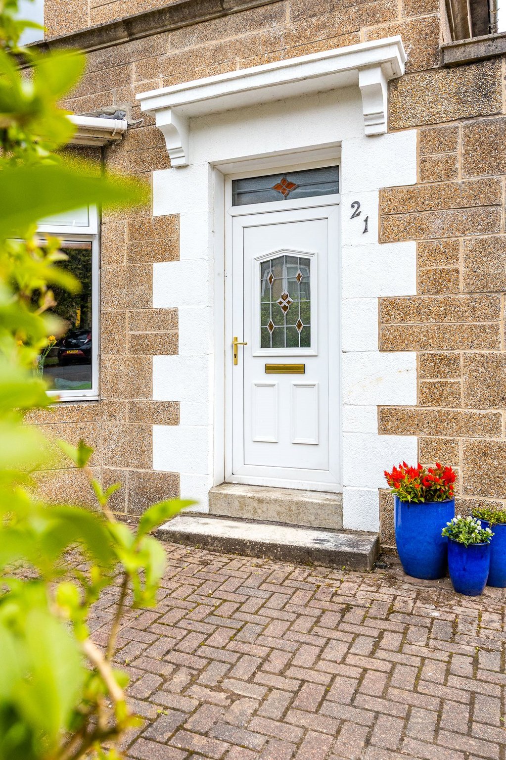 The home for sale benefits from a rare cul de sac position, within a quiet and attractive residential address which is particularly leafy and tranquil. The property for sale is a two storey semi detached villa with garden grounds to both front and rear, private driveway, detached garage and a superb, highly private family garden.