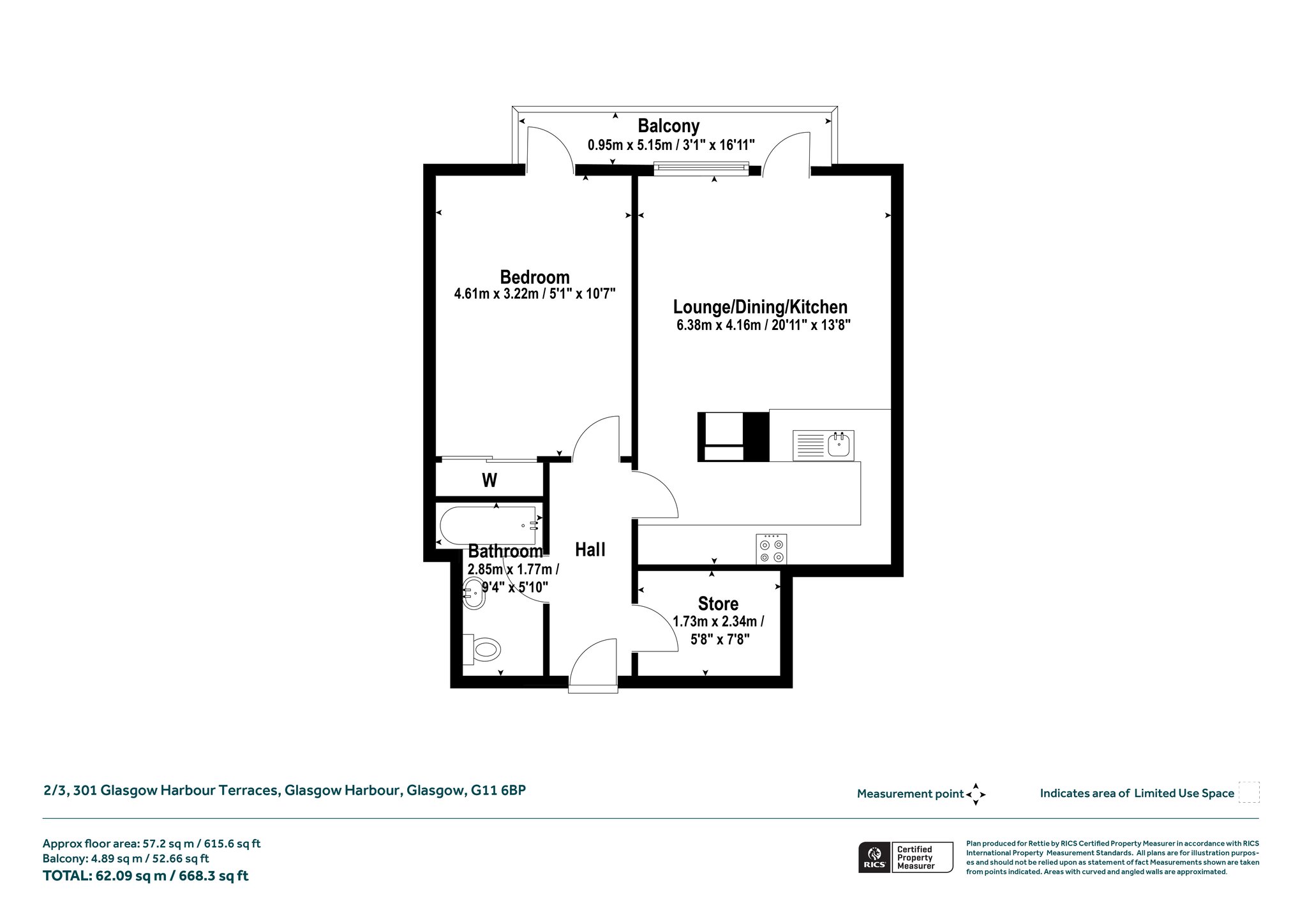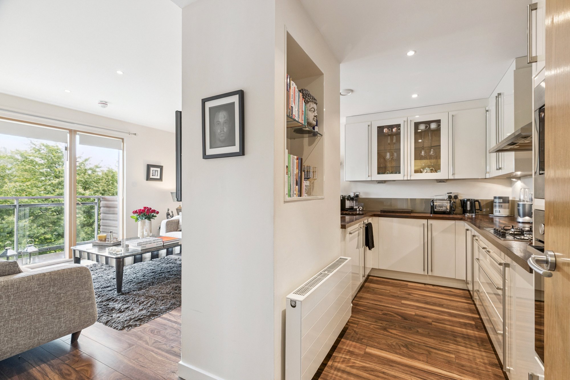 The internal accommodation is naturally bright, has a comfortable feel and is presented in walk in condition throughout. The interior includes a fabulous lounge/dining room, a semi open plan kitchen, a generous double bedroom and a three-piece bathroom off the reception hall. In addition, there is ample storage off the reception hall together with fitted wardrobes in the bedroom. We would also highlight the significant advantages of a private balcony accessed from the lounge and bedroom, an allocated parking space, lift access to each level, well maintained communal courtyard to the rear of the building and concierge service.