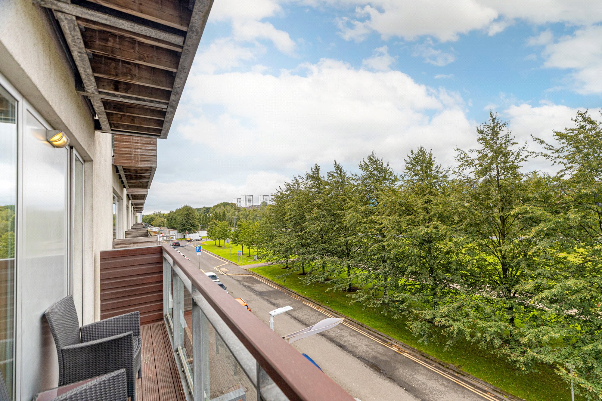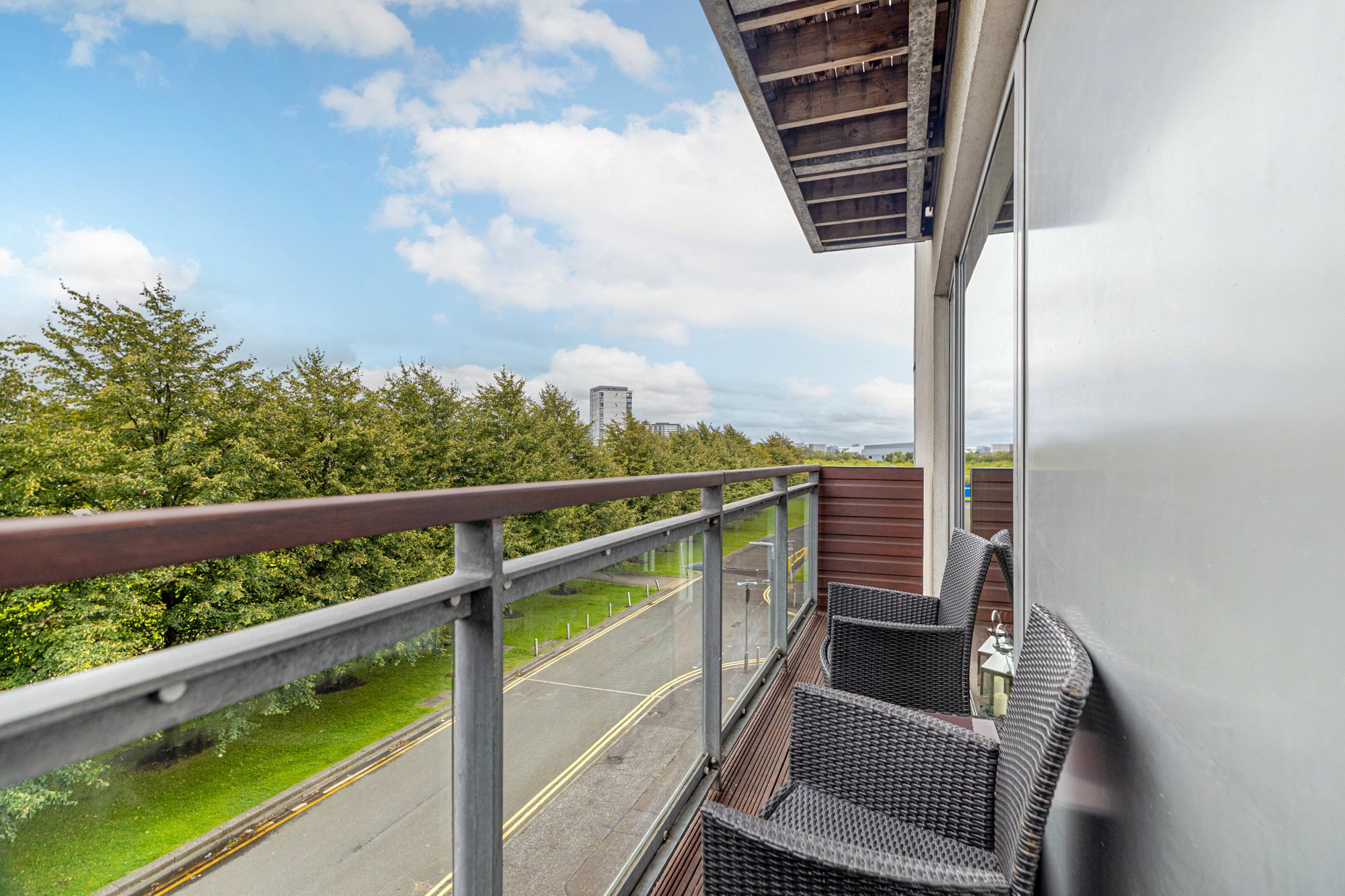 This particularly stylish and immaculately presented one bedroom second floor flat is contained within the landmark Glasgow Harbour development. This particular building was completed by Park Lane in 2006 and is the flagship building of the entire Harbour development. The property benefits from excellent natural light and enjoys exceptional views of The River Clyde and over towards The Transport Museum, The Tall Ship, SSEC, Glasgow’s West End and Glasgow City Centre.