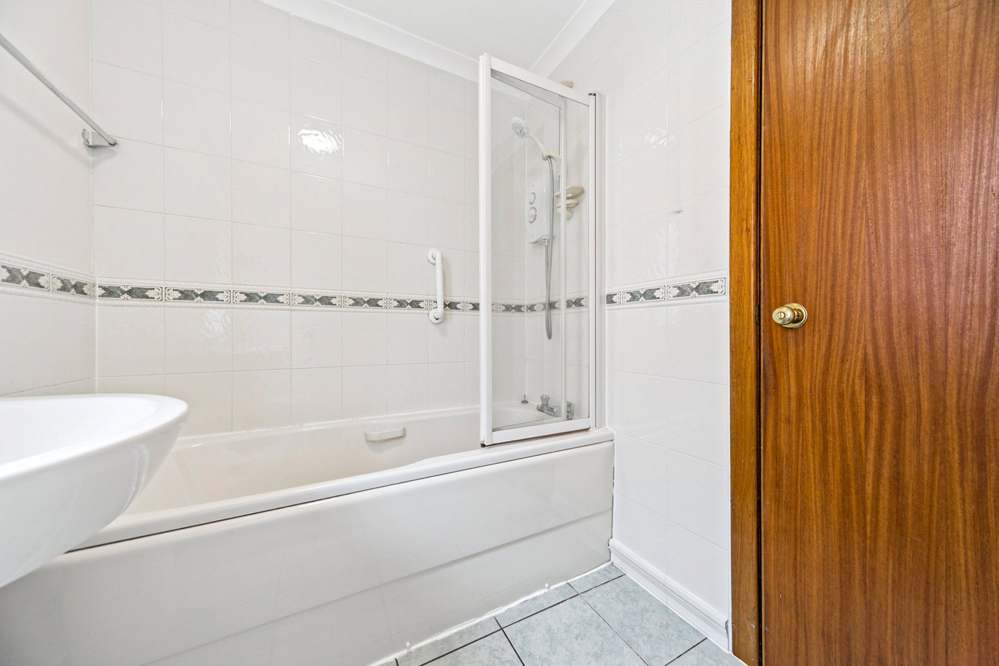 The internal accommodation comprises: entrance hallway with useful storage cupboard; spacious living room with ample space for dining and large windows that give the room lovely natural light; adjoining galley-style fitted kitchen with a range of wall and base units and integrated appliances; well-proportioned principal bedroom with fitted wardrobes; second bedroom with pleasant open outlook to the front; and a main bathroom fitted with a white three-piece suite and over-bath shower.