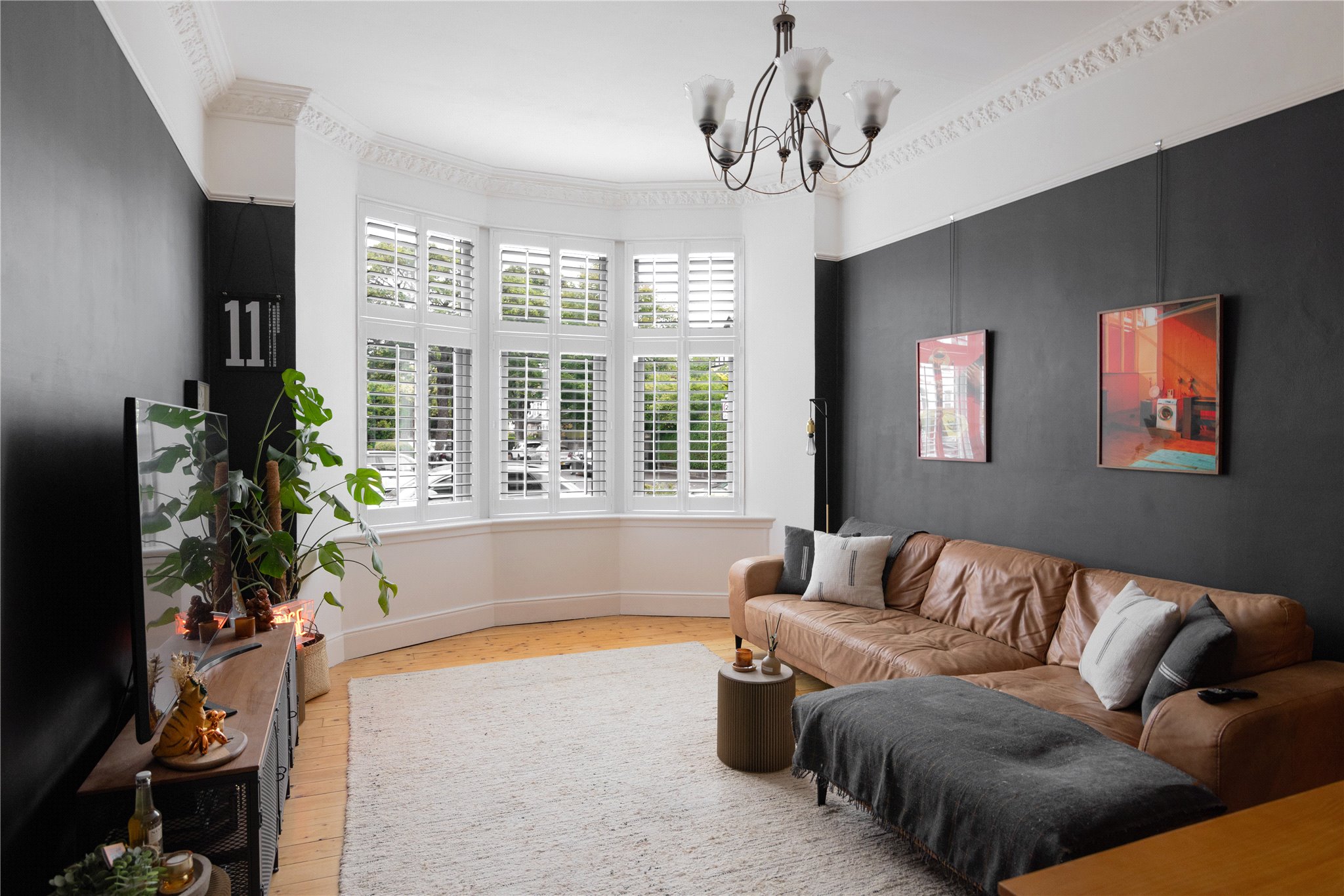- Superb lounge/dining room with three section bay window, sanded/varnished flooring and ceiling cornice