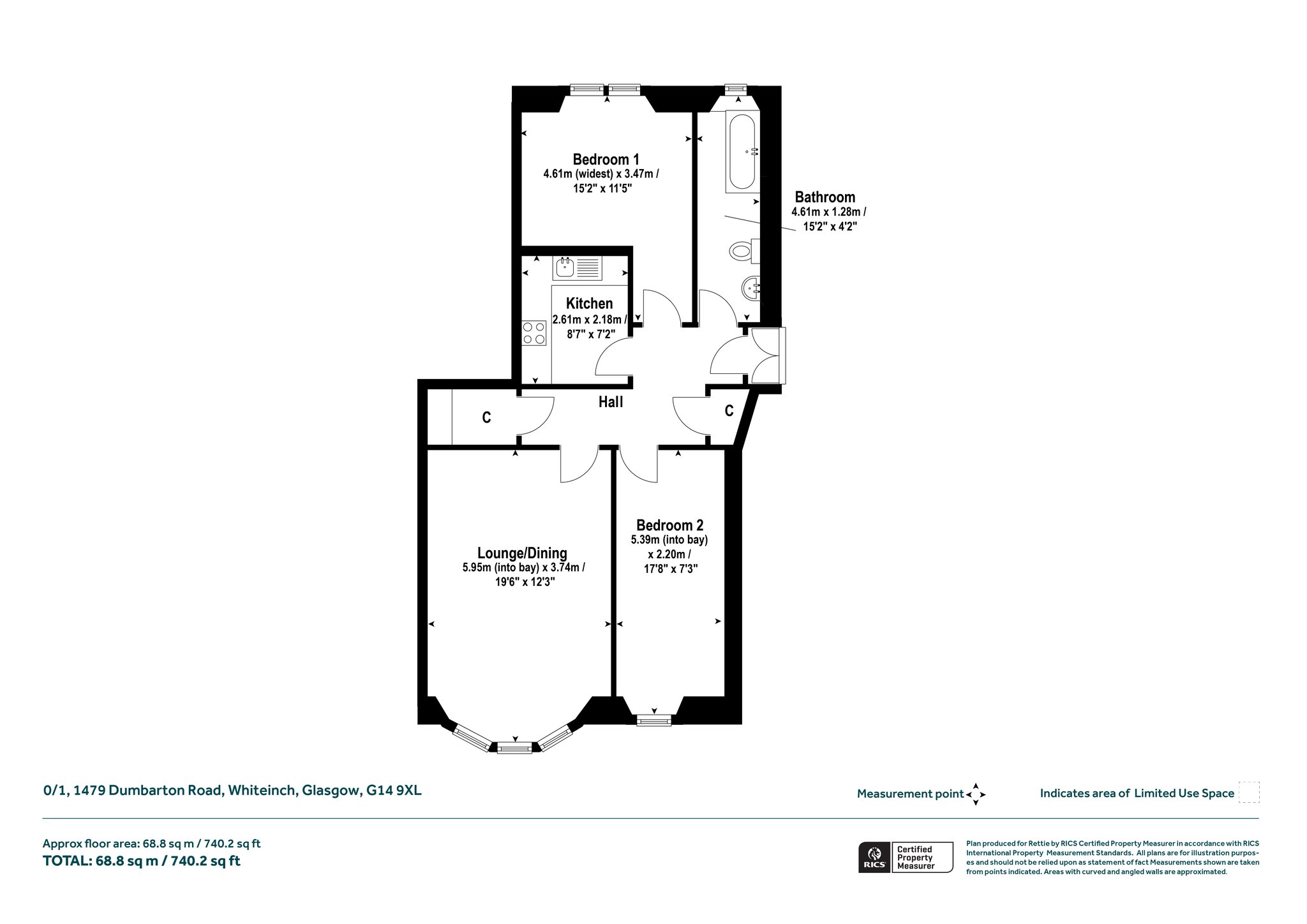 The flat is ideally situated in the Scotstoun area of Glasgow's West End, close to Victoria Park, the Clyde riverside, and just a short distance from Partick and Byres Road. Residents benefit from an excellent array of local shops, cafes, bars, and restaurants, as well as major supermarkets nearby. The area is well served by public transport, with Jordanhill and Scotstounhill train stations close at hand, and numerous bus routes along Dumbarton Road. For drivers, easy access to the Clyde Tunnel, M8, and Expressway makes commuting straightforward.