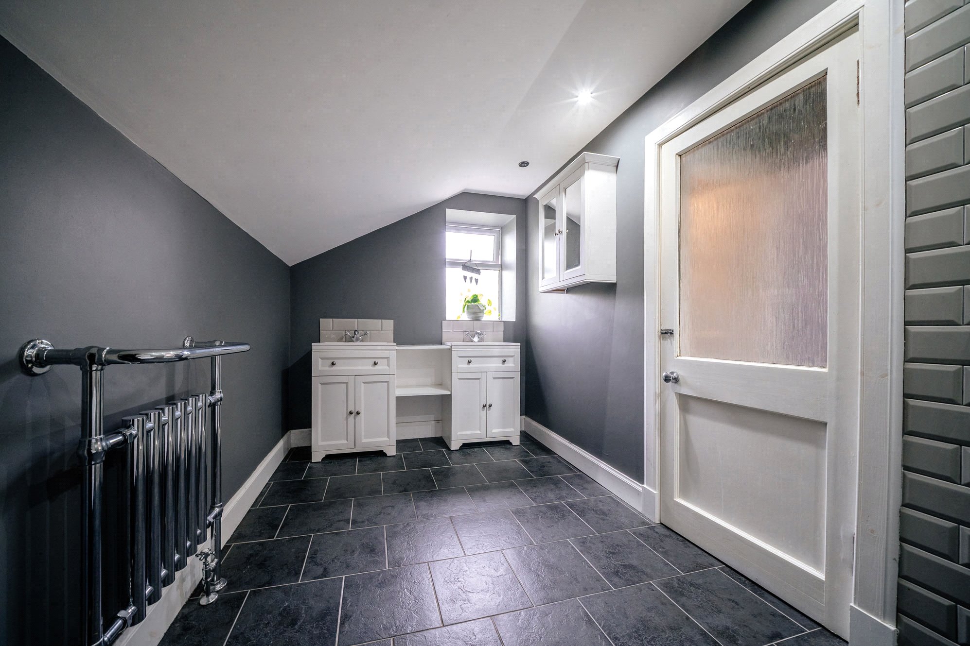 In summary, the accommodation extends to: large traditional storm porch with sturdy double outer doors; spacious reception hall with staircase to upper levels; large walk-in under stair cupboard, front-facing bay-window living room; rear sitting room, which could be used as 5th bedroom, playroom or an exceptionally spacious home office; dining room with storage cupboard; and rear-facing kitchen with large pantry, WC and door to the rear garden. The half landing provides access to the main bathroom with standalone roll top bath before leading to the upper level, where there are three generous double bedrooms, one of which includes a large walk in cupboard with potential for an ensuite and a particularly spacious principal bedroom. There is further storage under the L shaped fixed staircase which winds up to the attic level presenting the fourth bedroom, where a large double-sized room offers versatile additional living space suitable as a bedroom, games room, or TV lounge/playroom for children.